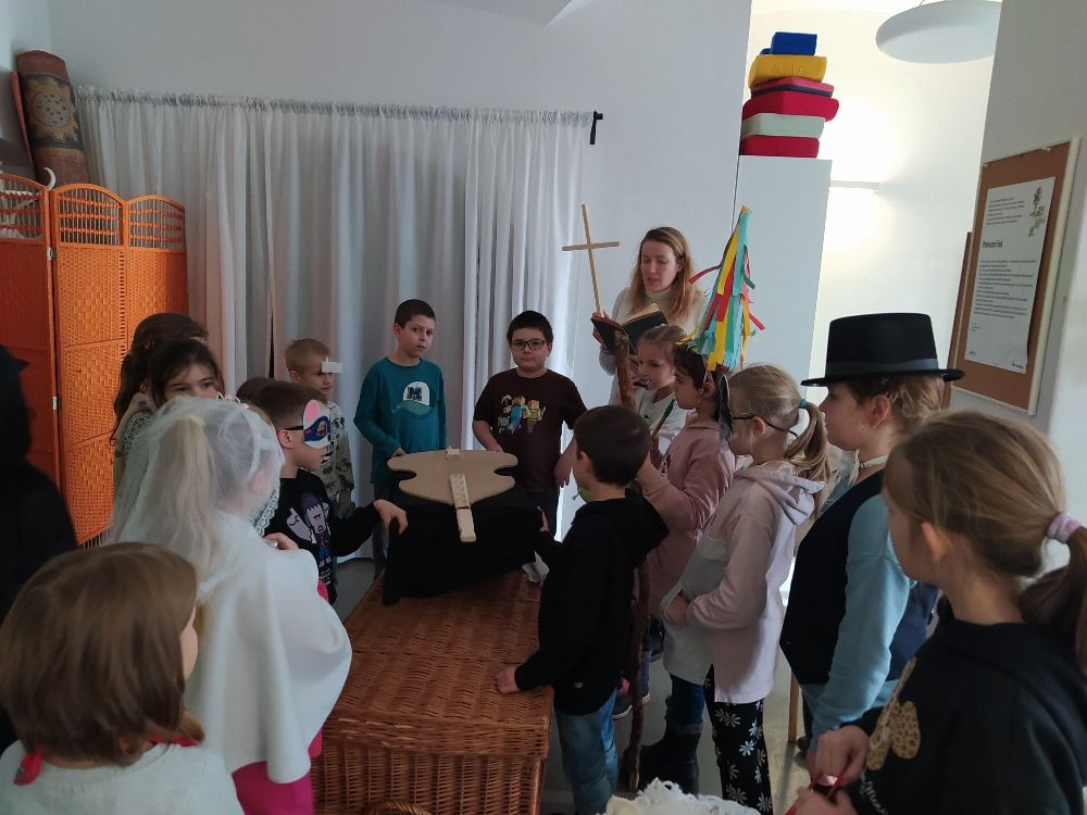 Masopust, svátek spojený s jídlem, tancem, zpěvem, průvodem maškar a pochováním basy si děti školní družiny připomněly na vsetínském zámku. Oddělení Motýlků