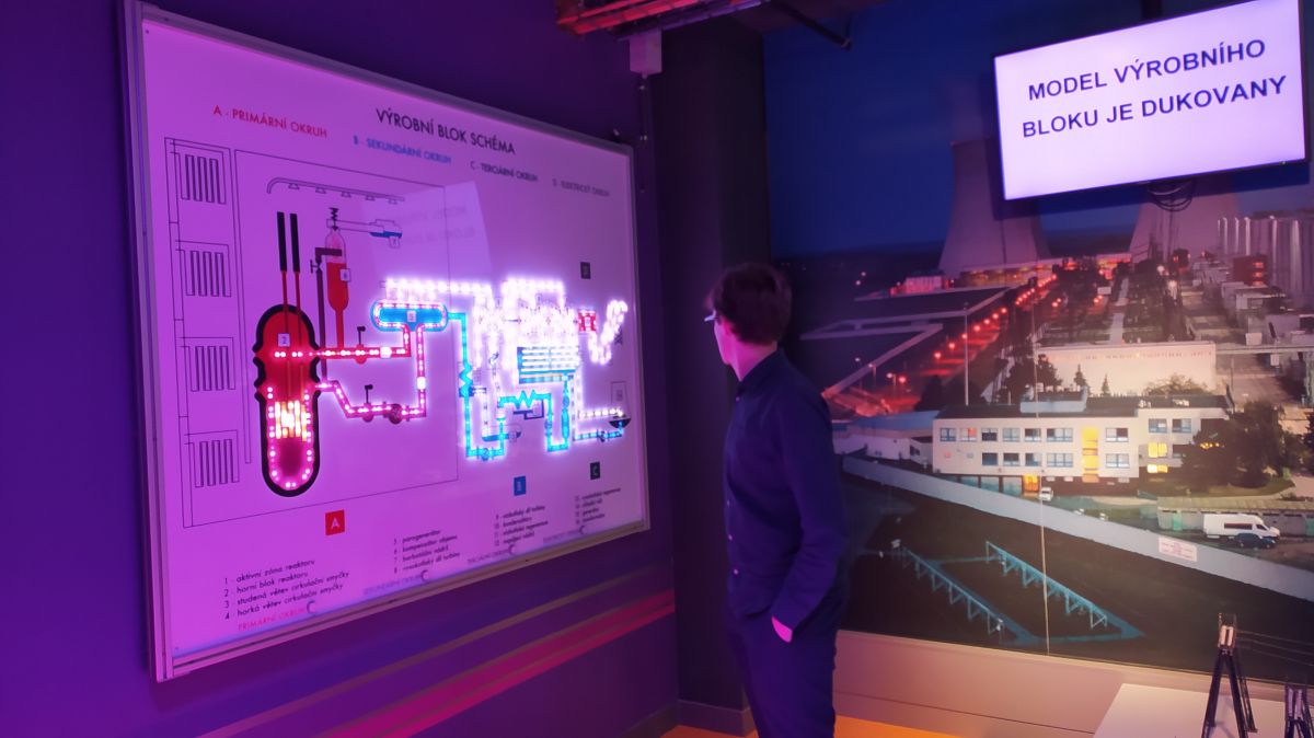 V nabité prohlídce nechybělo ani měření radioaktivity v nás (nebyla naměřena :)), detekce kovů, pohled na maketu uranové kazety, plastická mapa celé elektrárny nebo simulace čištění reaktoru.
