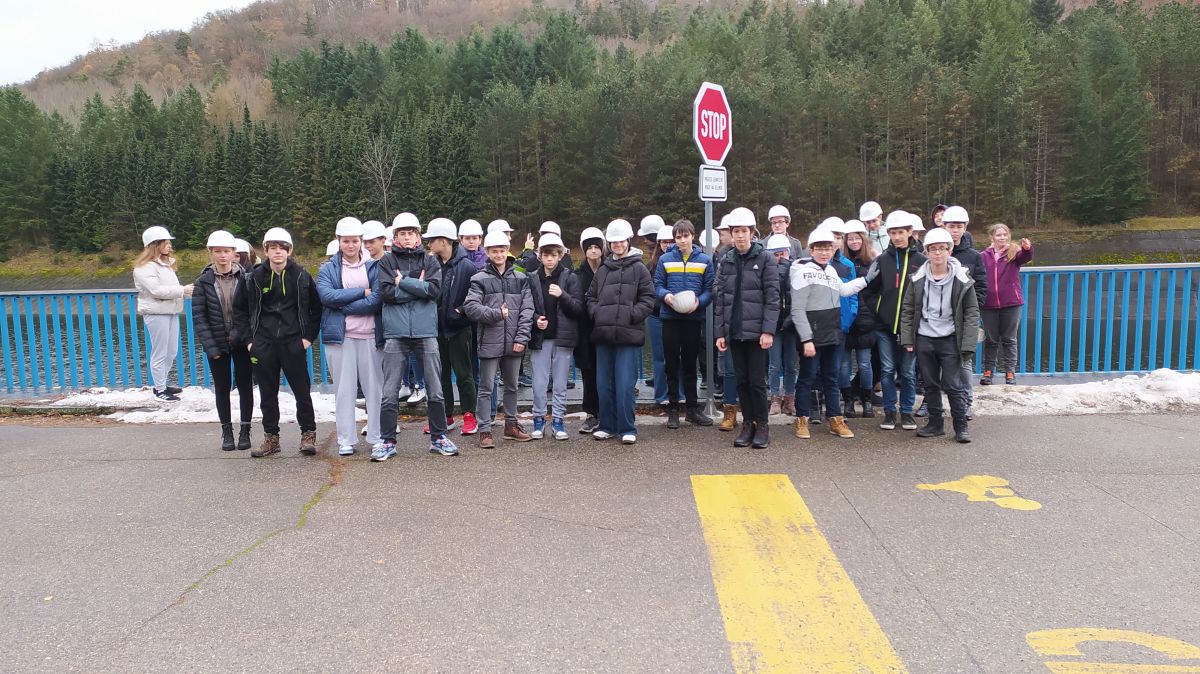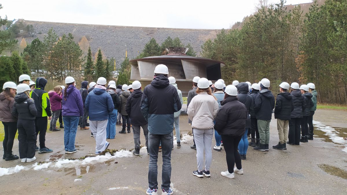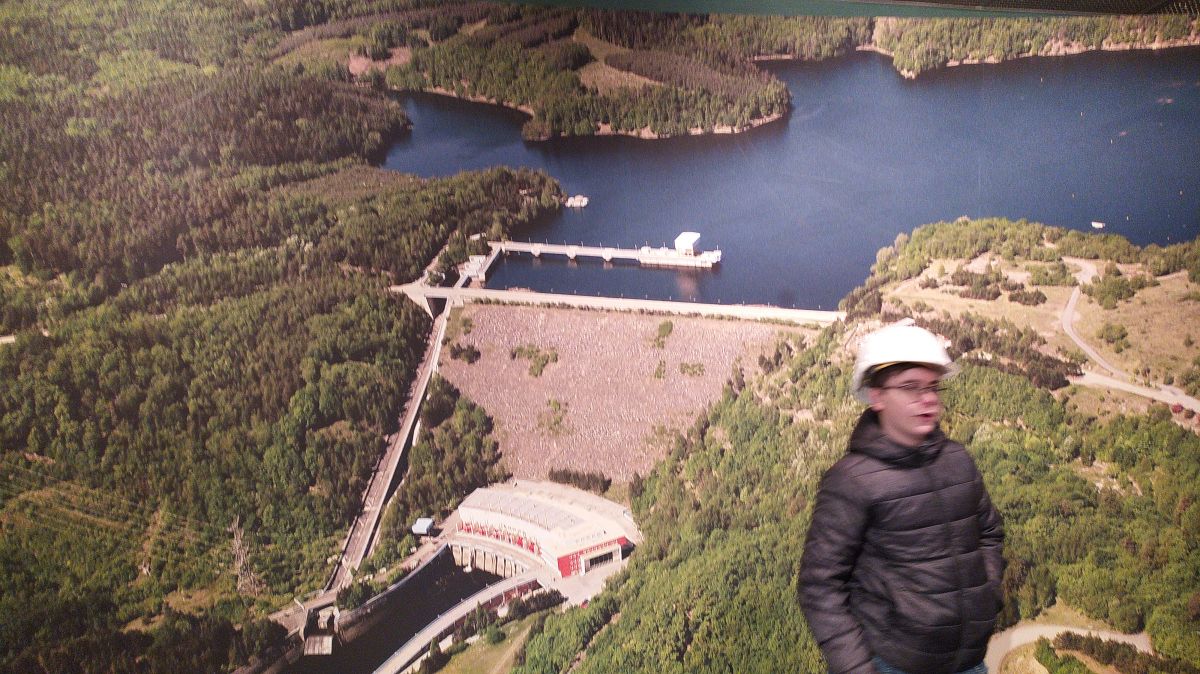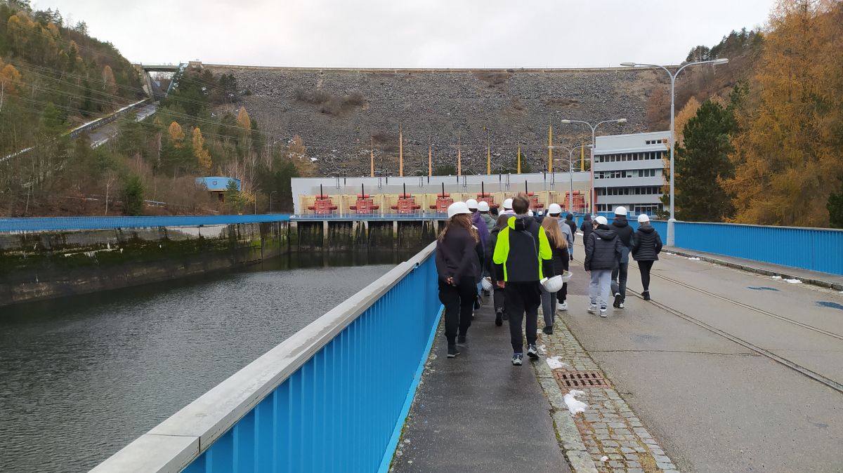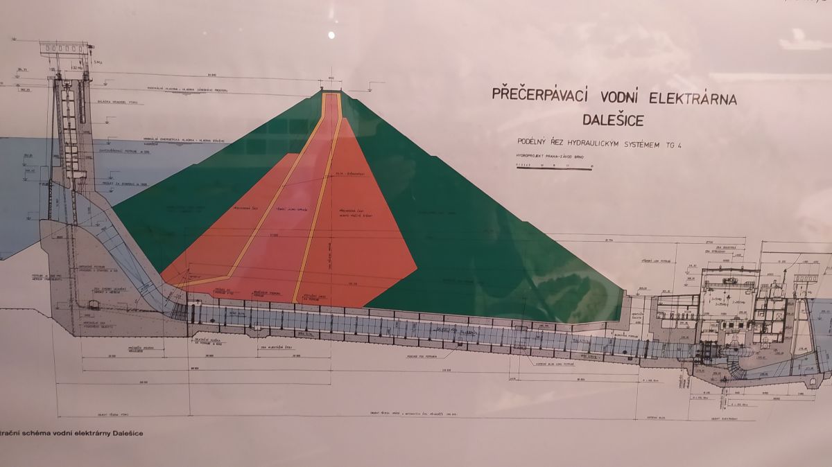 Autobusem jsme přejeli jen kousek k vodní elektrárně Dalešice, kde jsme měli připravenou komentovanou prohlídku a taky přístup do strojovny.