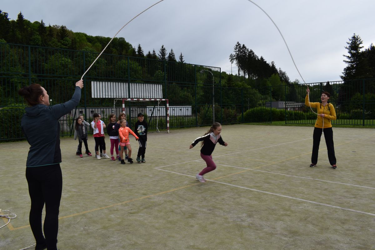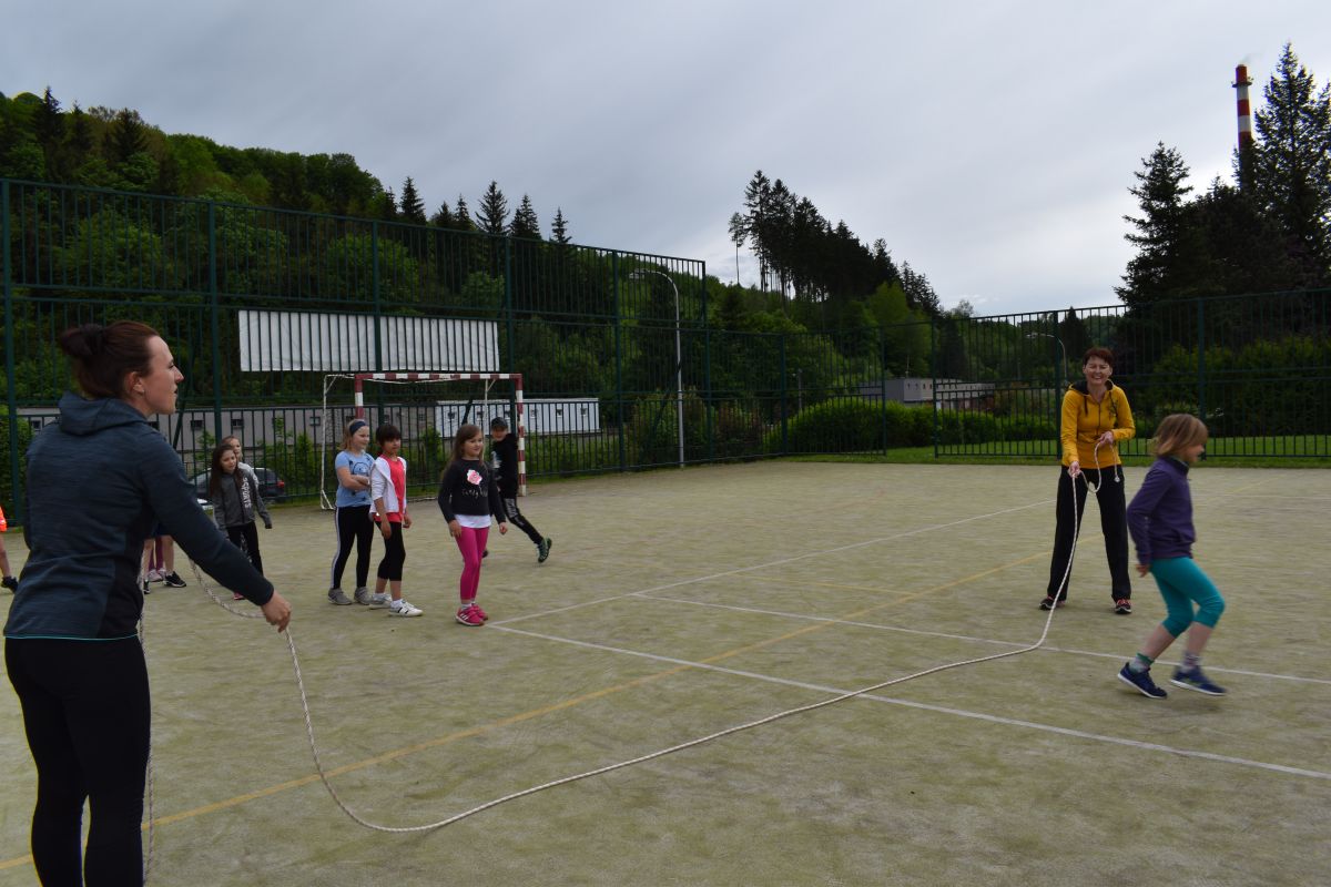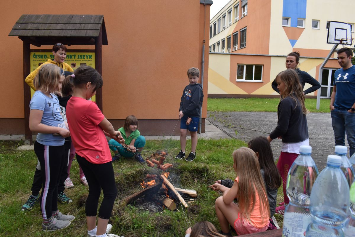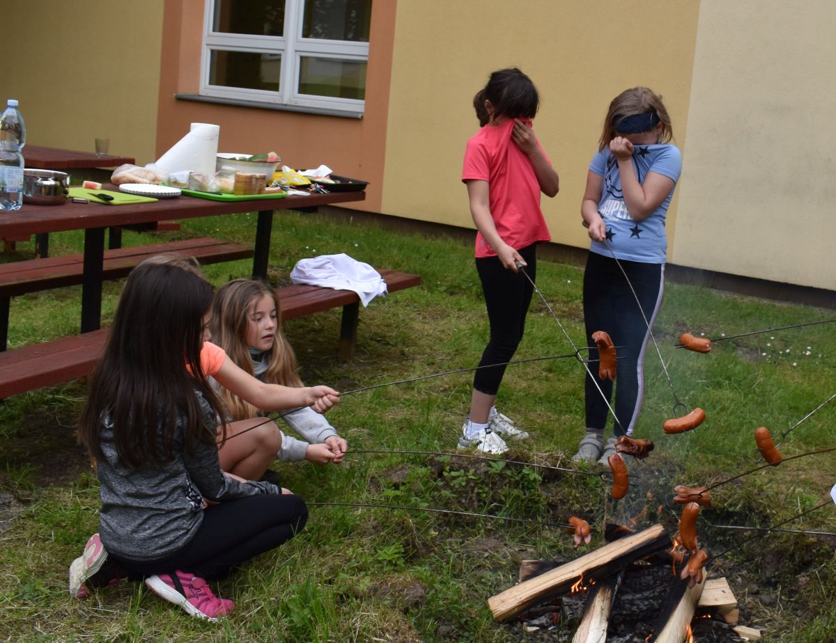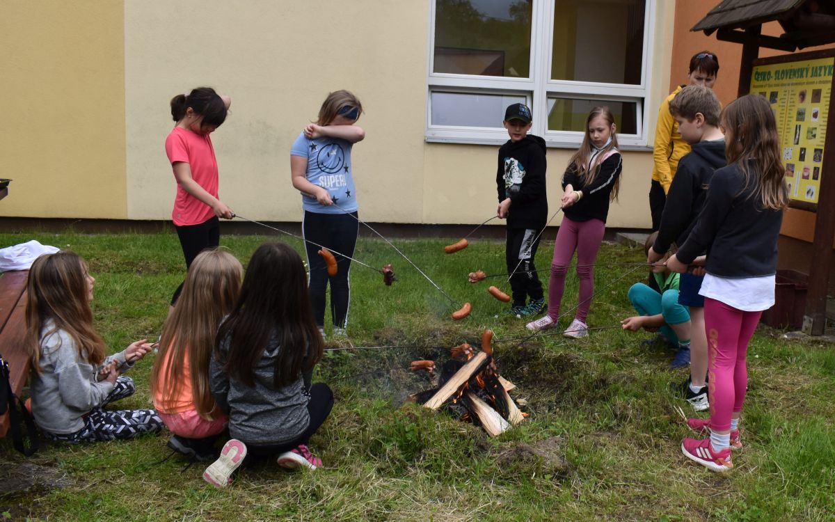 Ve čtvrtek 27.5. jsme si nejdříve zasportovali na školním hřišti, vyzkoušeli lezení na stěně a potom také hry v atriu. Nakonec jsme si opekli špekáčky. Moc jsme si celou party užili.