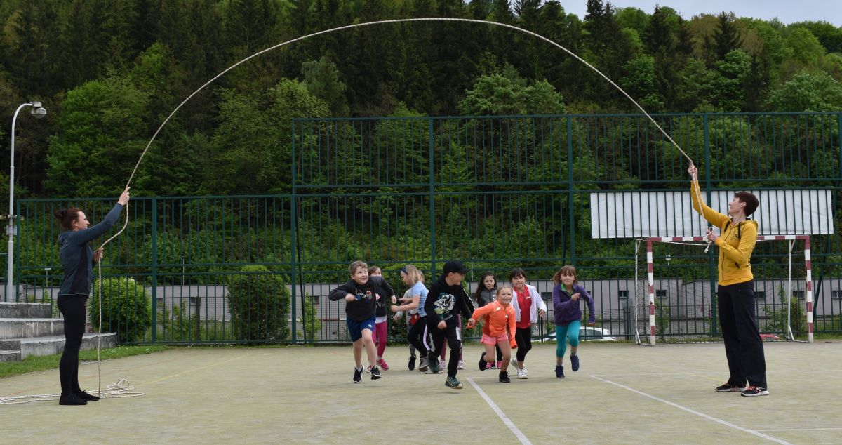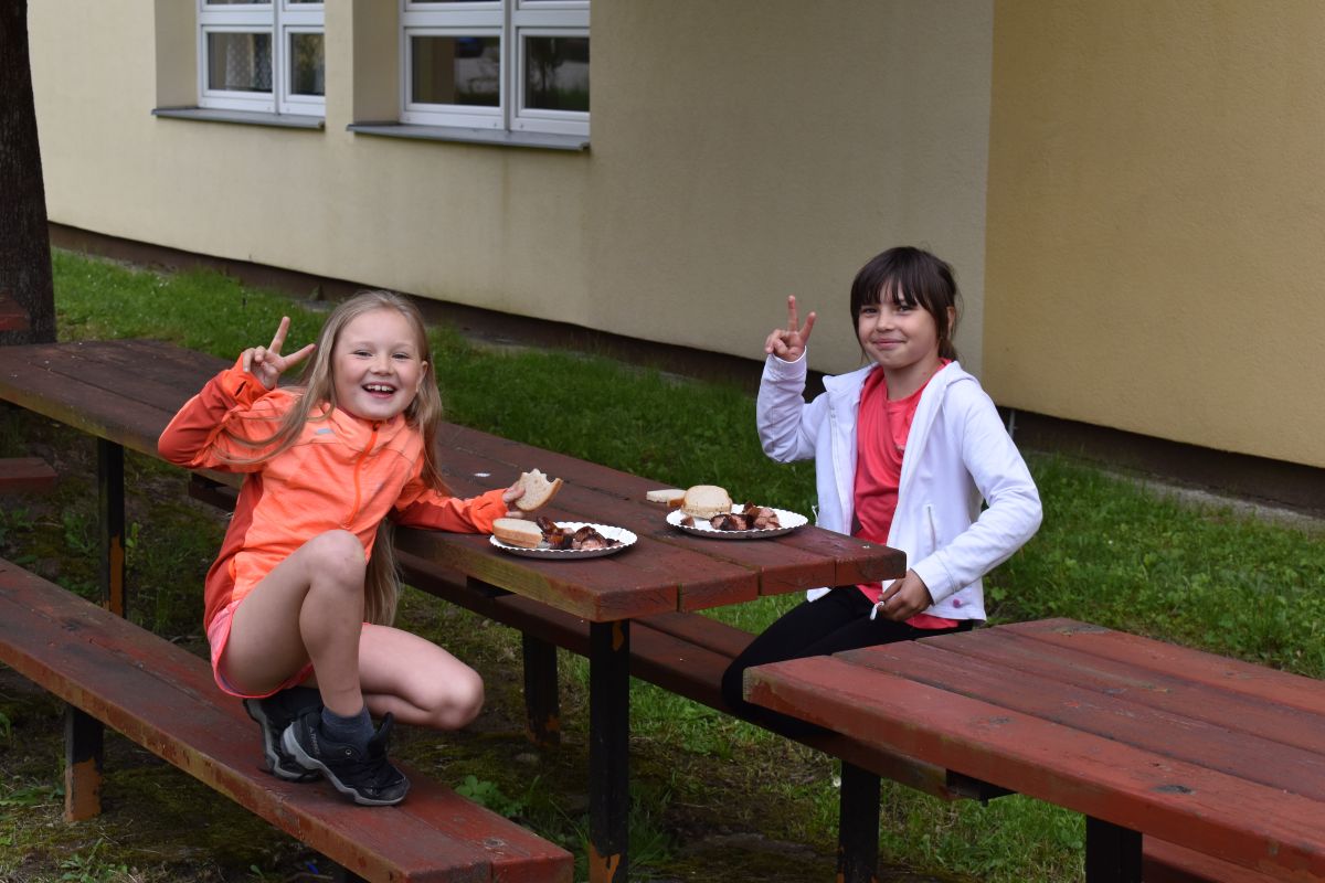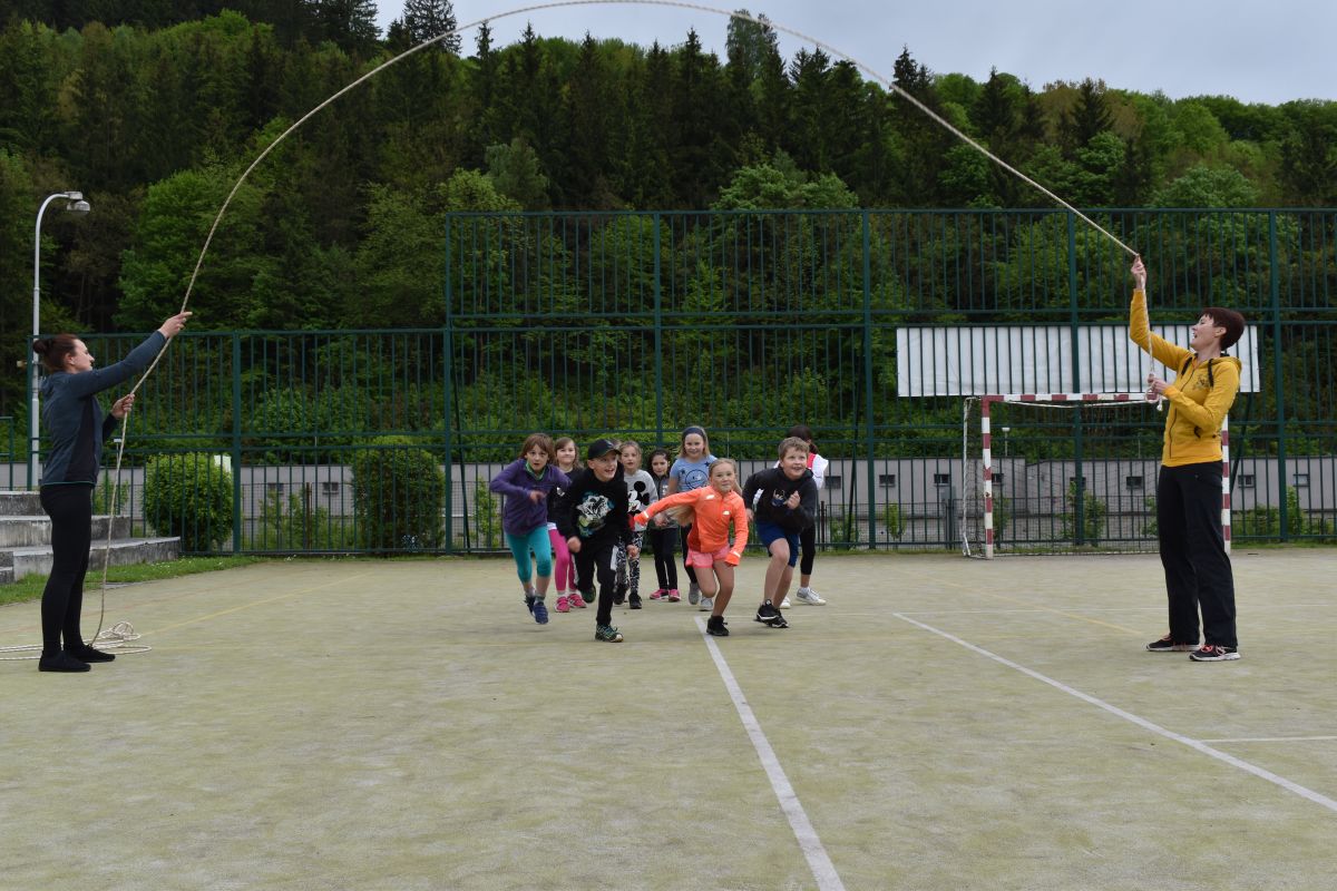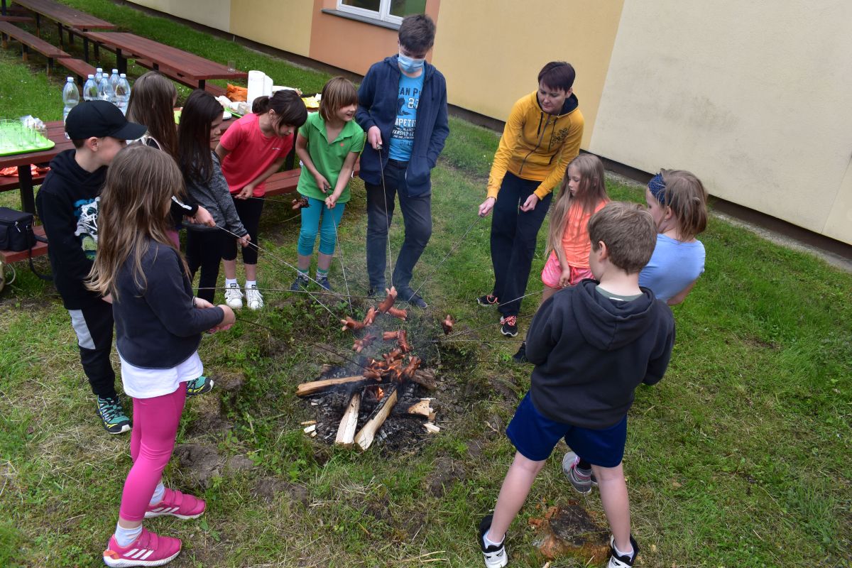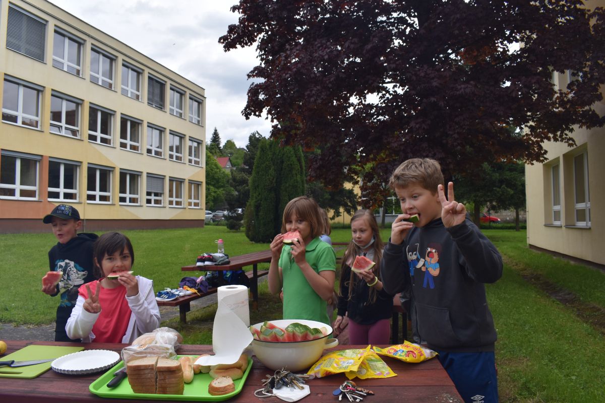 Ve čtvrtek 27.5. jsme si nejdříve zasportovali na školním hřišti, vyzkoušeli lezení na stěně a potom také hry v atriu. Nakonec jsme si opekli špekáčky. Moc jsme si celou party užili.