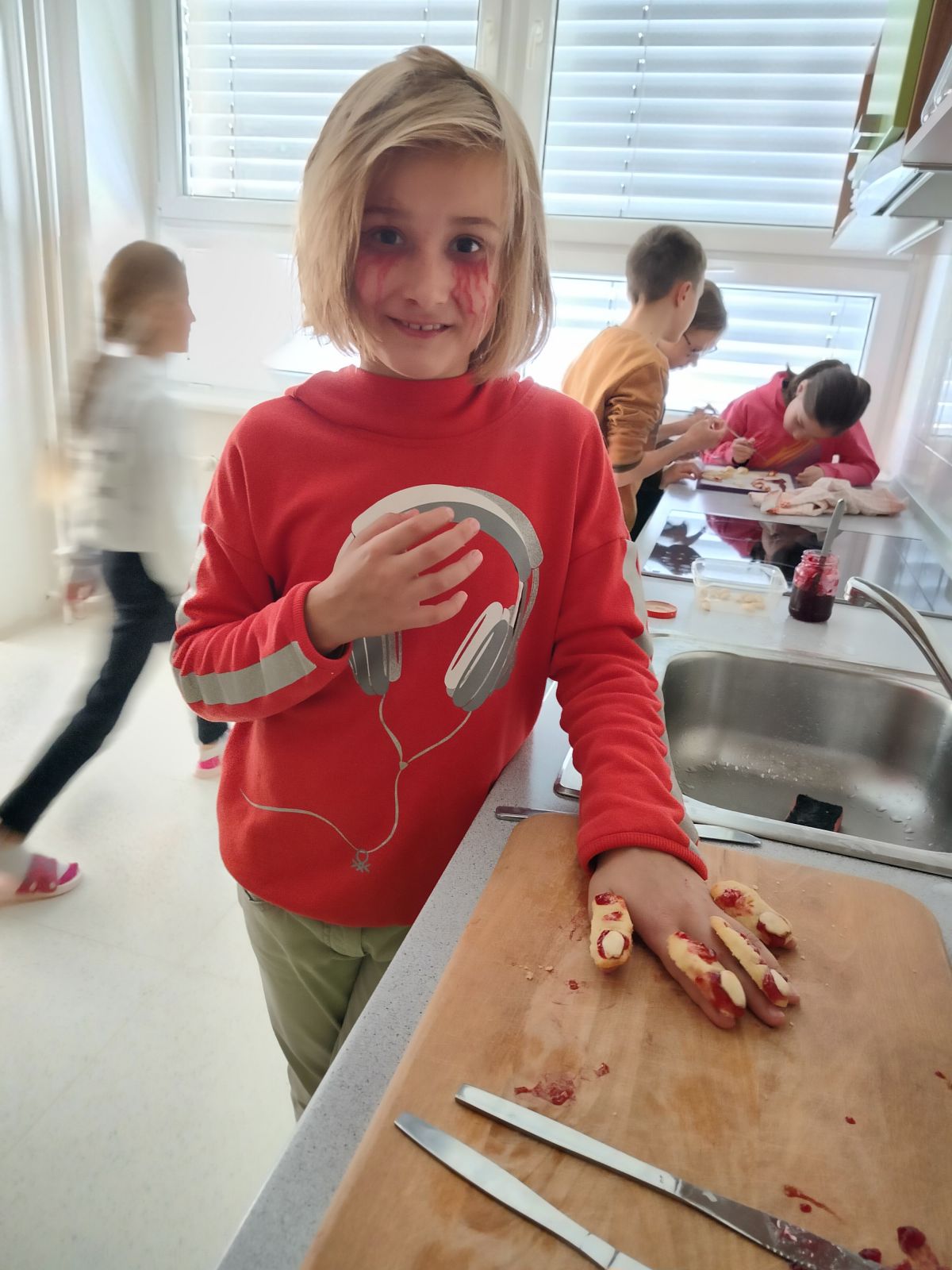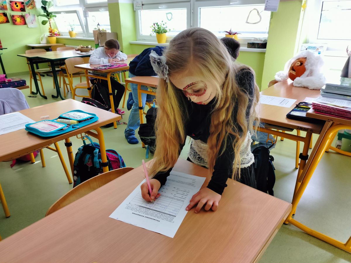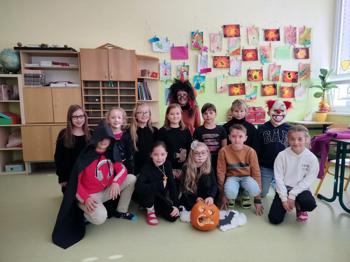 V pondělí 31.října jsme v naší třídě oslavili Halloween. Oblékli jsme se do masek, dozvěděli se něco o tom, jak se tento svátek slaví a odkud pochází, vypočítali jsme halloweenské příklady a upekli čarodějnické krvavé prsty. Vše jsme si užili v krásně podzimně vyzdobené třídě. Mgr. Iva Magnagová
