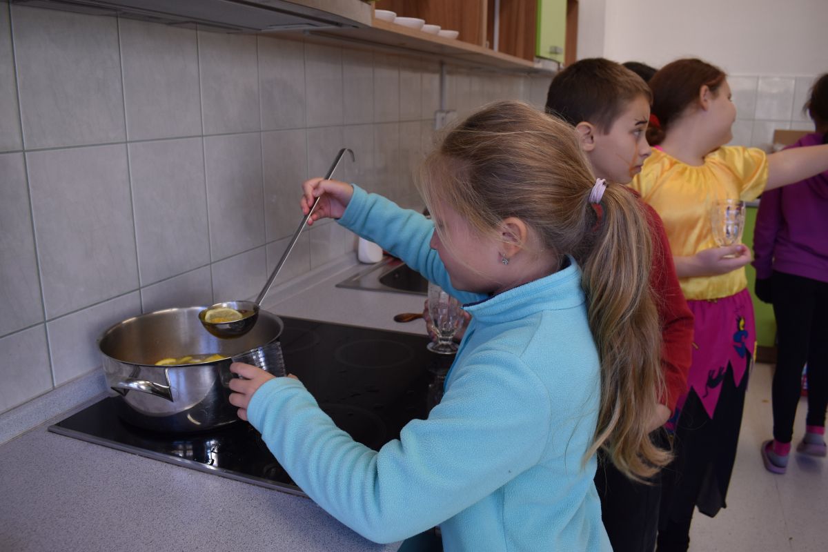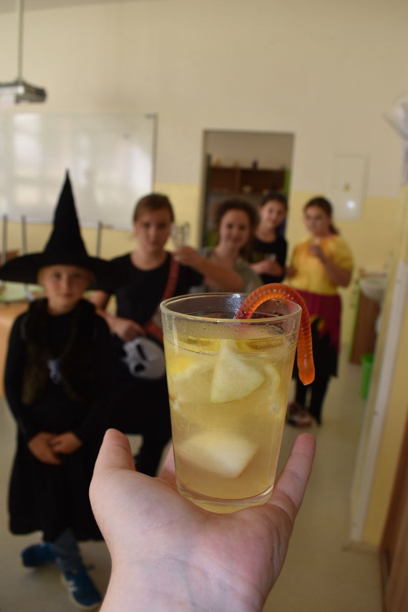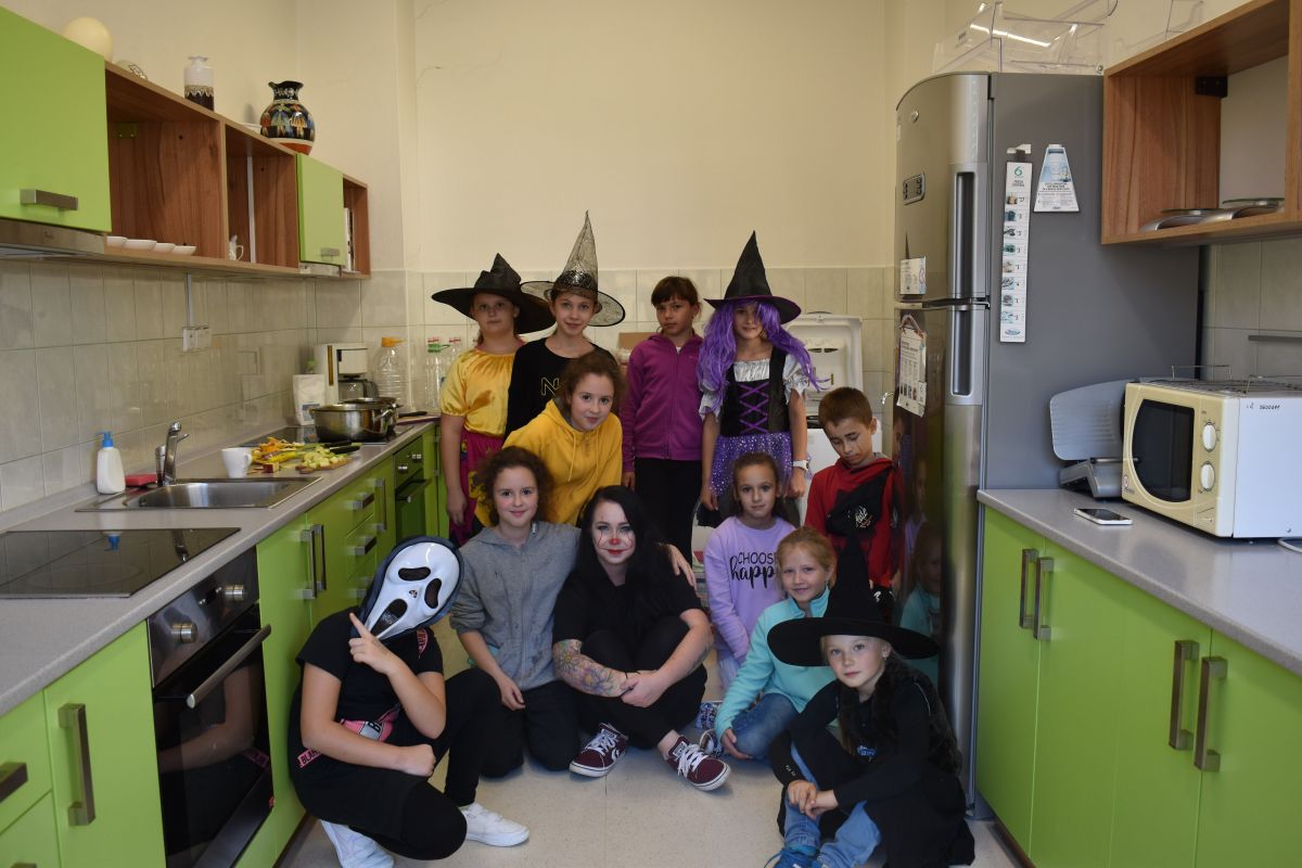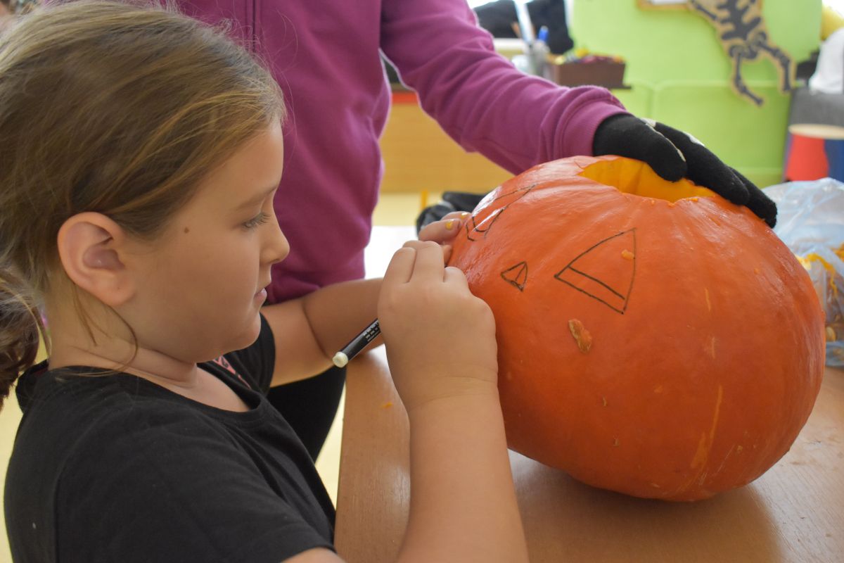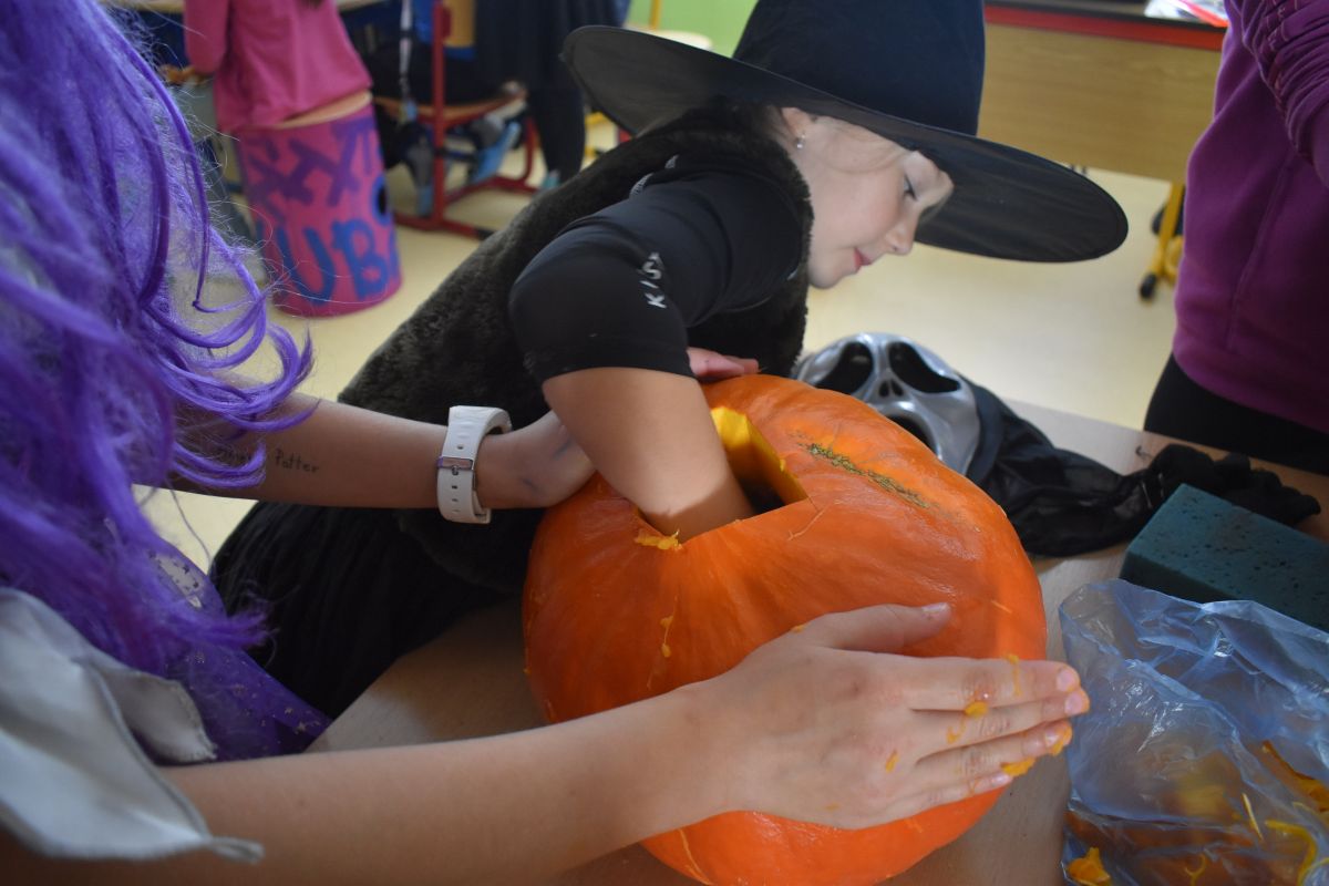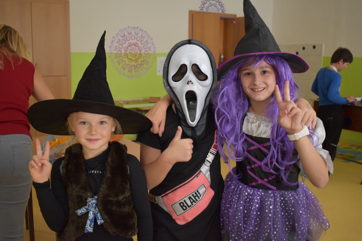 Halloween je svátek, ke kterému neodmyslitelně patří vyprávění děsivých historek, punč, který si děti samy připravily, sladká odměna za originální kostýmy, soutěže, dlabání dýní, hudba, legrace a smích.