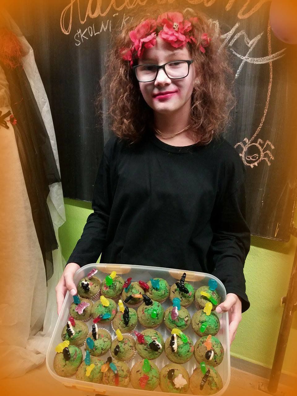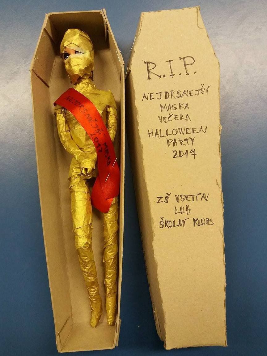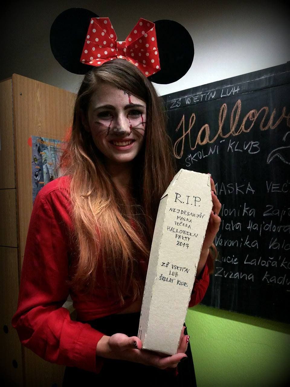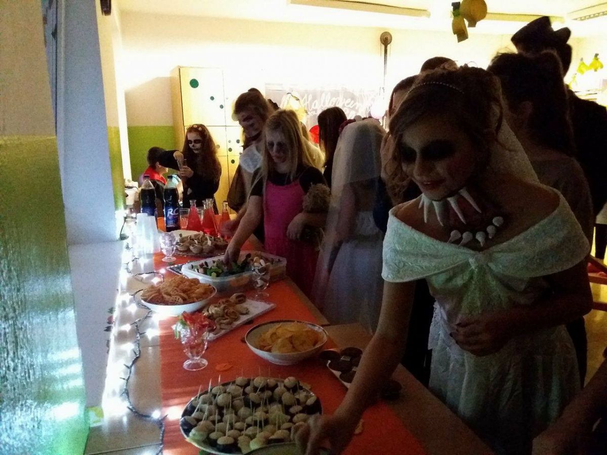 V závěru večera jsme vybrali i nejděsivější masku. Trofej za svůj halloweenský převlek si odnesla Lucie Lalošáková z 9. ročníku, gratulujeme. Celý večer provázela děsivá, hrůzu nahánějící hudba, tanec a skvělé občerstvení, které připravily členky školního parlamentu - díky holky, moc nám chutnalo. Díky patří také těm, kteří se podíleli na výzdobě a přinesli s sebou něco dobrého na zub. V neposlední řadě děkujeme za finanční podporu stavební společnosti TMStav.