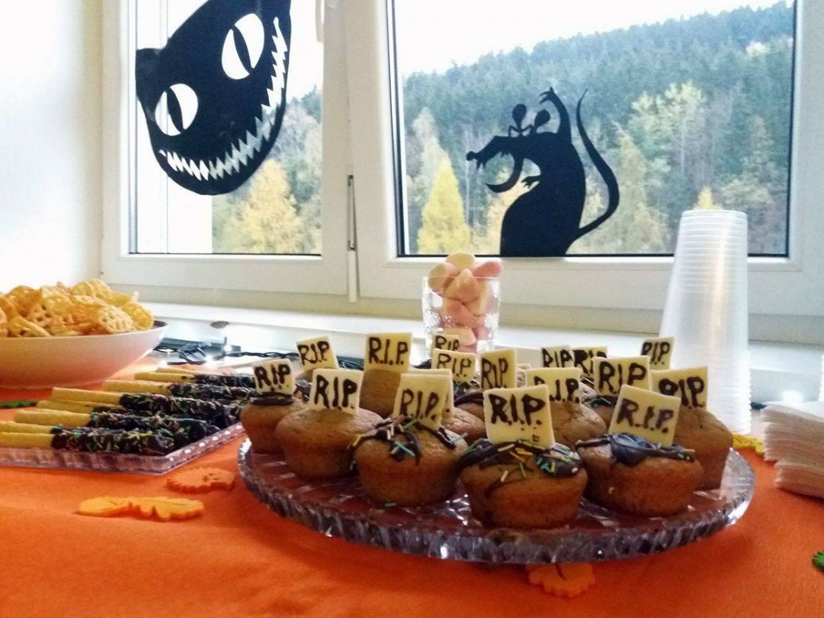Všichni jsme si připravili pořádně děsivé masky a zábava mohla začít. Program byl opravdu nabitý, soutěžili jsme ve sbírání lentilek brčkem, nebo v pojídání neposedných donutů. V další soutěži děti pokoušely štěstí a snažily se uhodnout počet želé bonbonů v krabici, ten kdo byl nejblíže, si mohl celou krabici odnést domů.