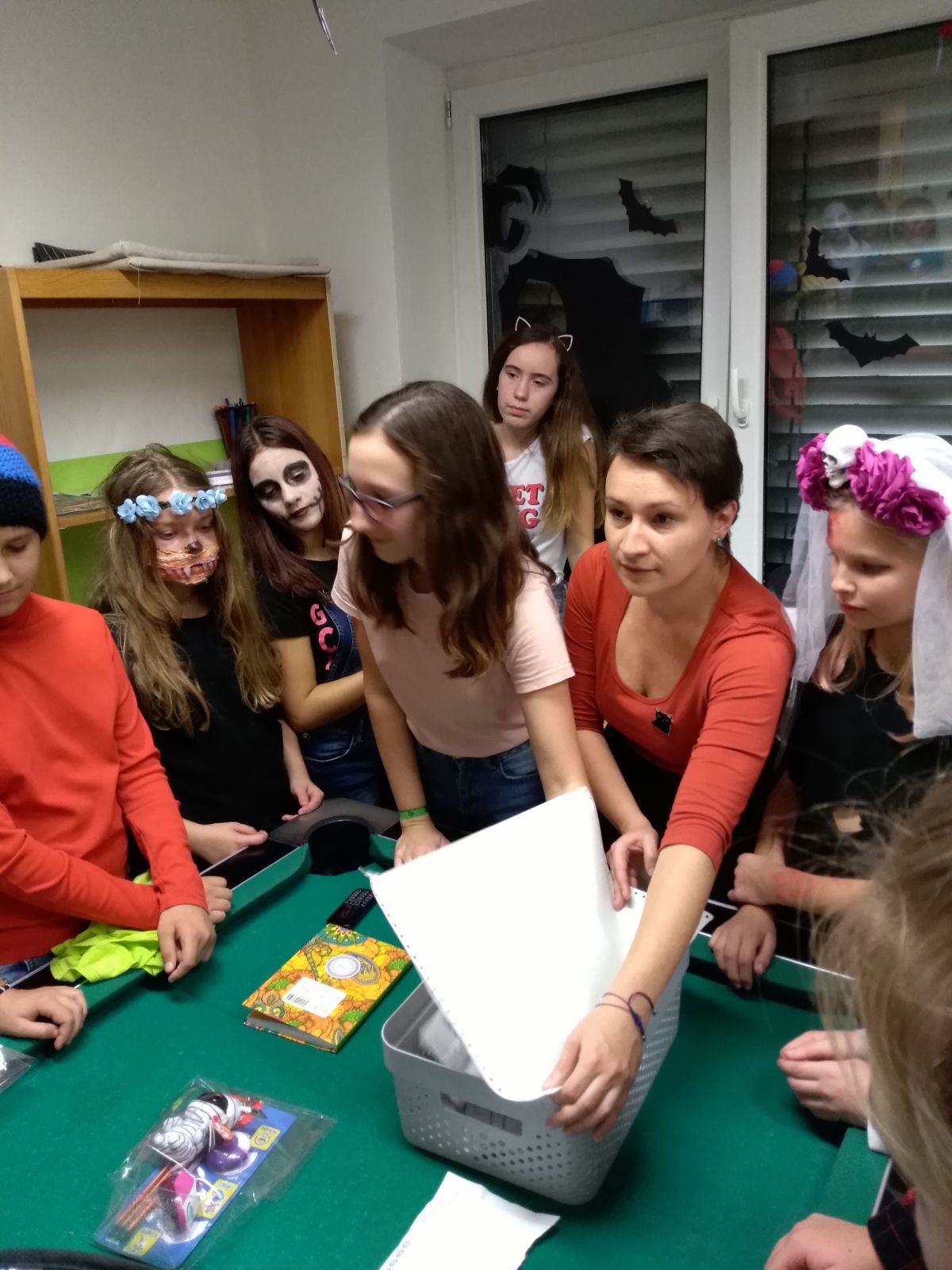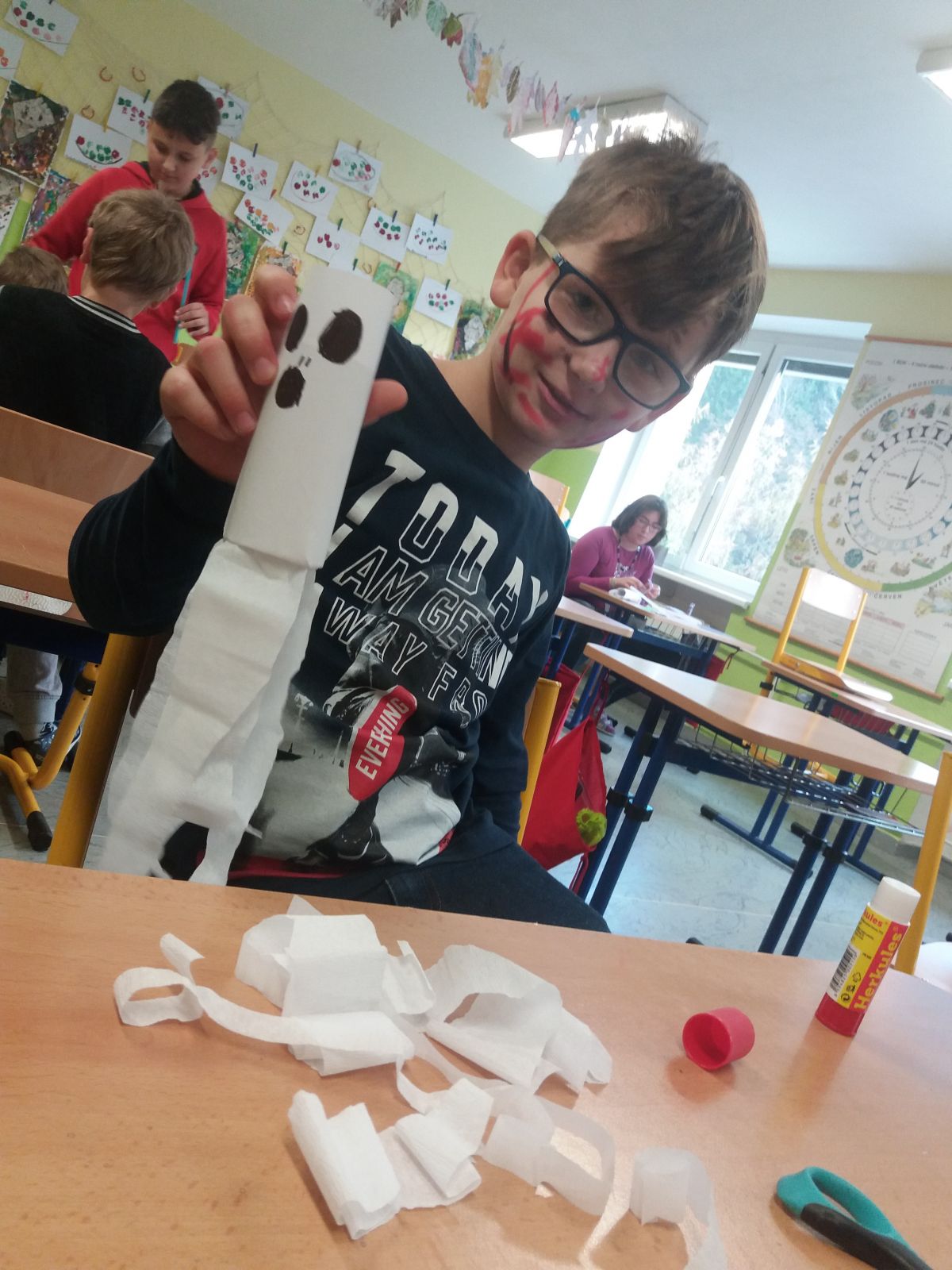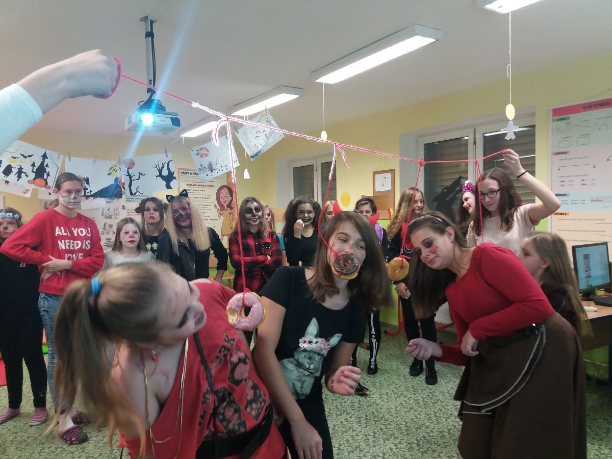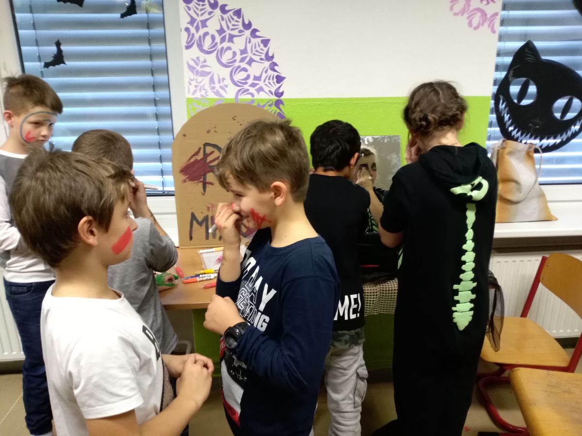 V pondělí soutěžily o sladkosti děti ze školní družiny a z klubu. Každý si mohl vyzkoušet připravené disciplíny, nebo si vyrobit papírovou halloweenskou ozdobu. Nechyběla ani strašidelná muzika a tancování.