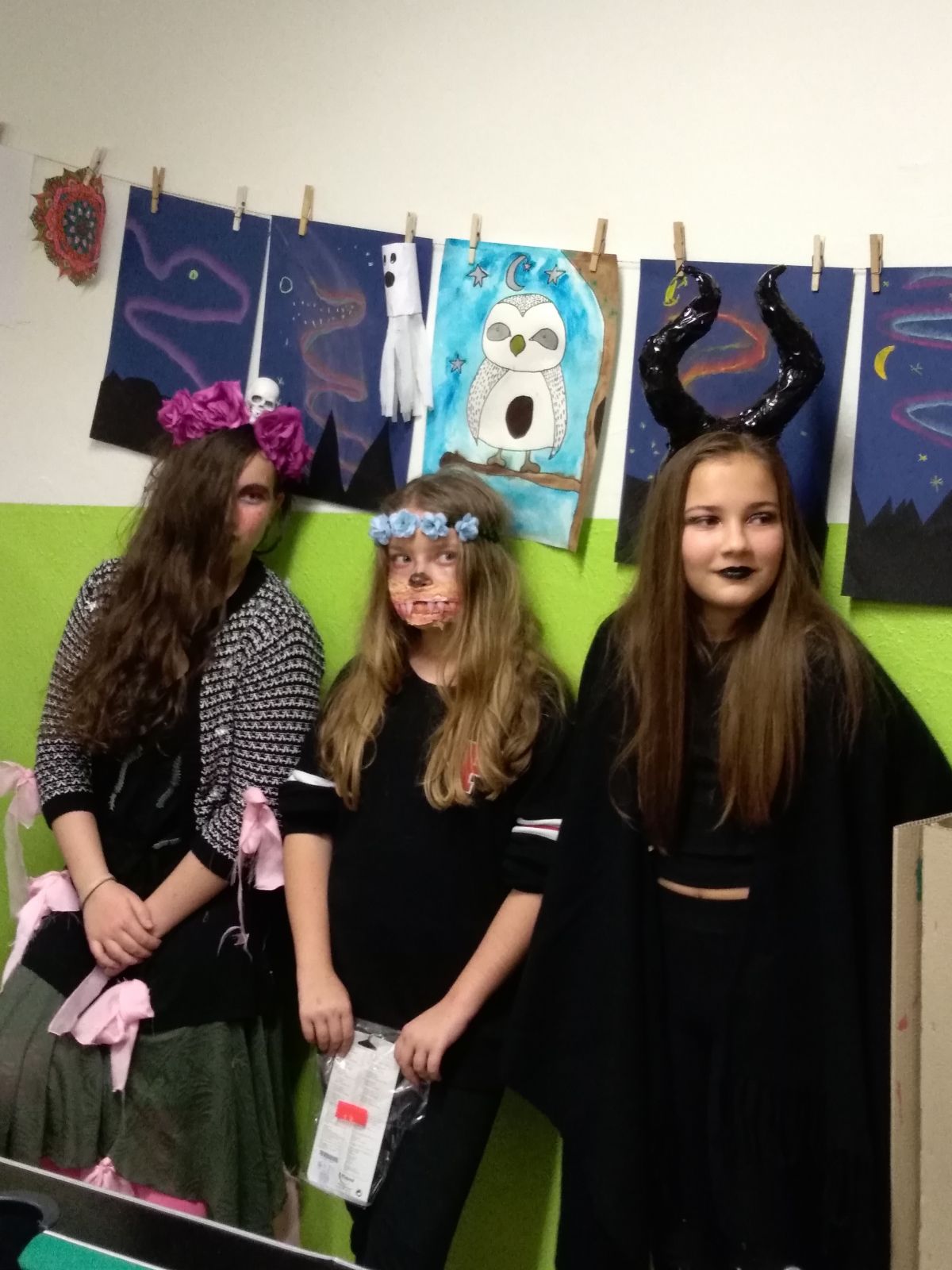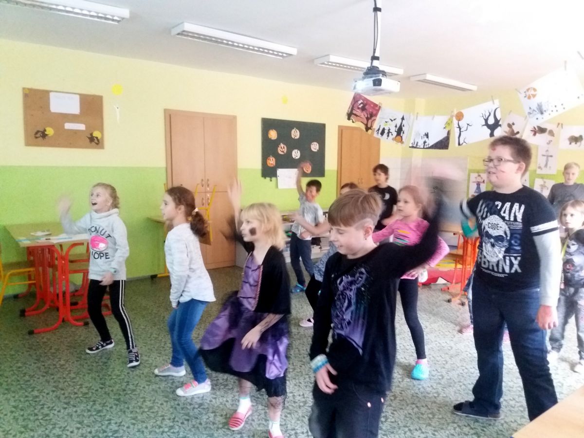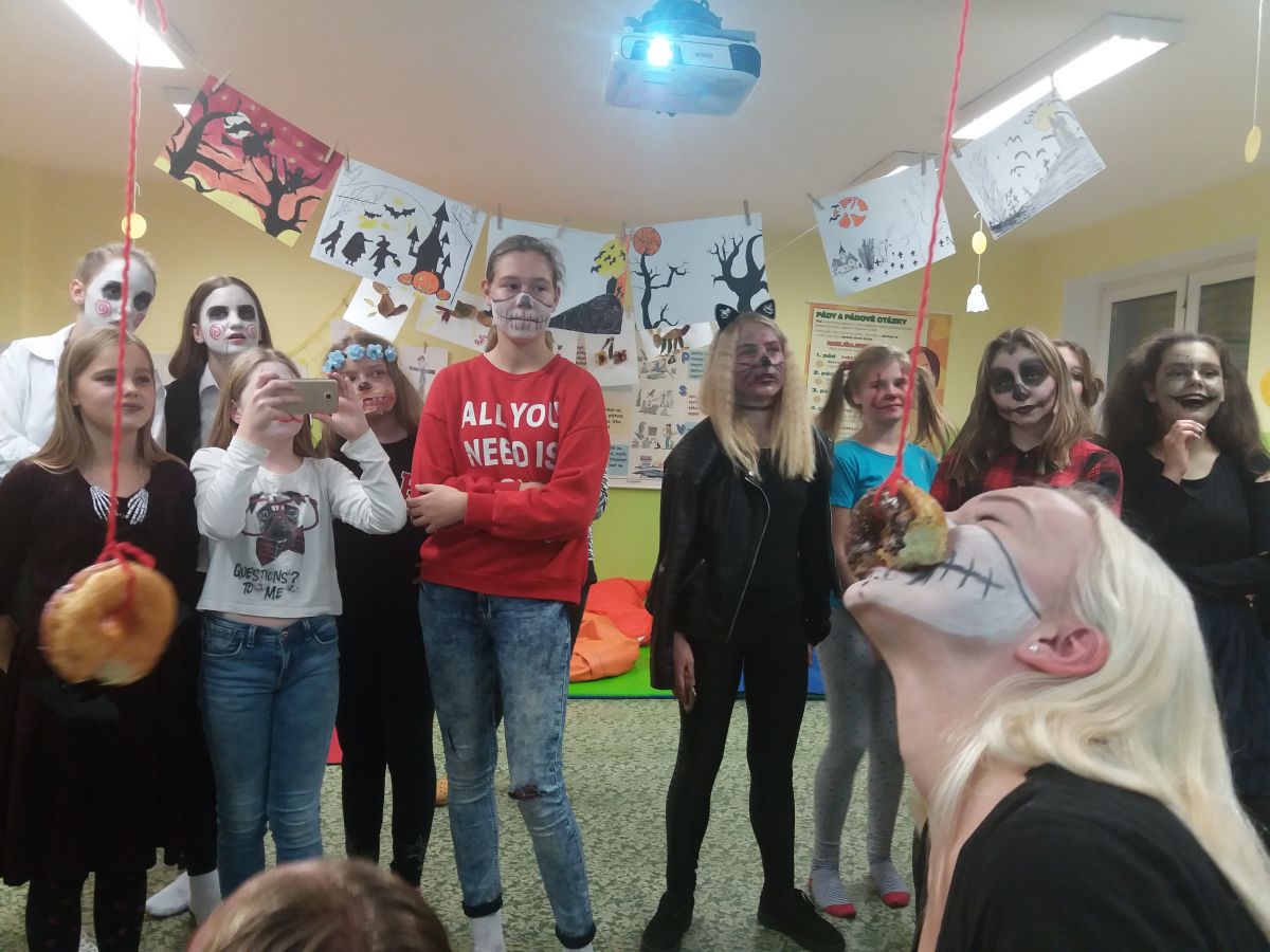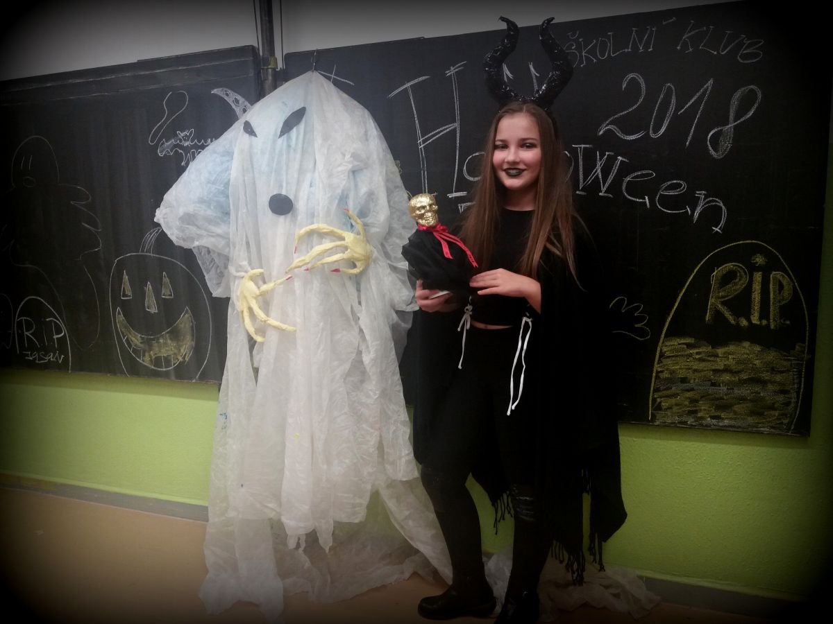 Ve čtvrtek je vystřídala strašidla z druhého stupně. Letos se odehrál už třetí ročník úspěšné Halloween party. Bylo připraveno občerstvení, tombola, soutěže a cena za nejlepší masku. Tu si letos odnesla Tereza Vášová, která si vytvořila kostým Zloby. Všichni jsme si užili spoustu zábavy, dobře si popovídali, zatančili, zazpívali a skvěle se najedli. Díky všem, kteří přinesli něco na zub. Za finanční podporu akce děkujeme firmě TM-stav.