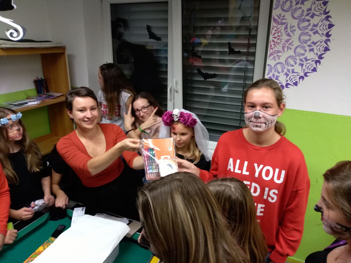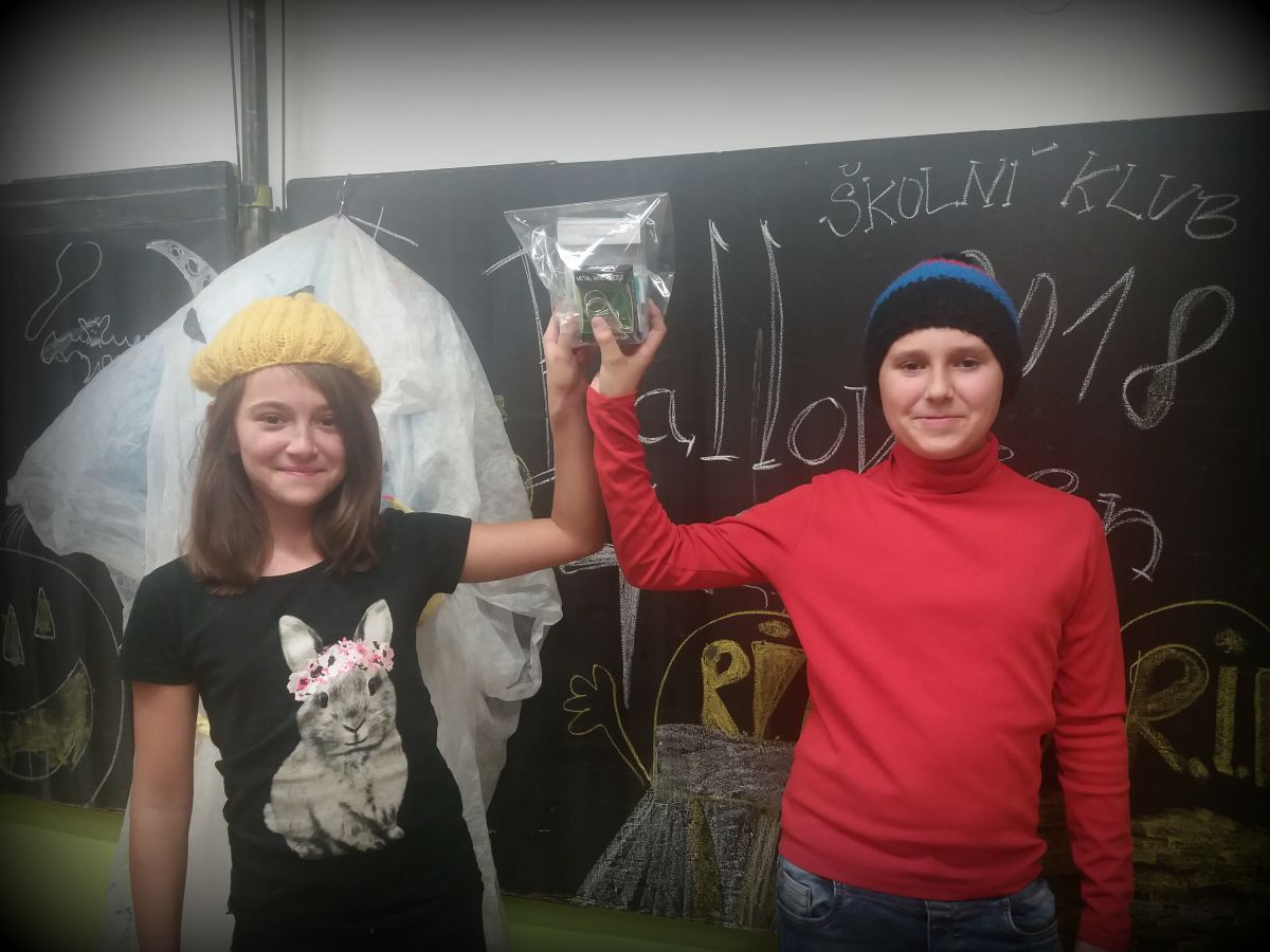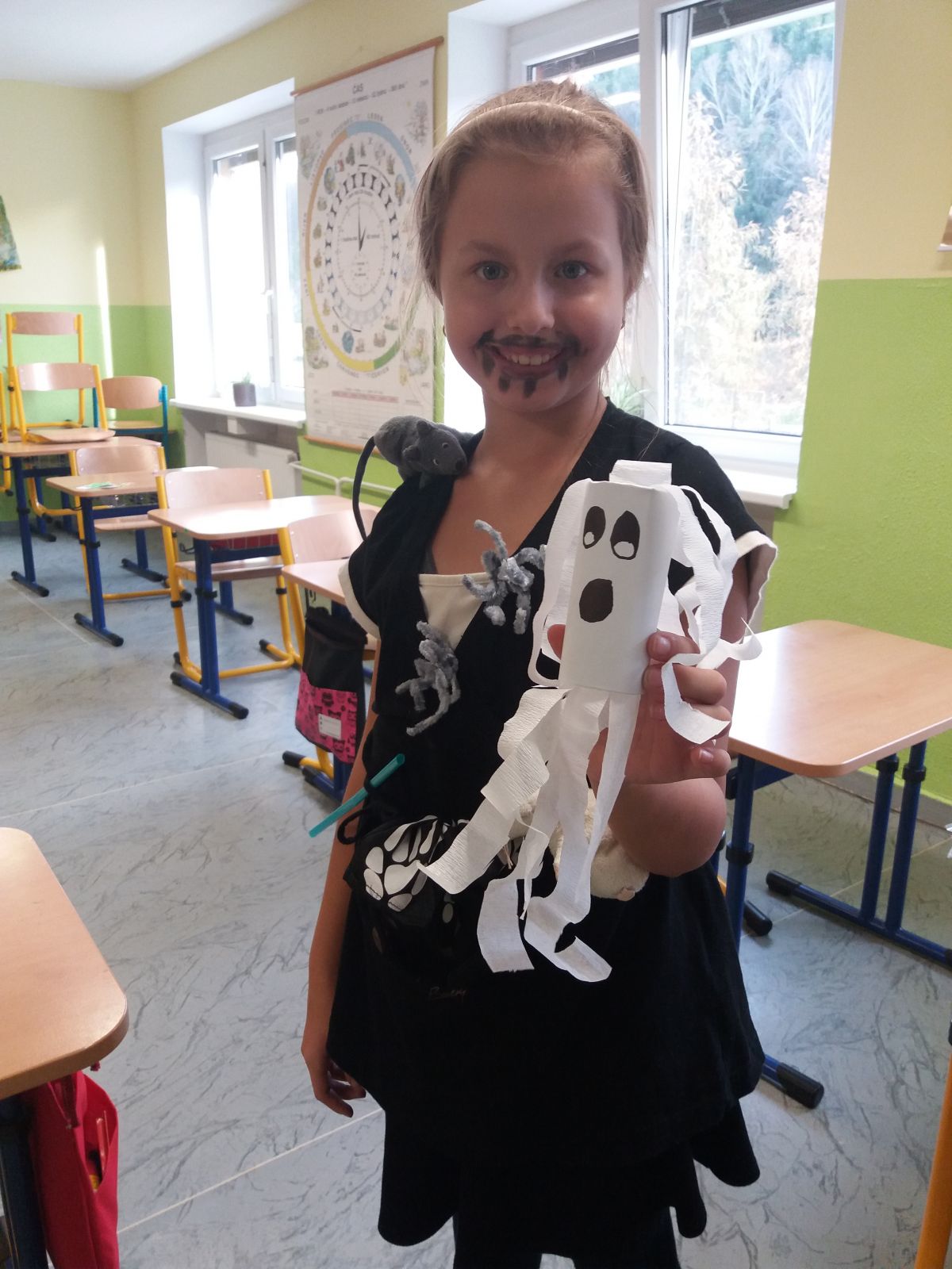 Ve čtvrtek je vystřídala strašidla z druhého stupně. Letos se odehrál už třetí ročník úspěšné Halloween party. Bylo připraveno občerstvení, tombola, soutěže a cena za nejlepší masku. Tu si letos odnesla Tereza Vášová, která si vytvořila kostým Zloby. Všichni jsme si užili spoustu zábavy, dobře si popovídali, zatančili, zazpívali a skvěle se najedli. Díky všem, kteří přinesli něco na zub. Za finanční podporu akce děkujeme firmě TM-stav.