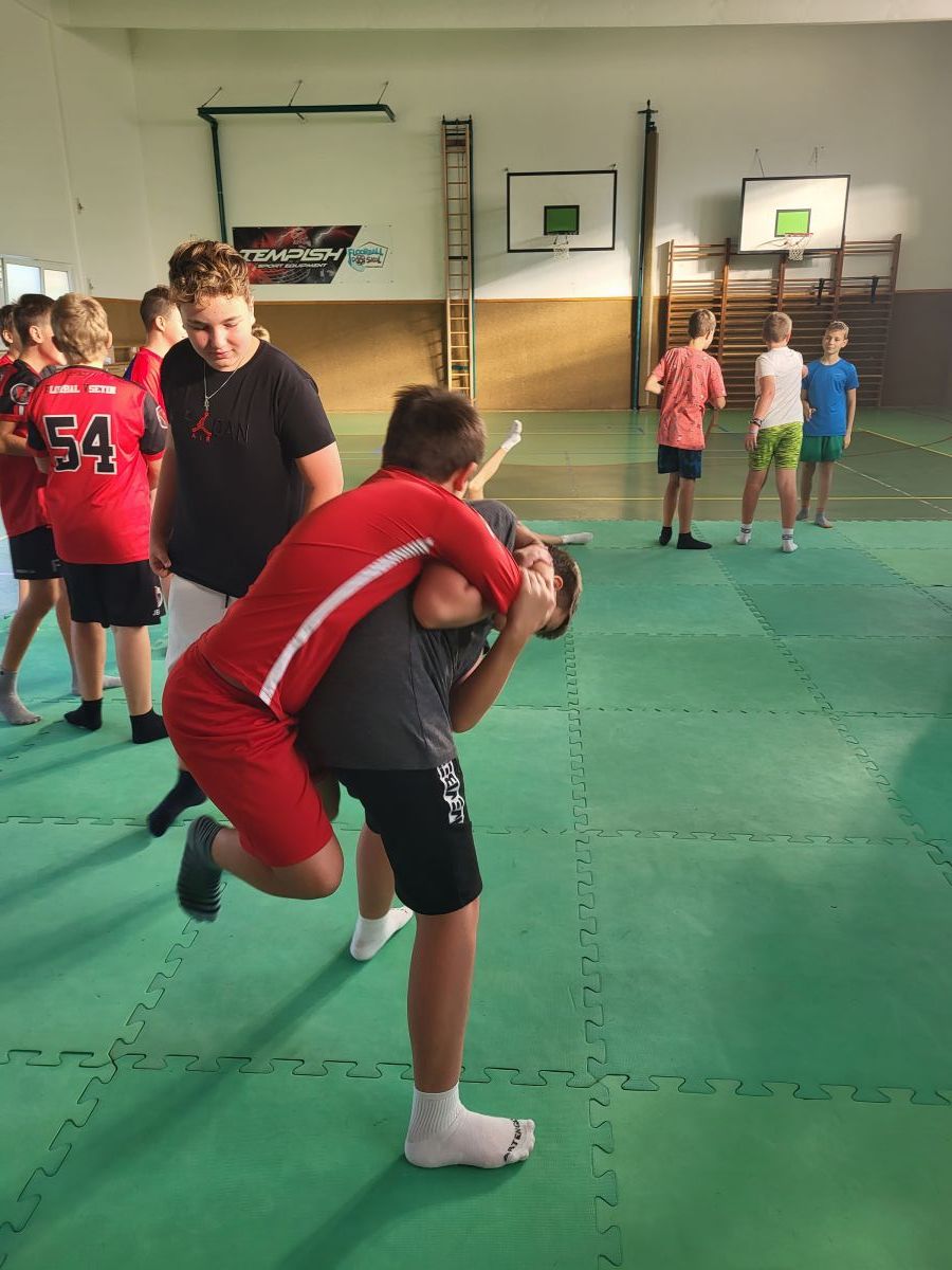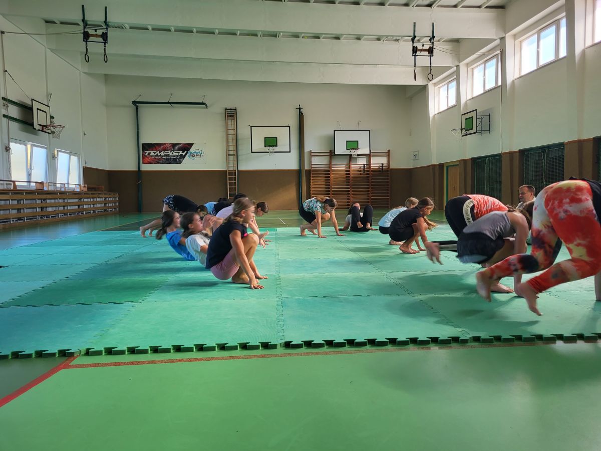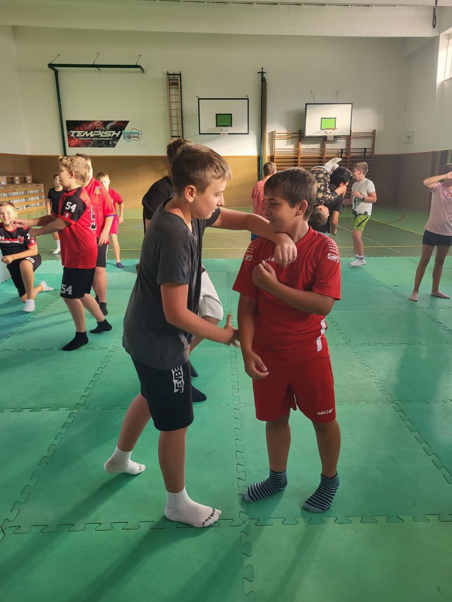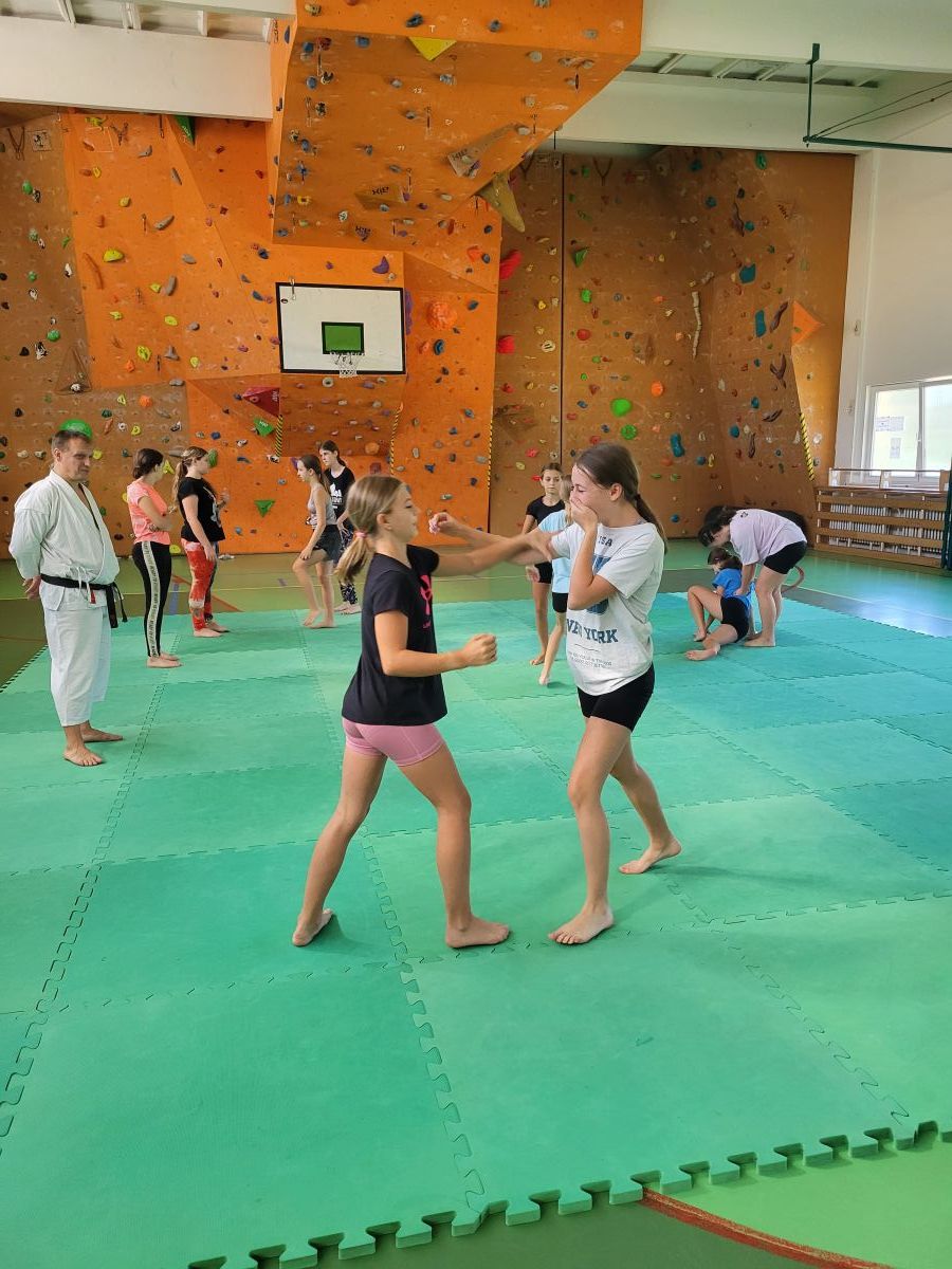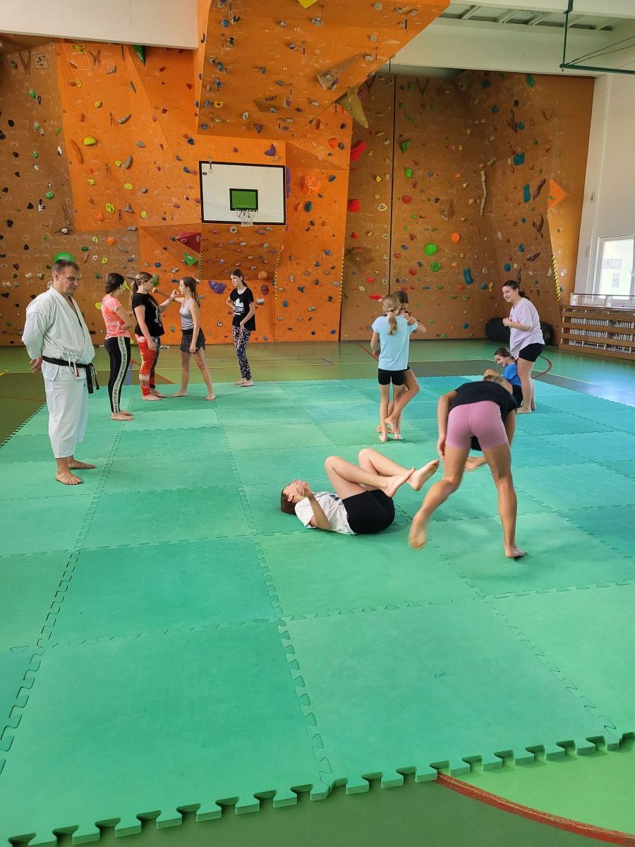 Na druhém stupni máme v hodinách tělesné výchovy skvělé zpestření! Pravidelně nás navštěvují zkušení trenéři Radek Kleibl a Jan Tichý, kteří holky a kluky zasvěcují do prvků sebeobrany a ju-jitsu. Cvičení je zábavné, ale především může v případě potřeby posloužit každému, kdo se ocitne v nesnázích. Mgr. Zuzana Šerá