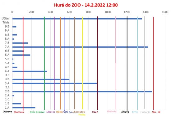 Zúčastnilo se celkem 17 tříd a dohromady se nachodilo 7 328 km.