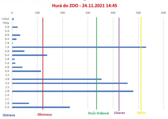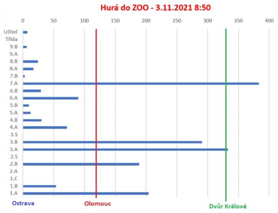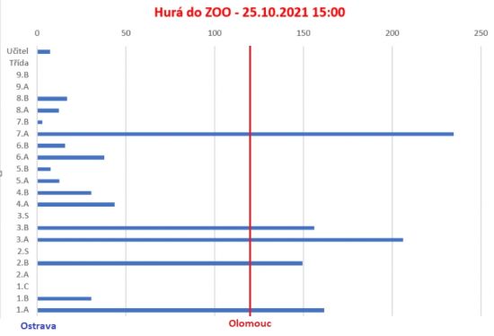 Žáci chodili na procházky a nachozený počet kilometrů zaznamenali pomocí aplikace na telefonu, který pak posílali do připraveného formuláře. A třída, která jako první obešla všechny zoo vyhrála.