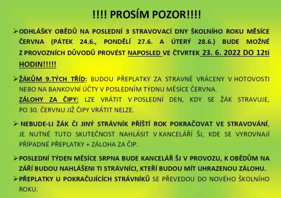 Informace školní jídelny