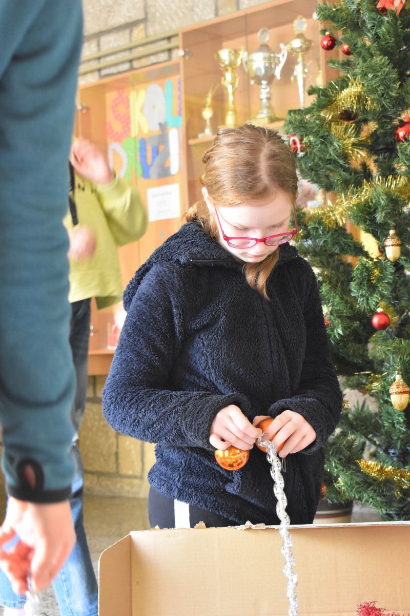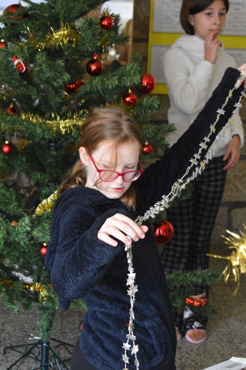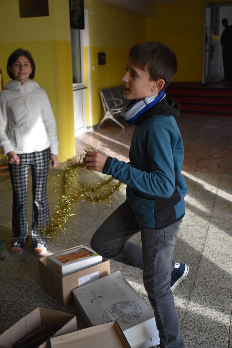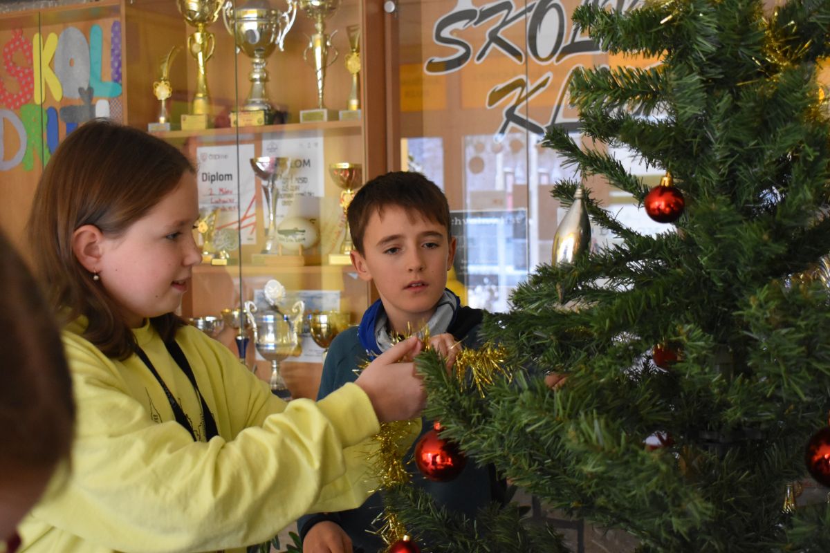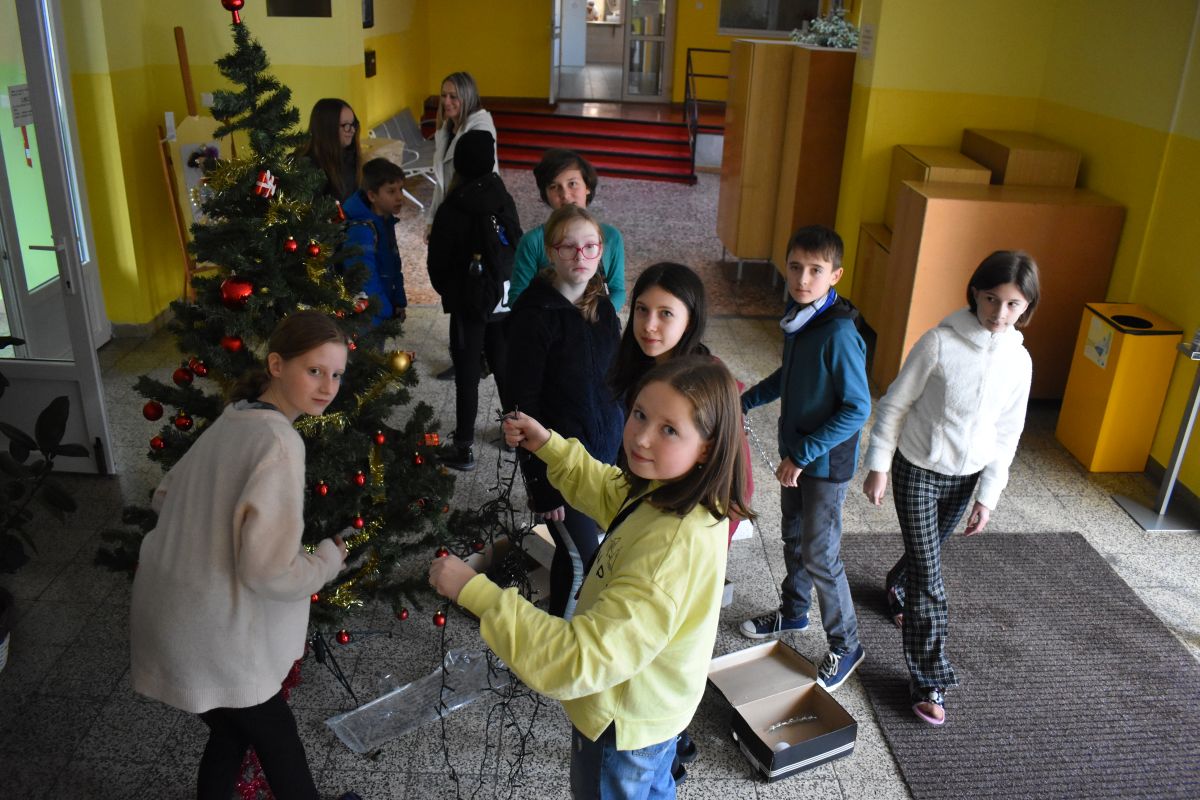 My už ladíme poslední detaily a proto jsme se tak, jako každý rok pustili do zdobení našeho školního, vánočního stromečku. Šlo nám to od ruky a ještě jsme se u té práce i zasmáli.