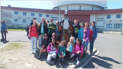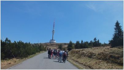 Po návštěvě papírny jsme se vydali směrem na Praděd. Přijeli jsme k horskému hotelu „Pod Pradědem“, vystoupili z autobusu a vydali se směrem na vrchol. Cestu krásnou přírodou našich Jeseníků jsme si všichni užili. Na Pradědu jsme si odpočinuli a pak jsme, kdo chtěl, vyjeli výtahem nahoru na vysílač, kde se nachází prosklená rozhledna. Výhled na okolní krajinu byl úchvatný. Potom jsme ještě chvíli strávili nahoře na Pradědu, každý po svém – někdo si dal hranolky, smažený sýr či borůvkové knedlíky, nebo se jen tak prošel kolem dokola. Sice foukalo, ale v tu chvíli neexistovalo nic, co by nám naši radost mohlo překazit.