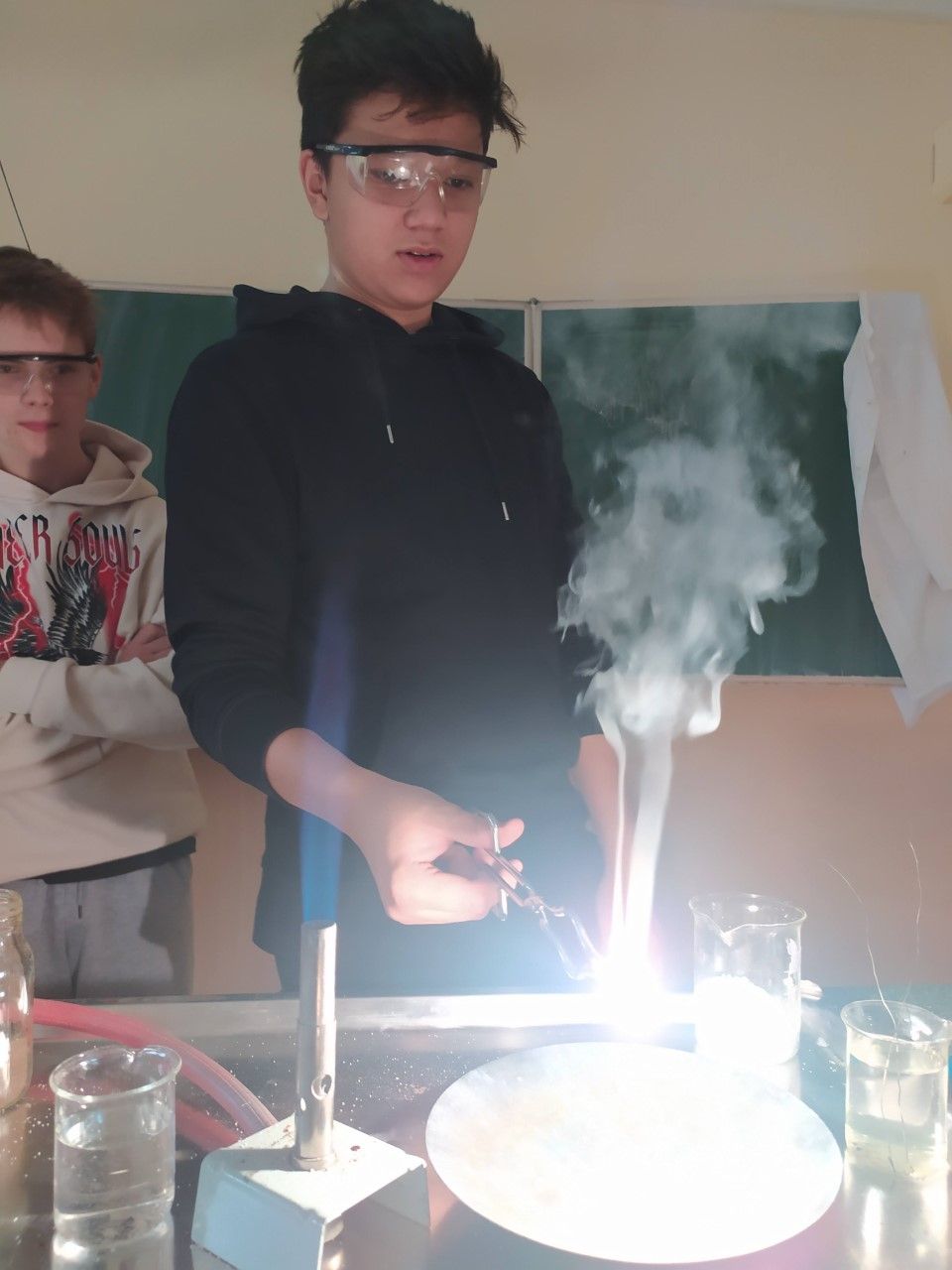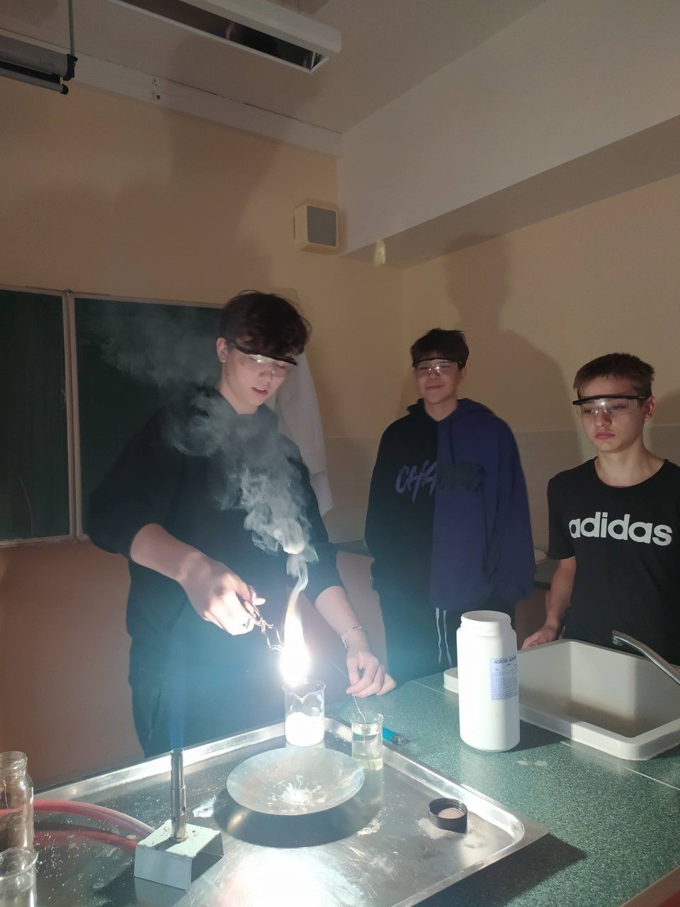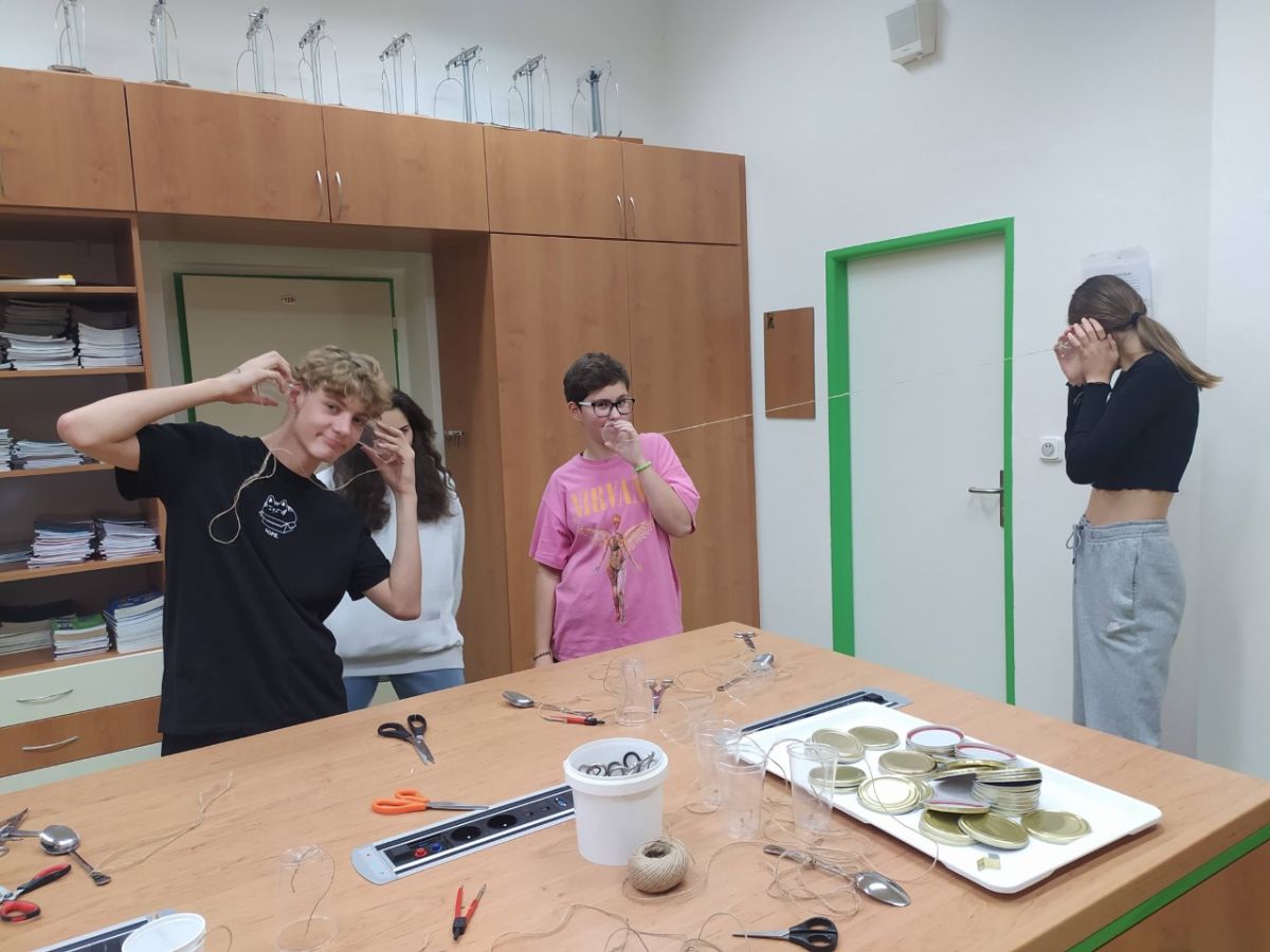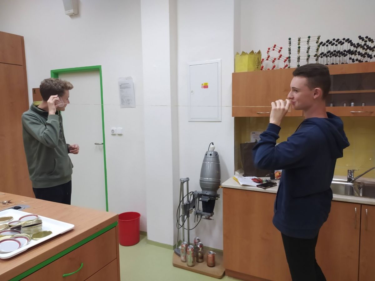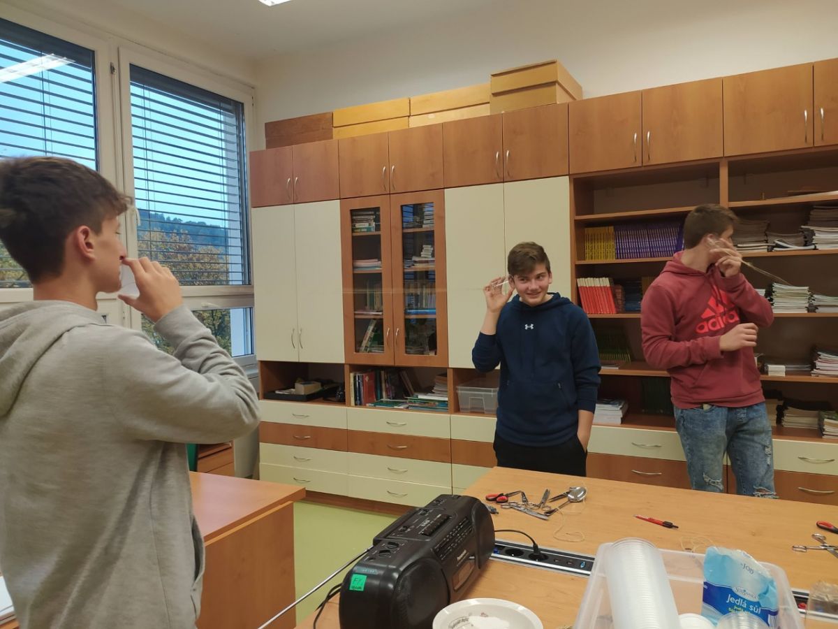 Večer se deváťáci se vydali na hvězdárnu, kde se seznámili s dalekohledem, který poskytuje až 500násobné zvětšení, a podívali na pokusy, tentokrát s vakuem.