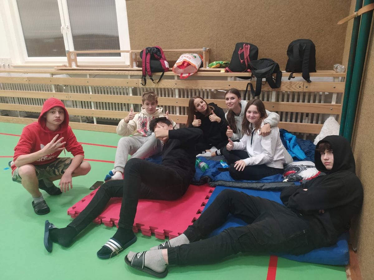 V nočních hodinách si nakonec žáci prošli celou školu, kde museli plnit spoustu úkolů a také je tam čekala zajímavá překvapení. Po ukončení tzv. Stezky odvahy, se děti mohly vyspat v tělocvičně. Ráno okolo osmé hodiny byl rozchod, a tím celá akce skončila.