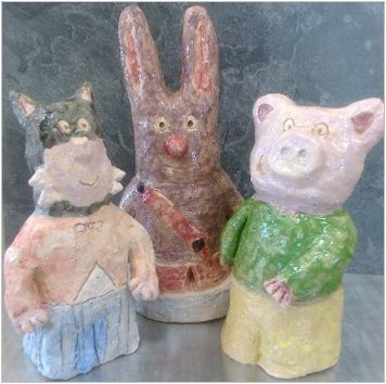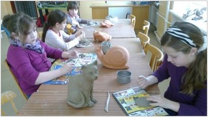 Děti usoudily, že už nejsou žádní začátečníci a budou tedy letos modelovat složitější výrobky. Ať každý posoudí sám, jak se jim to povedlo. V dalším školním roce budeme začínat opět od října.