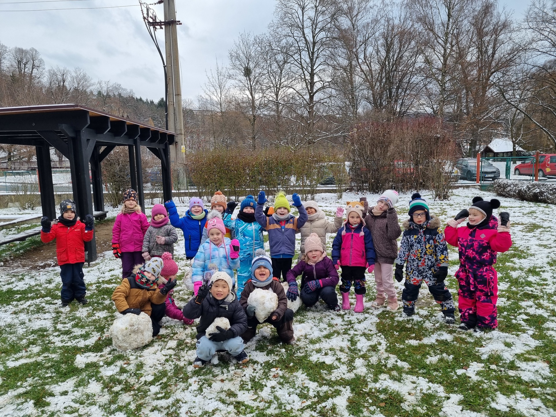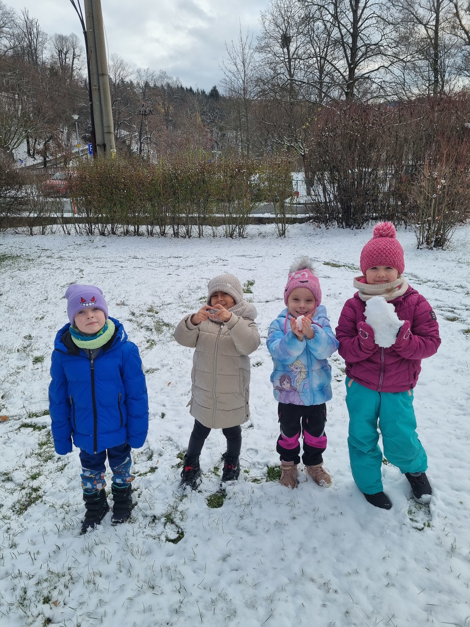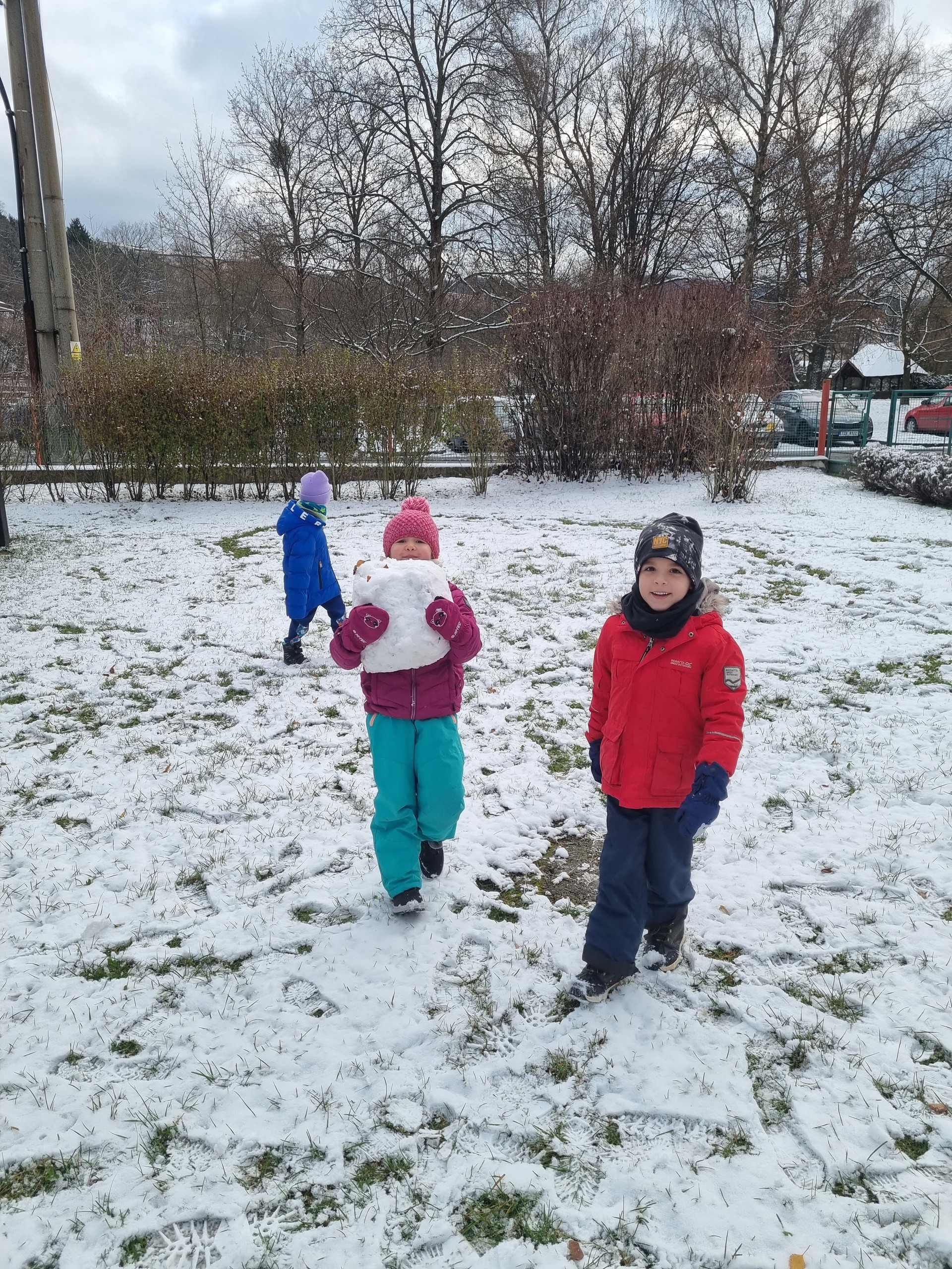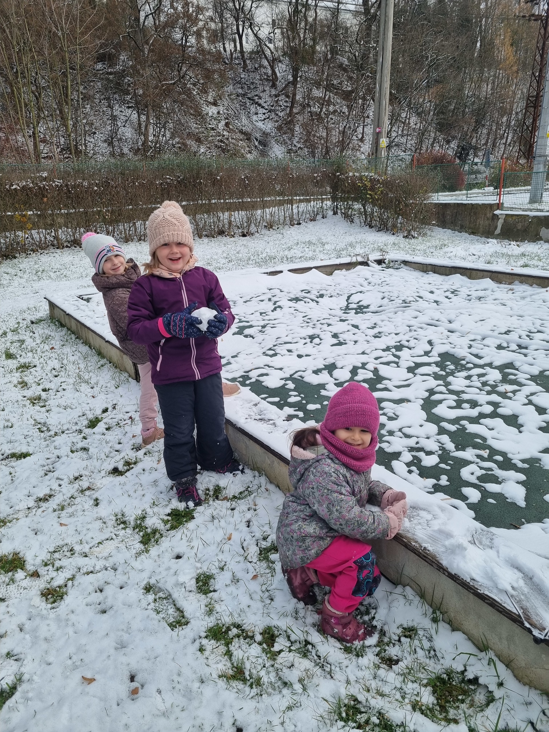 První sníh jsme si všichni náramně užili i přesto, že byl trochu mokrý a nebyly ho přímo hromady :-) Děti zkoušely udělat sněhové koule, postavit sněhuláka, či dělat ve sněhu cestičky. Snad se brzy dočkáme další sněhové nadílky, kterou si opět užijeme na 100%.