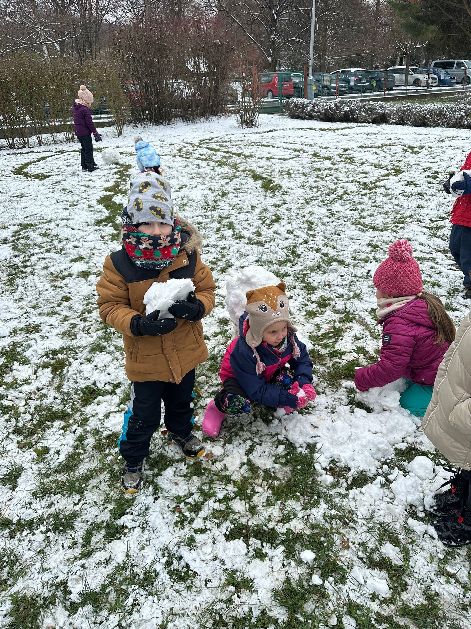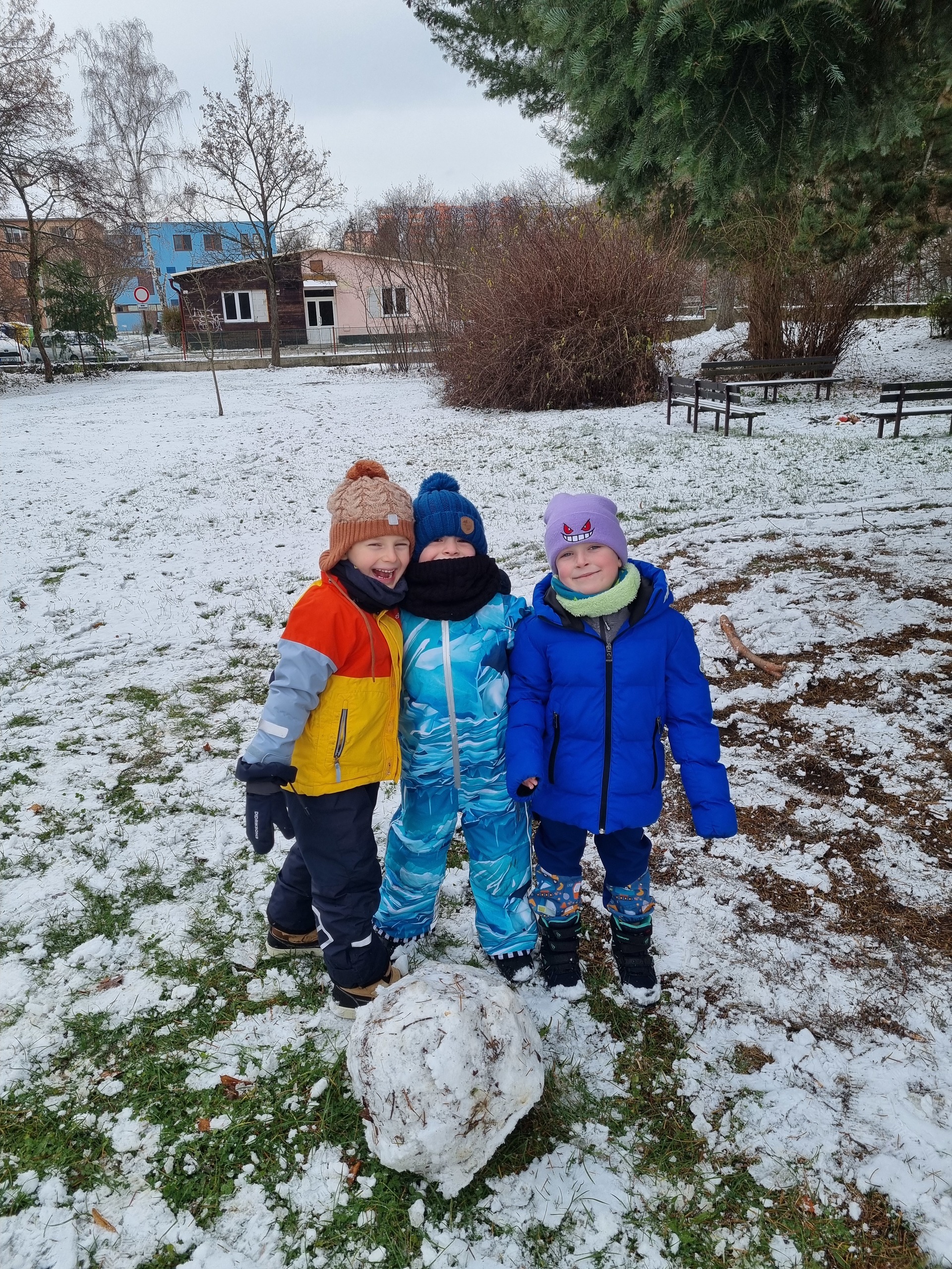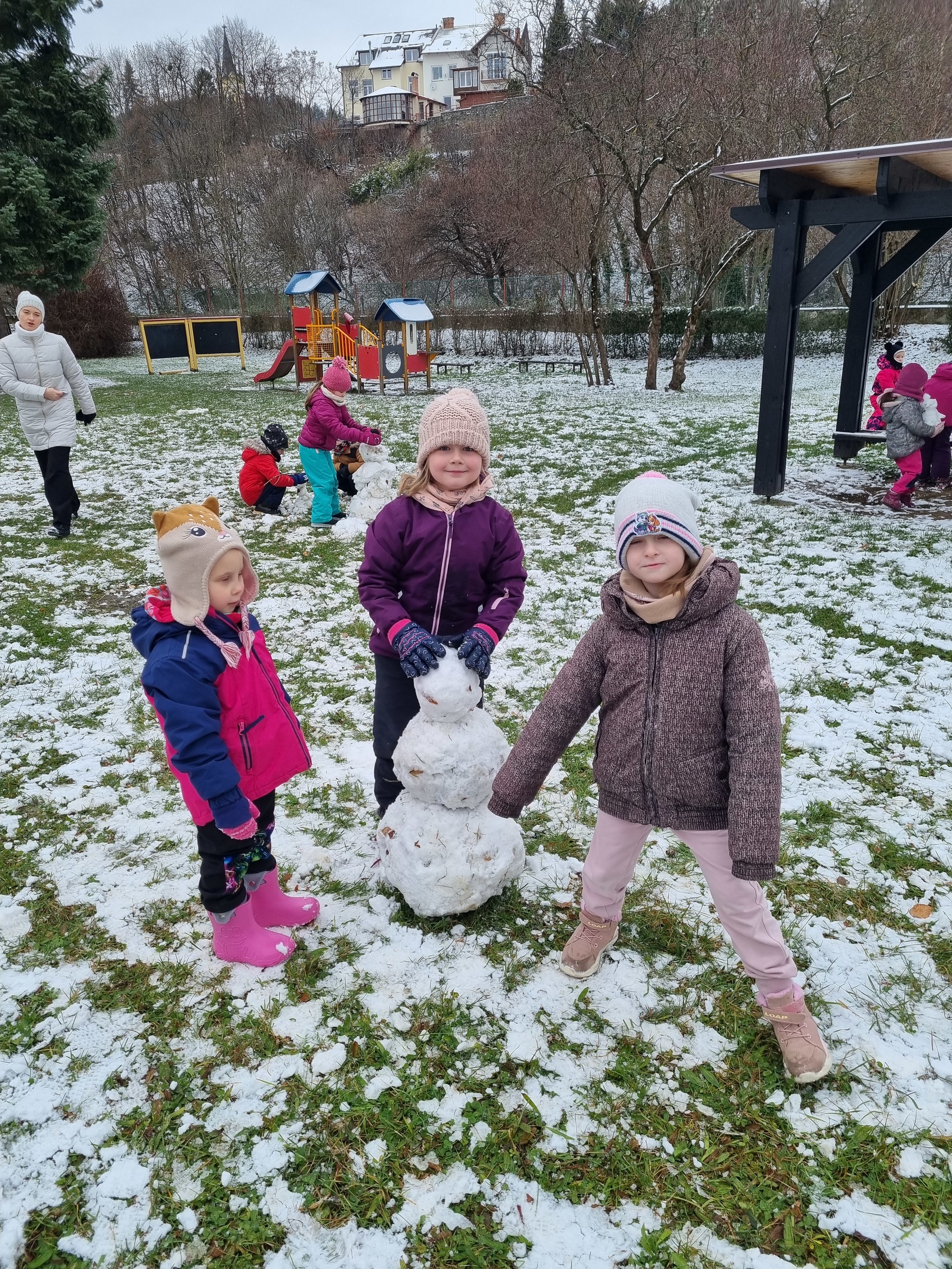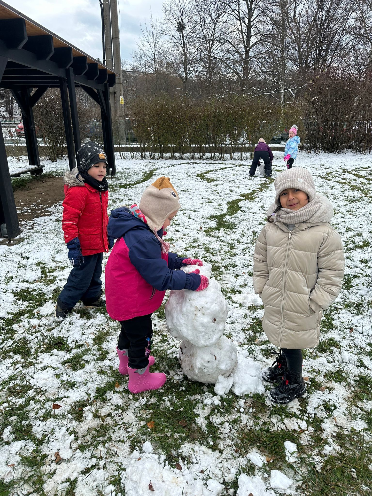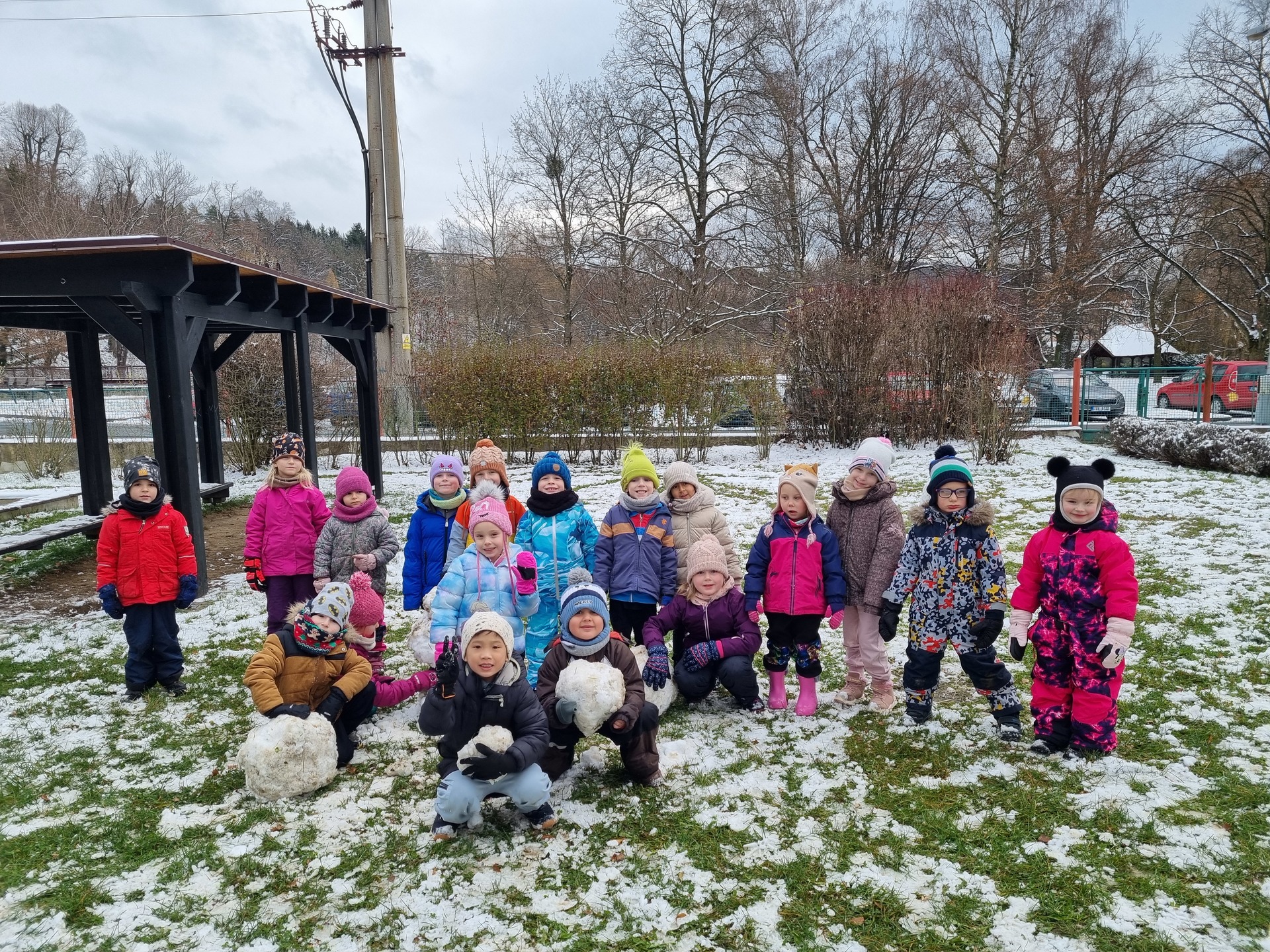 První sníh jsme si všichni náramně užili i přesto, že byl trochu mokrý a nebyly ho přímo hromady :-) Děti zkoušely udělat sněhové koule, postavit sněhuláka, či dělat ve sněhu cestičky. Snad se brzy dočkáme další sněhové nadílky, kterou si opět užijeme na 100%.