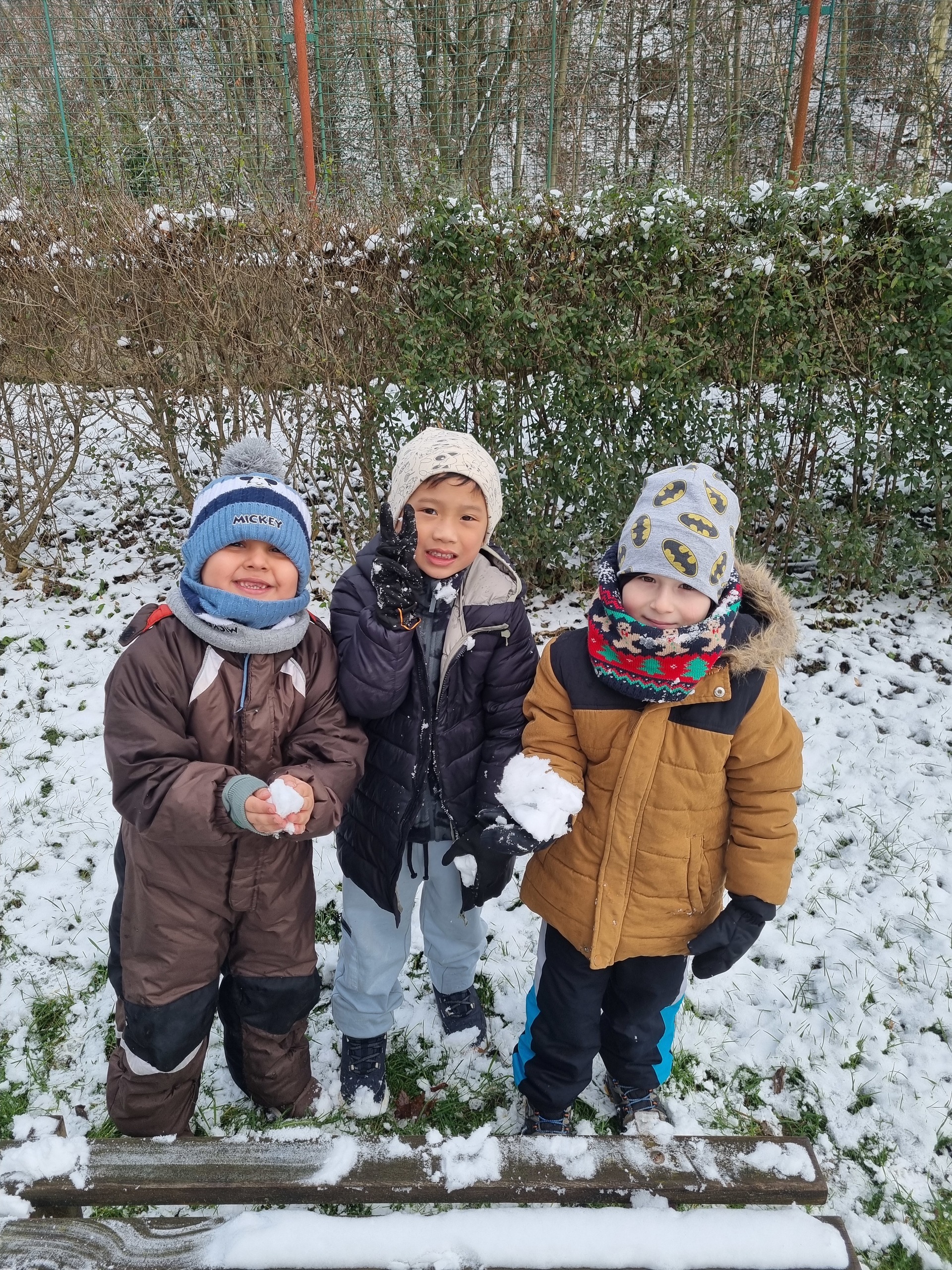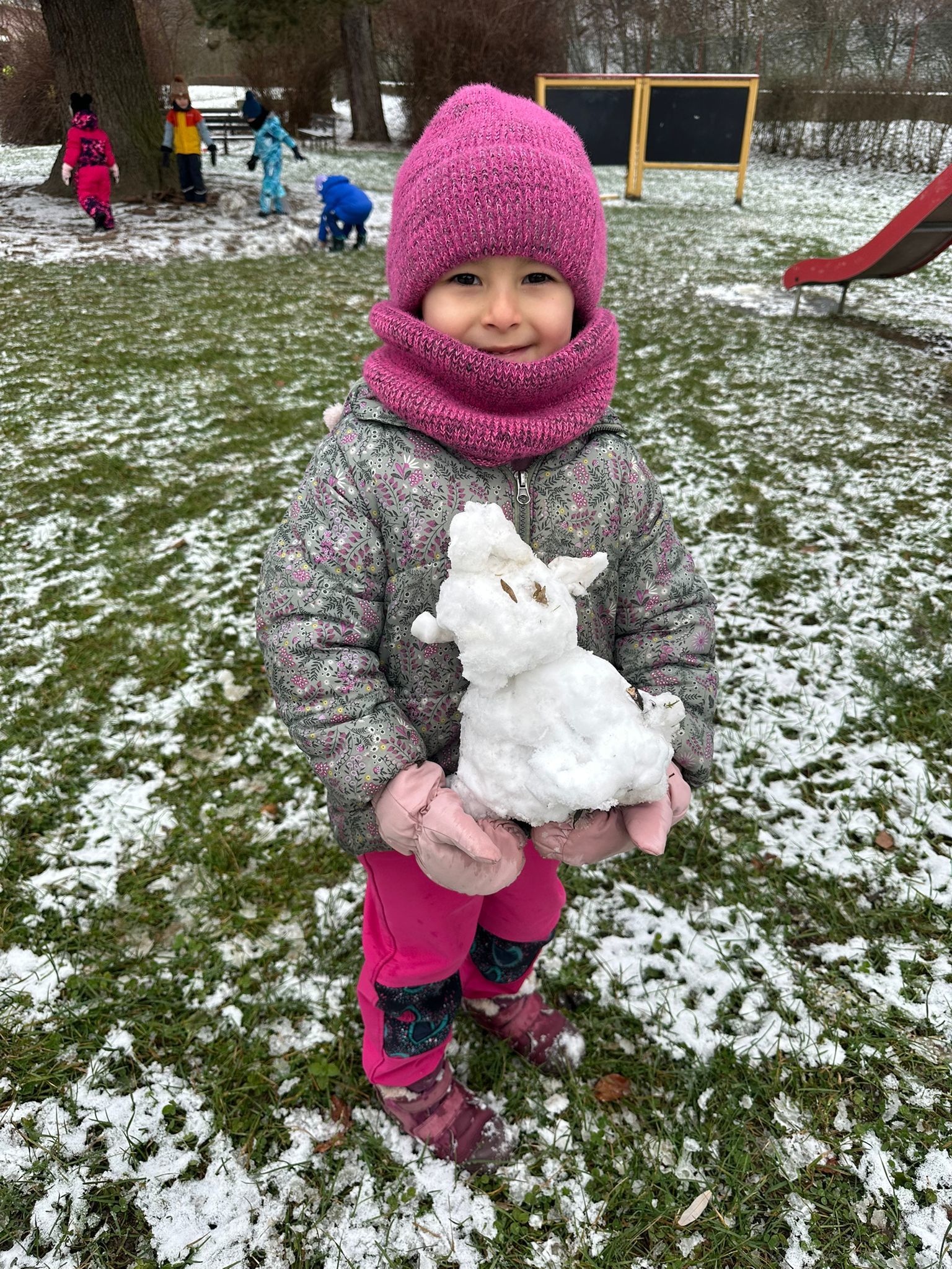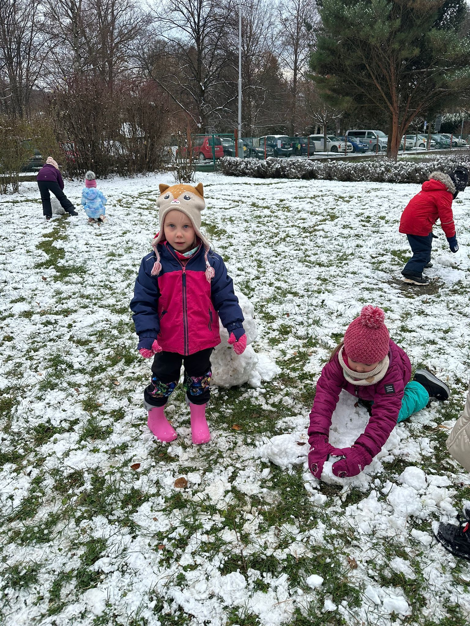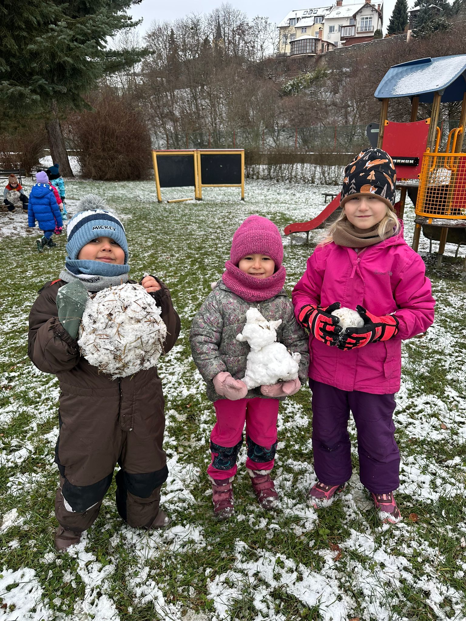 První sníh jsme si všichni náramně užili i přesto, že byl trochu mokrý a nebyly ho přímo hromady :-) Děti zkoušely udělat sněhové koule, postavit sněhuláka, či dělat ve sněhu cestičky. Snad se brzy dočkáme další sněhové nadílky, kterou si opět užijeme na 100%.