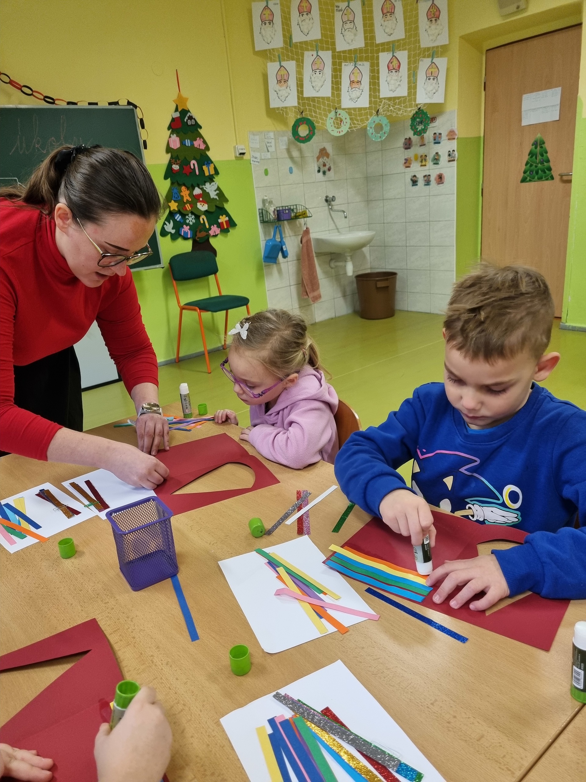 V posledním týdnu před Vánocemi jsme navštívili ZŠ Luh, kde byly pro děti připraveny dílničky s vánoční tématikou. Děti si vytvořily krásná přáníčka z barevného, třpytivého papíru, a aby se i trošku protáhly, zatančily si s paní vychovatelkou country taneček a s pomocí rytmických vajíček vytvořily doprovod k písničce. Opravdu velký zážitek na děti čekal v přípravné kuchyňce, kde si za pomoci paní učitelky vyrobily vynikající vánoční cukroví, na kterém si pak i pochutnaly.