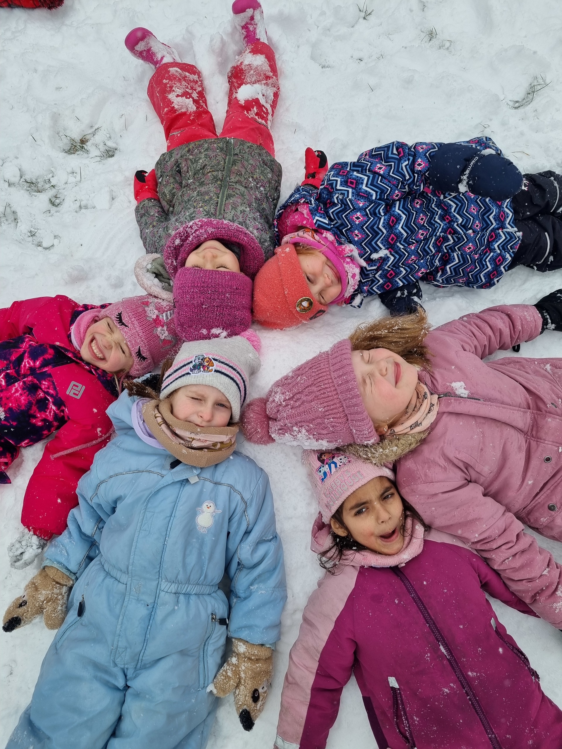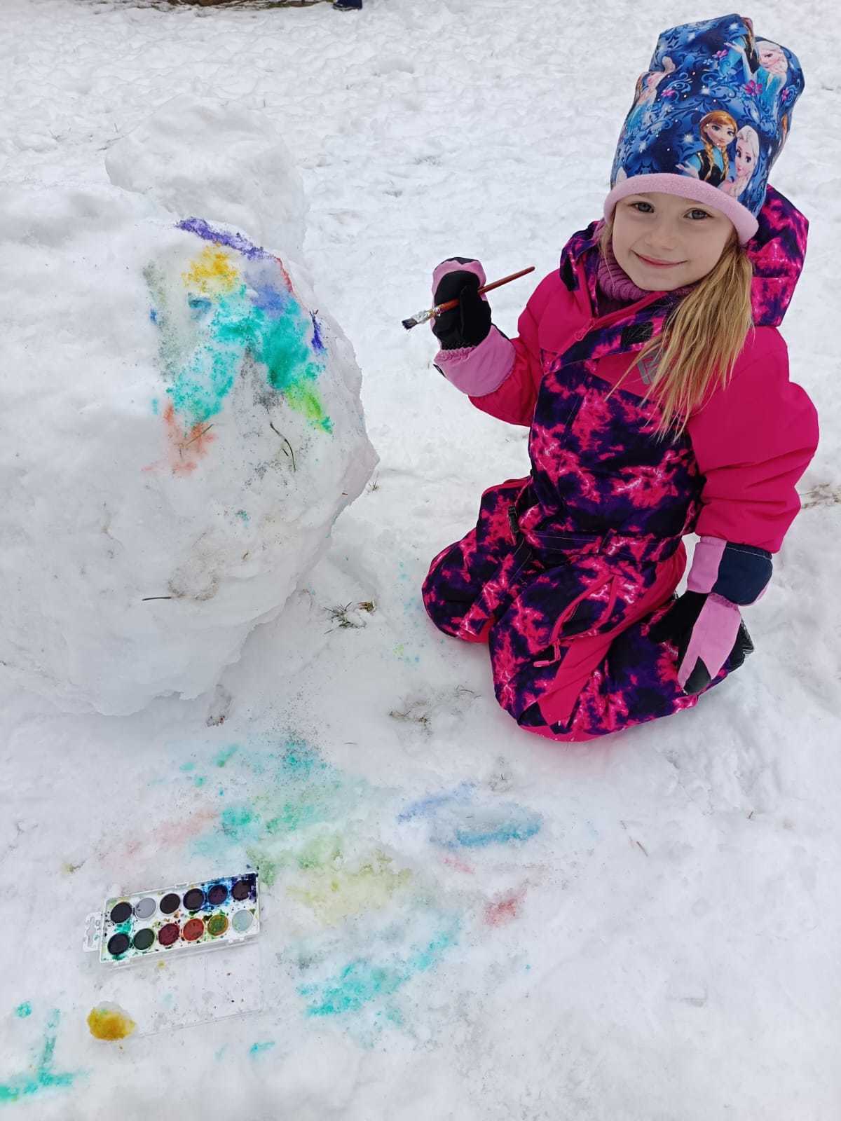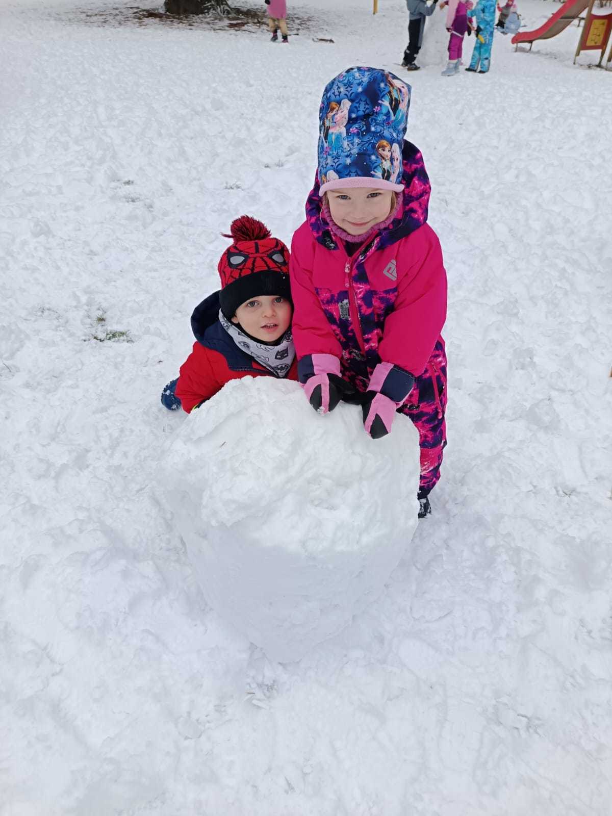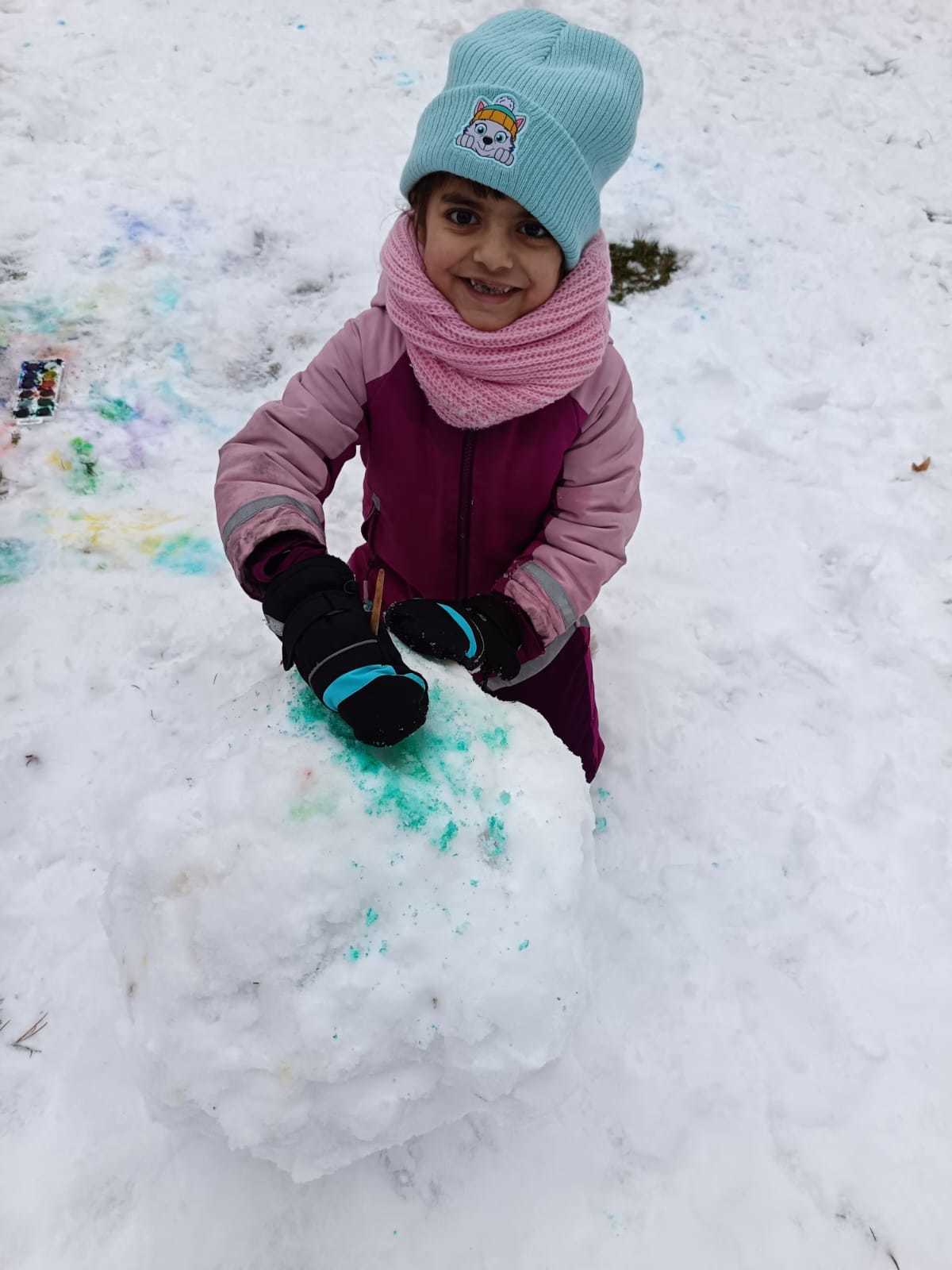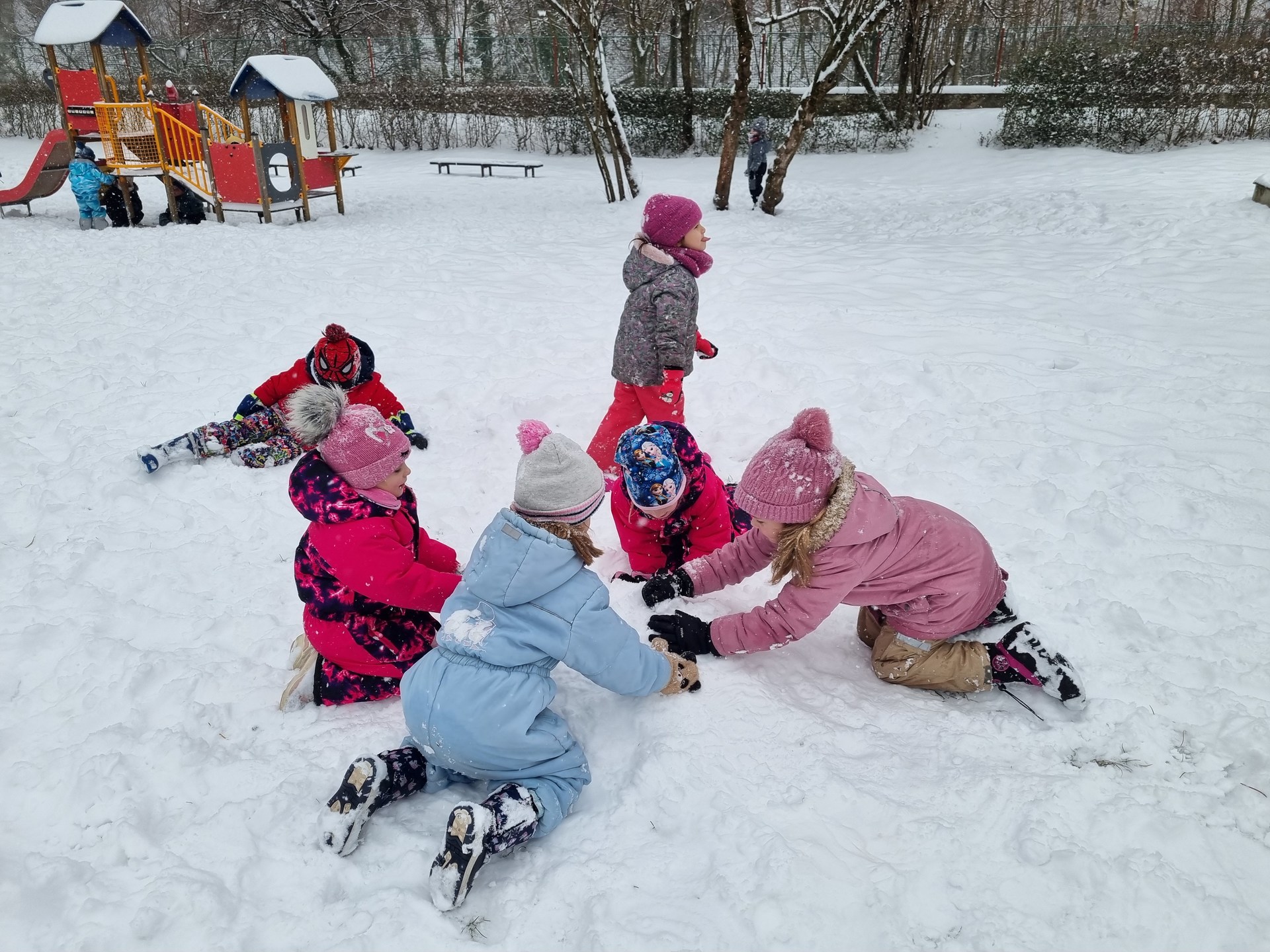 Teple se obléct, nasadit čepici, rukavice, a jde se na to! K maximálnímu využití sněhové pokrývky nám posloužila školní zahrada a příroda v okolí. Děti s radostí koulely sněhuláky, dělaly andělíčky, tvořily cestičky, vyzkoušely si malování barvičkami do sněhu a některé se dokonce chopily lopaty a zapojily své svaly během odklízení sněhu z chodníku. :-) Samozřejmě nechyběla ani jízda na lopatách, které si děti přinesly z domu a během níž jsme si užili spoustu legrace.
