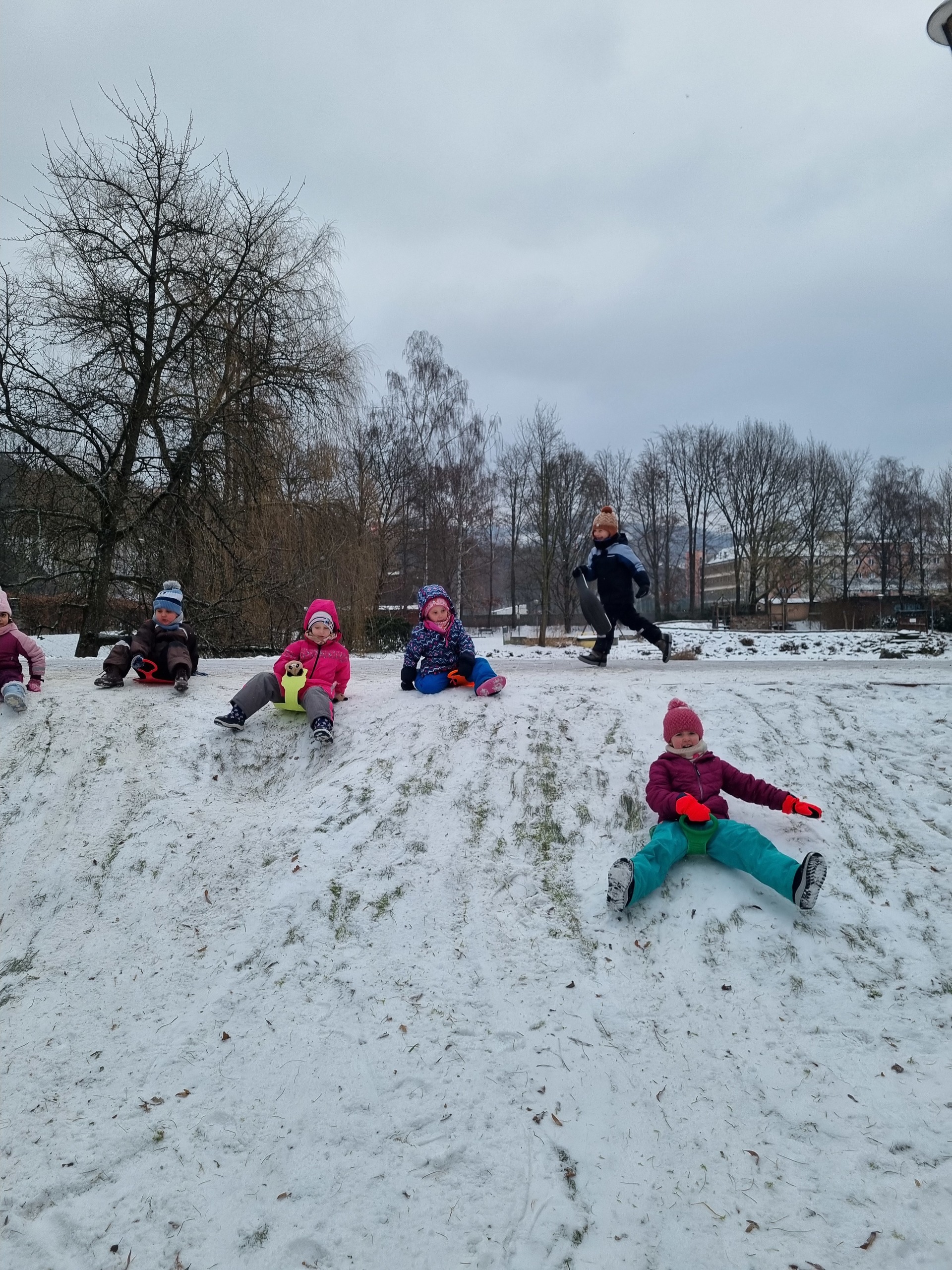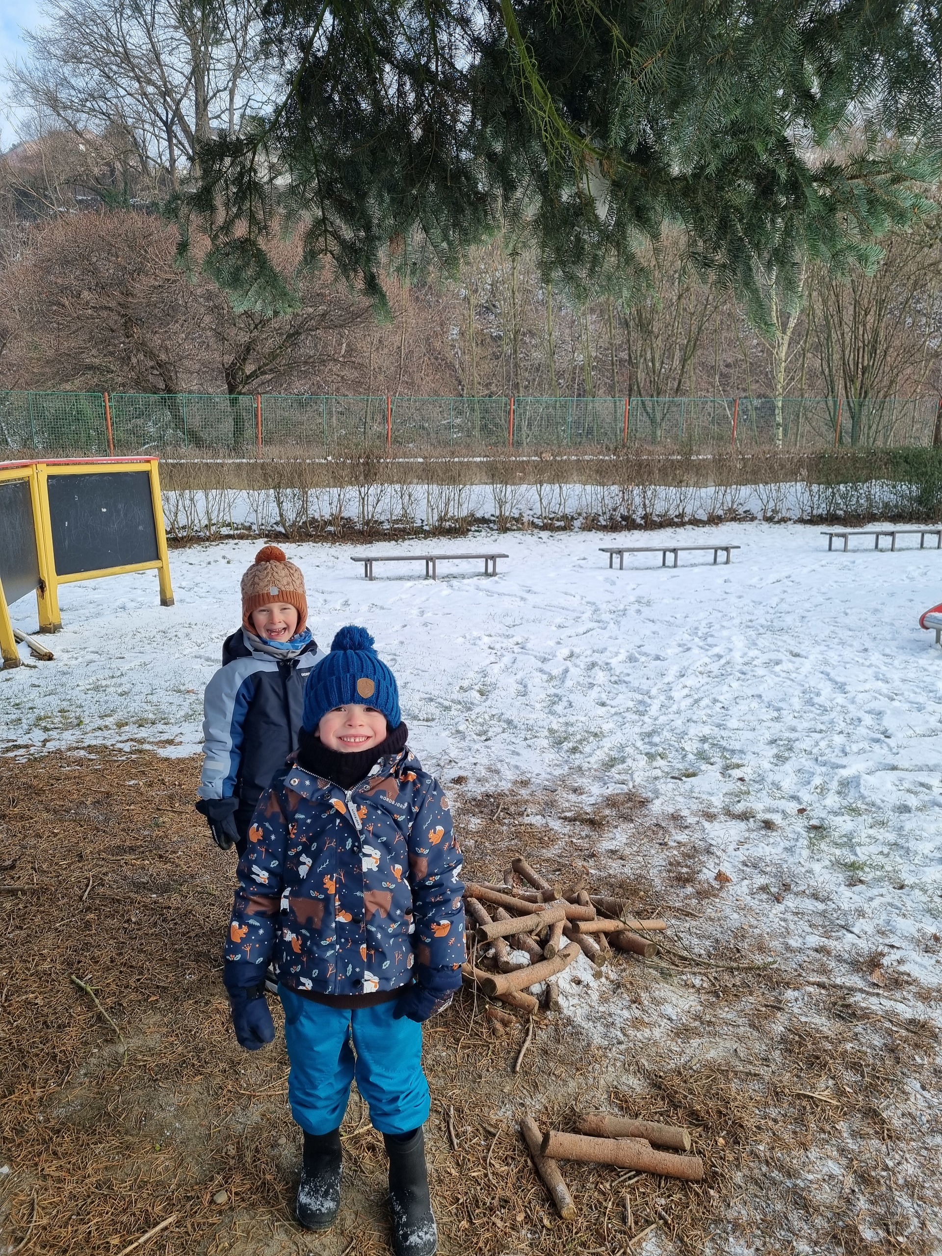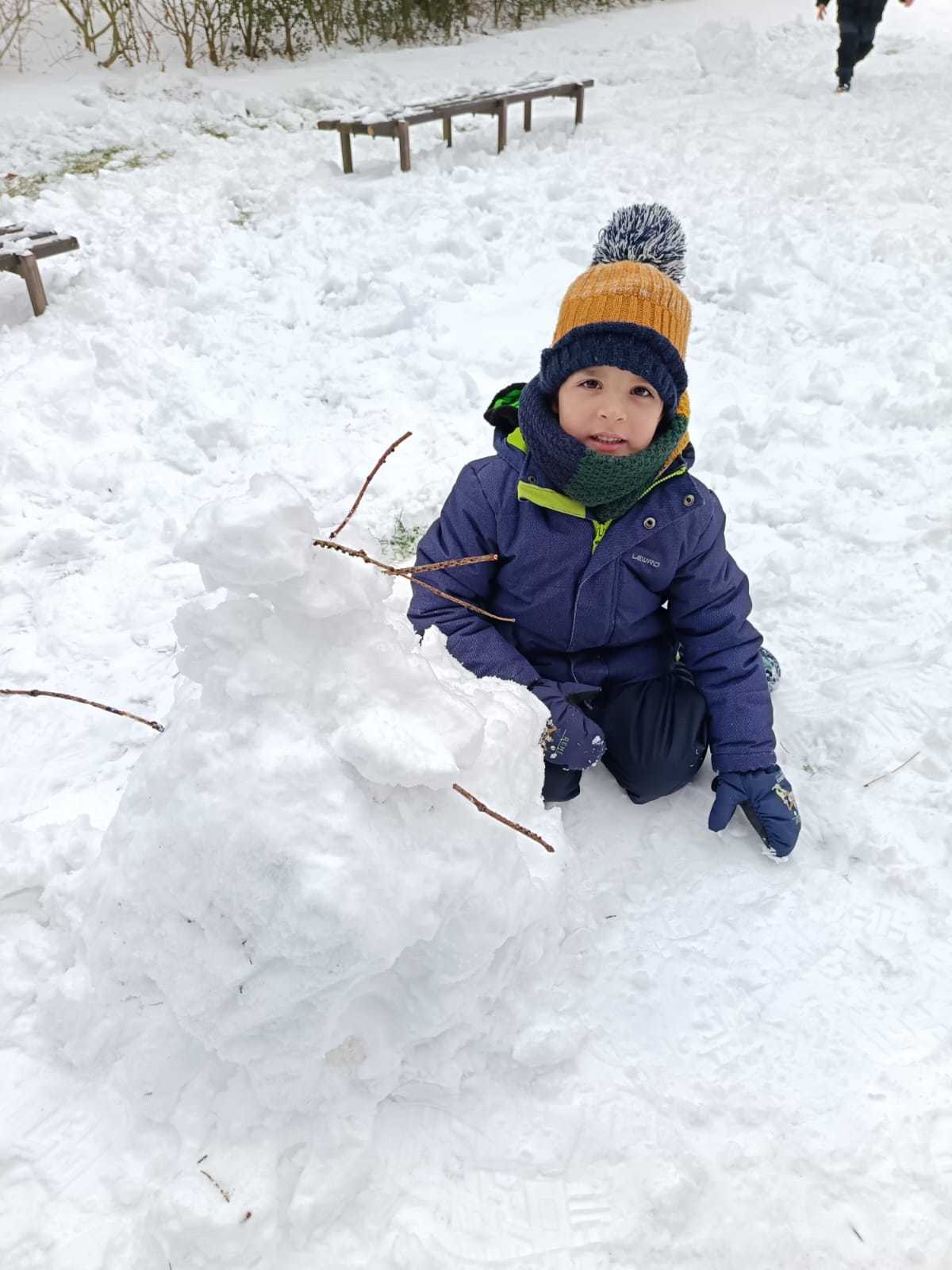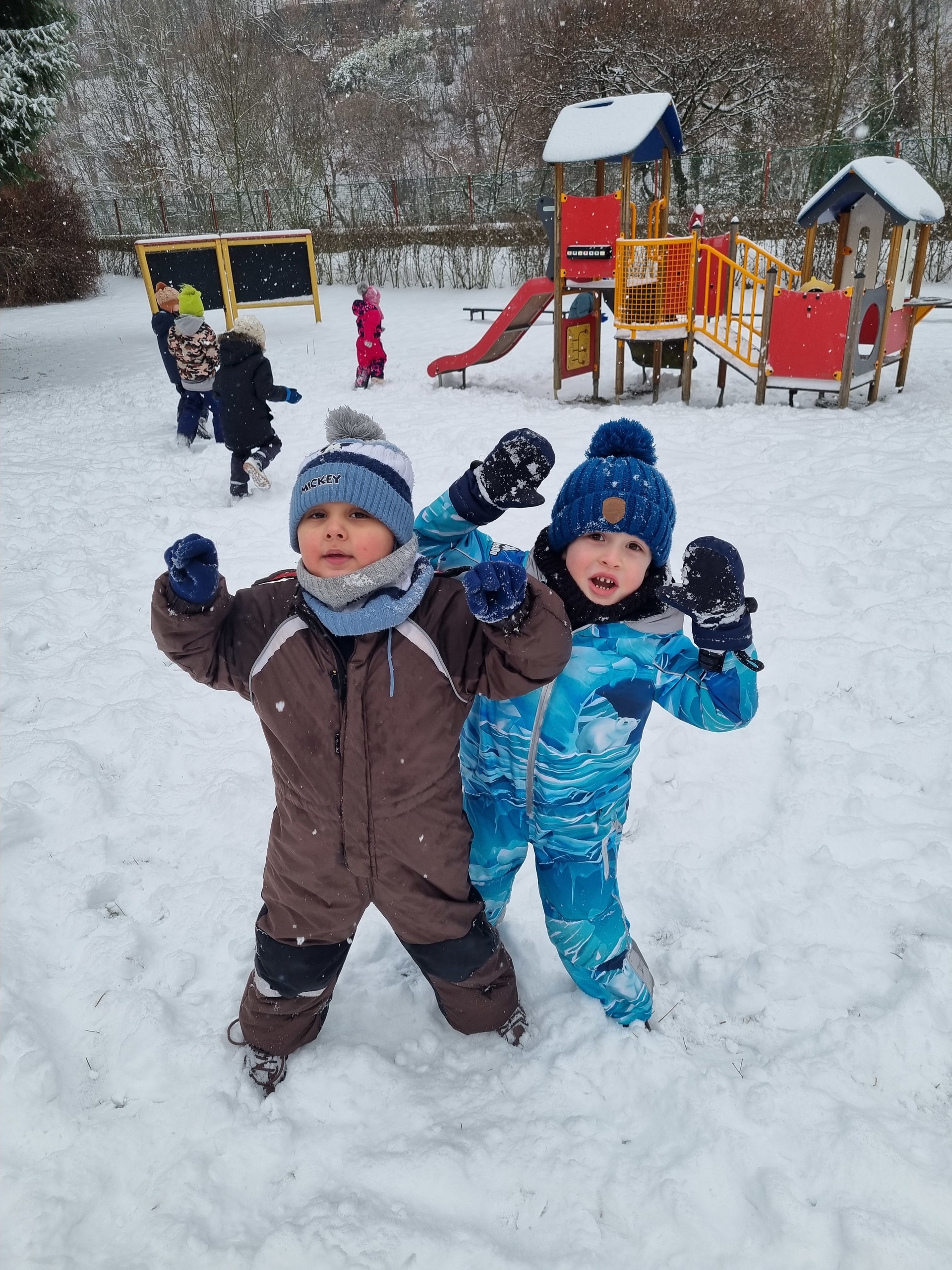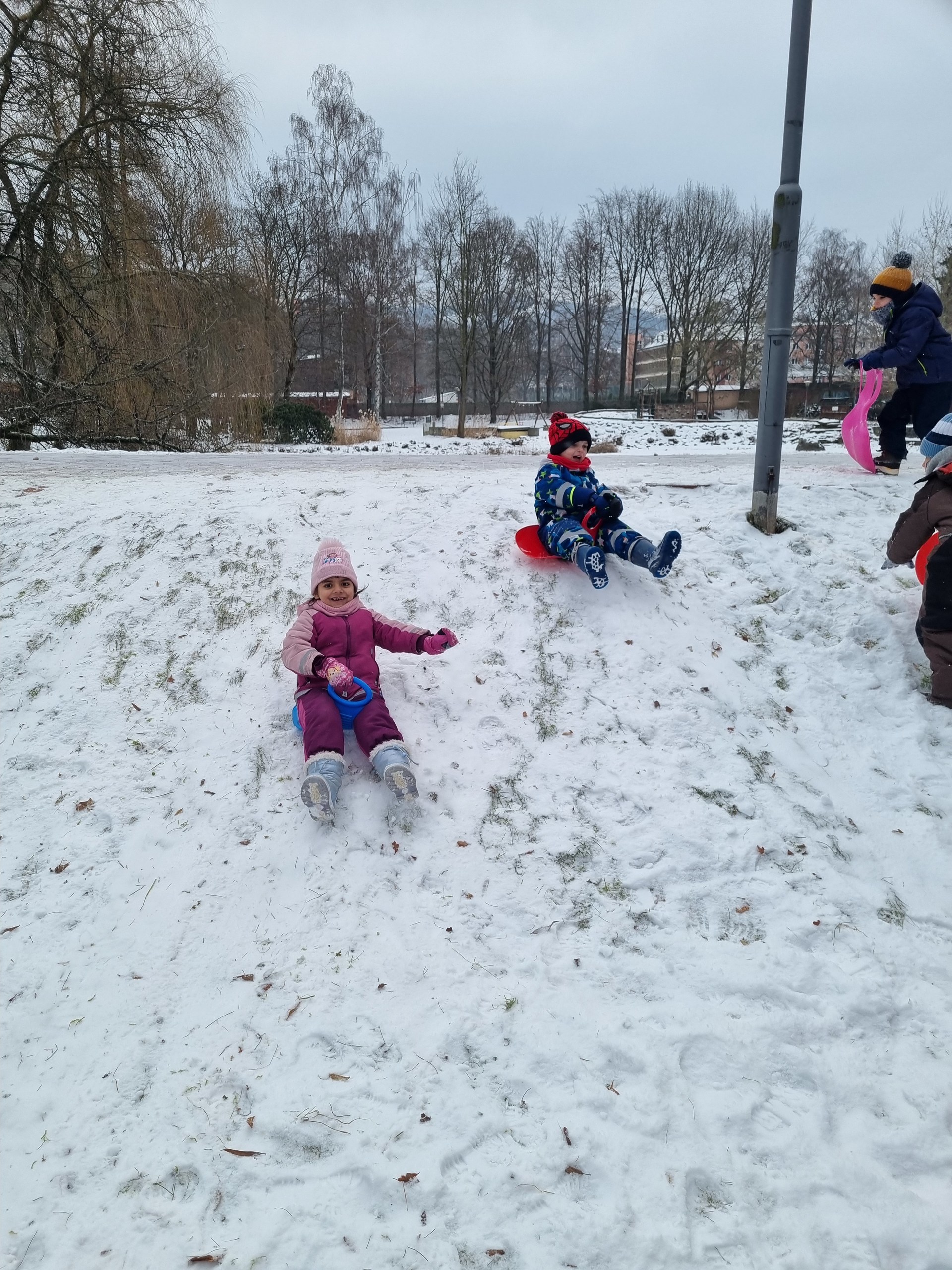 Teple se obléct, nasadit čepici, rukavice, a jde se na to! K maximálnímu využití sněhové pokrývky nám posloužila školní zahrada a příroda v okolí. Děti s radostí koulely sněhuláky, dělaly andělíčky, tvořily cestičky, vyzkoušely si malování barvičkami do sněhu a některé se dokonce chopily lopaty a zapojily své svaly během odklízení sněhu z chodníku. :-) Samozřejmě nechyběla ani jízda na lopatách, které si děti přinesly z domu a během níž jsme si užili spoustu legrace.