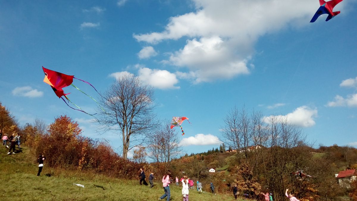 Dvě desítky draků různých tvarů, velikostí a barev se vnášely k oblakům. Zkušenější děti již uměly pouštět své dráčky sami.