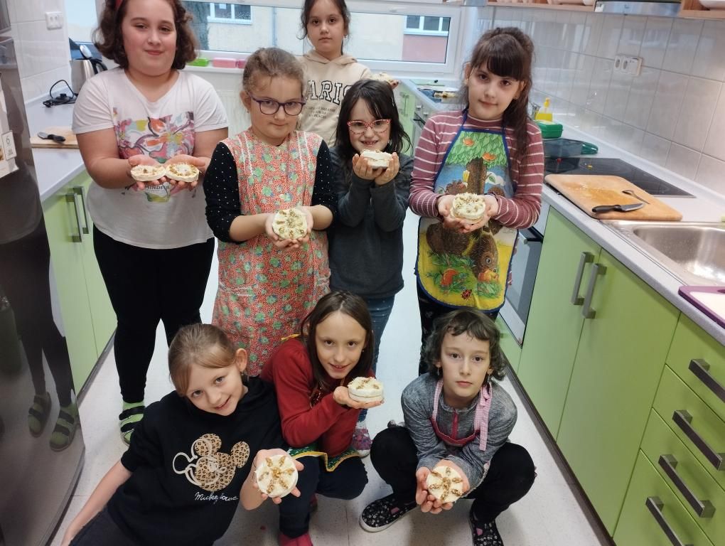 Ale i další dobrůtky – koka sušenky, jablíčka v županu, zeleninový salát, velikonoční perníčky, hermelínový dortík chutnaly.