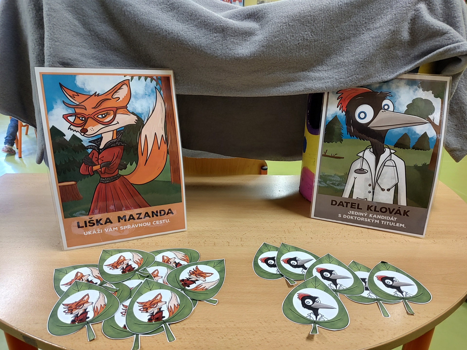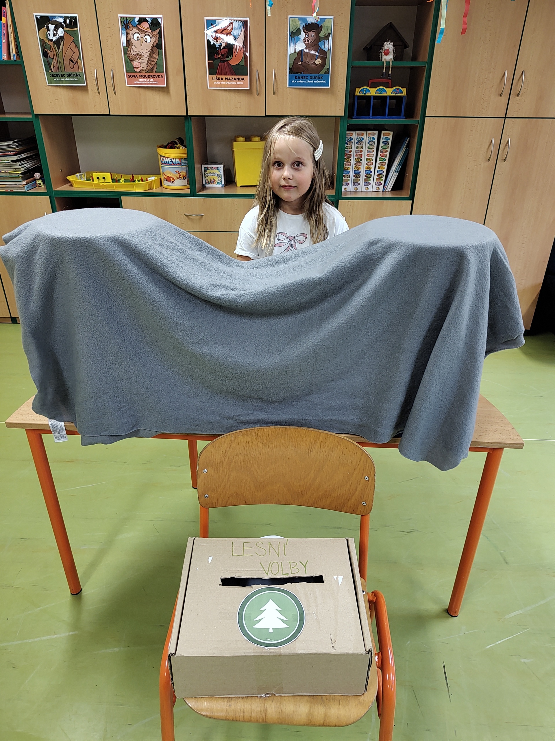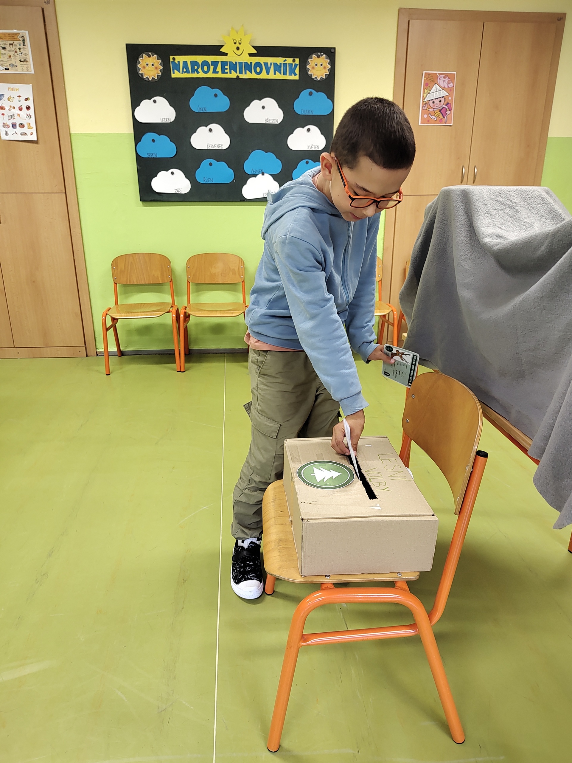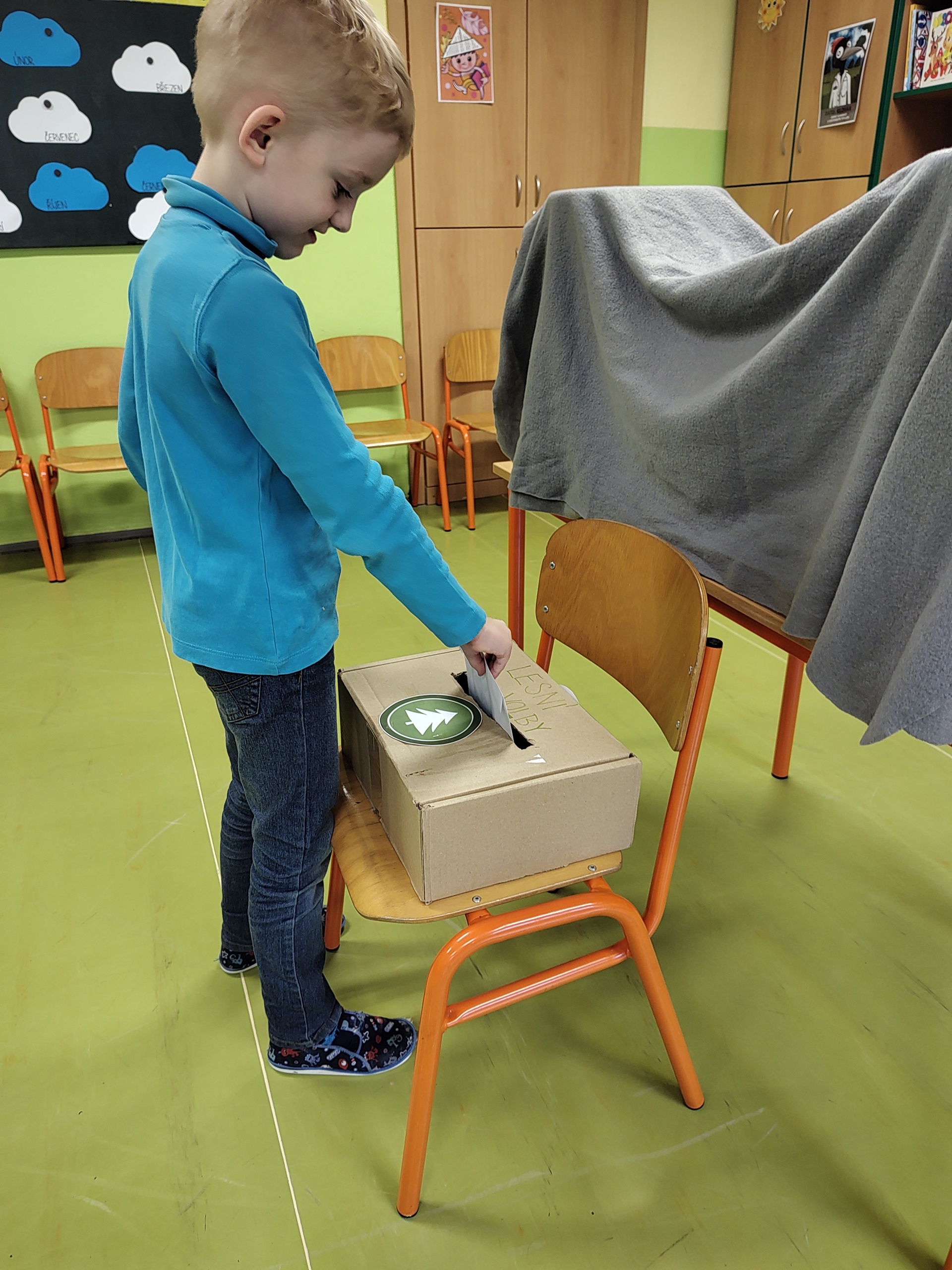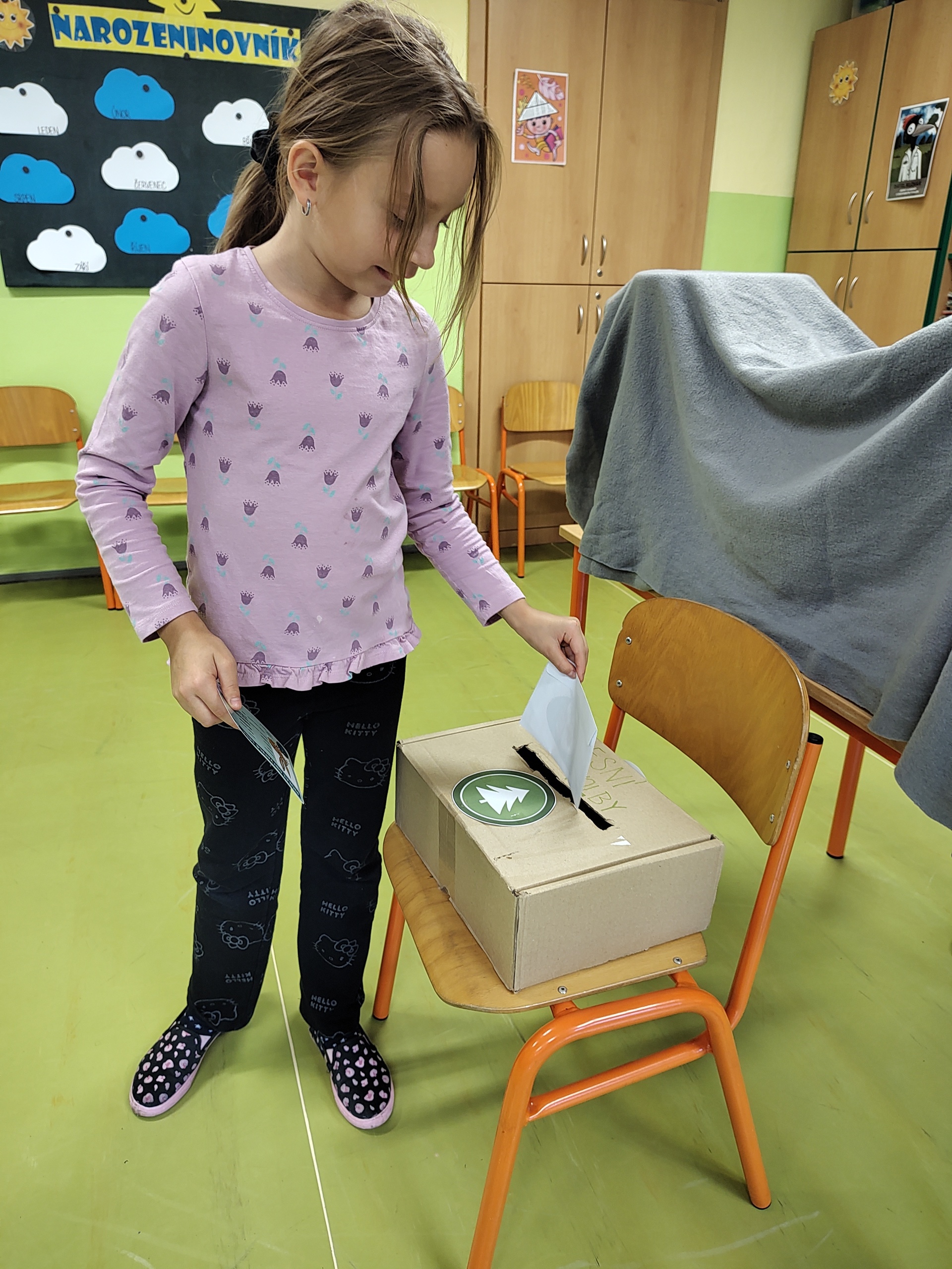 V oddělení Sluníček si děti vyzkoušely, jak to chodí při skutečných volbách. Proměnily se v obyvatele lesa, kde každý měl svůj vlastní voličský průkaz a mohl tak opravdu hlasovat – stejně jako dospělí. V prvním kole bylo veselo a hlasů bylo spousta! Do druhého kola postoupili datel Klovák a liška Mazanda. Boj to byl napínavý až do poslední chvíle. A kdo nakonec zvítězil? Liška Mazanda! Děti si při Lesních volbách nejen užily spoustu zábavy, ale také zjistily, jak důležité je volit a rozhodovat se podle sebe.