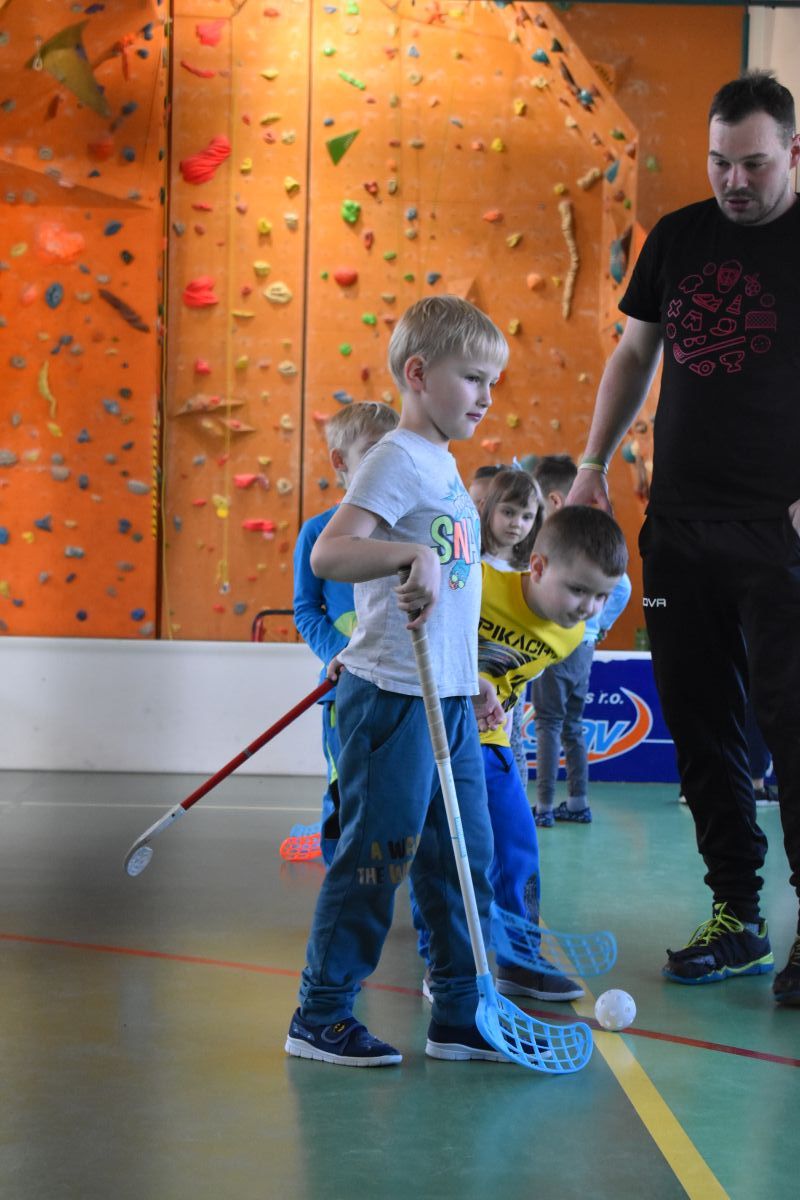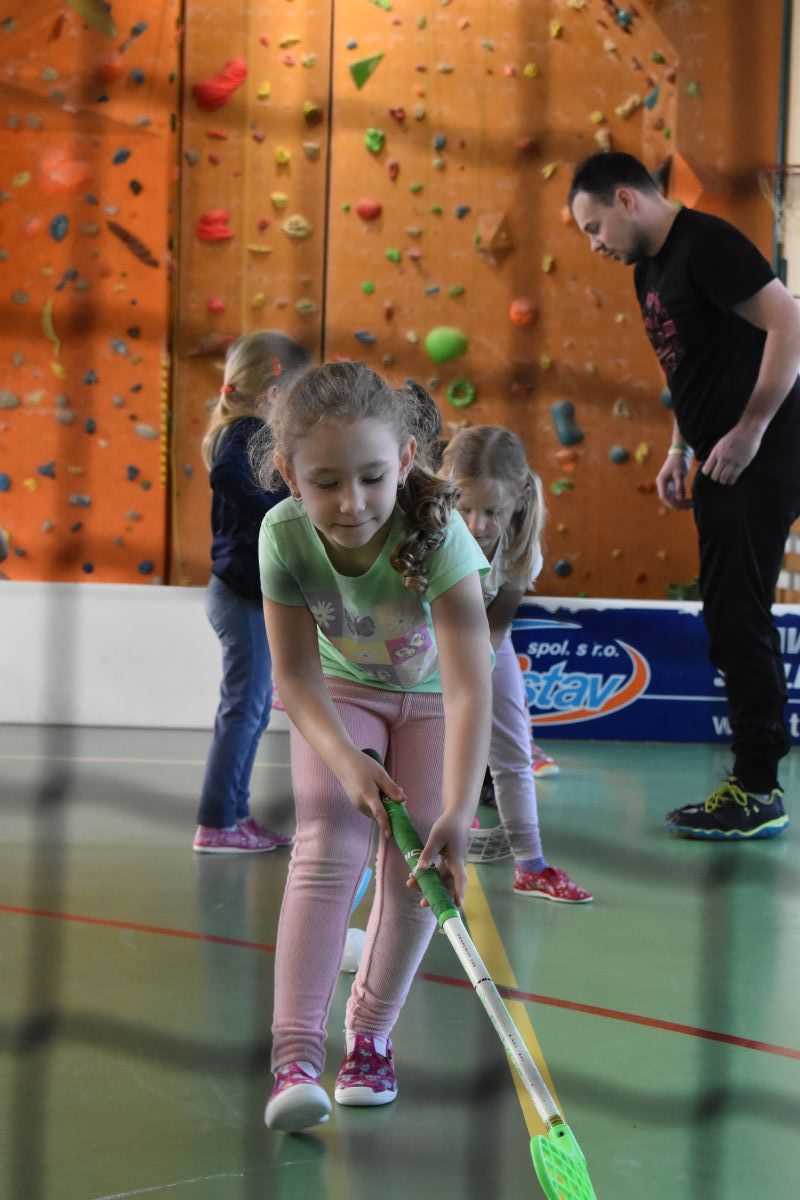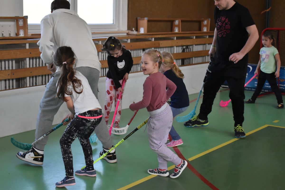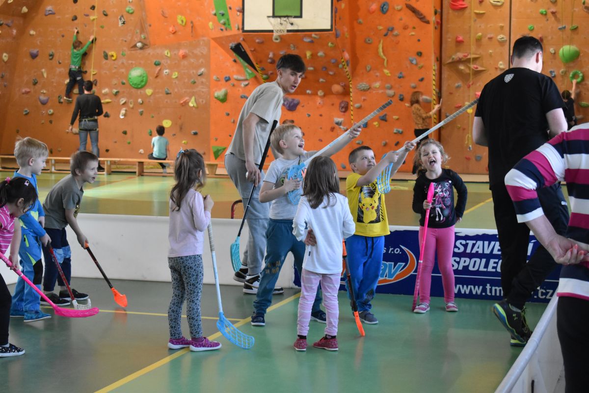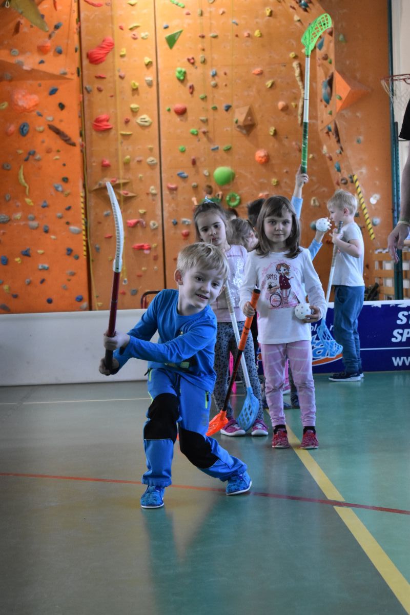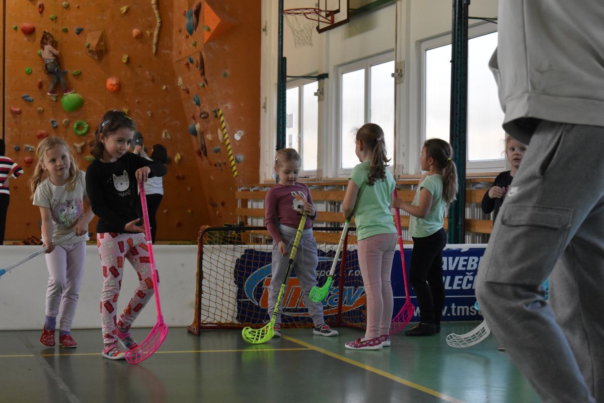 Ve středu 3.4. jsme s předškoláky ze sousední mateřské školy strávili bezva dopoledne plné sportu a legrace. Naši nejmenší si mohli vyzkoušet naši horolezeckou stěnu, florbal i pohybové soutěže s hokejovým trenérem. Nechyběl smích, potlesk ani sladká odměna na závěr.