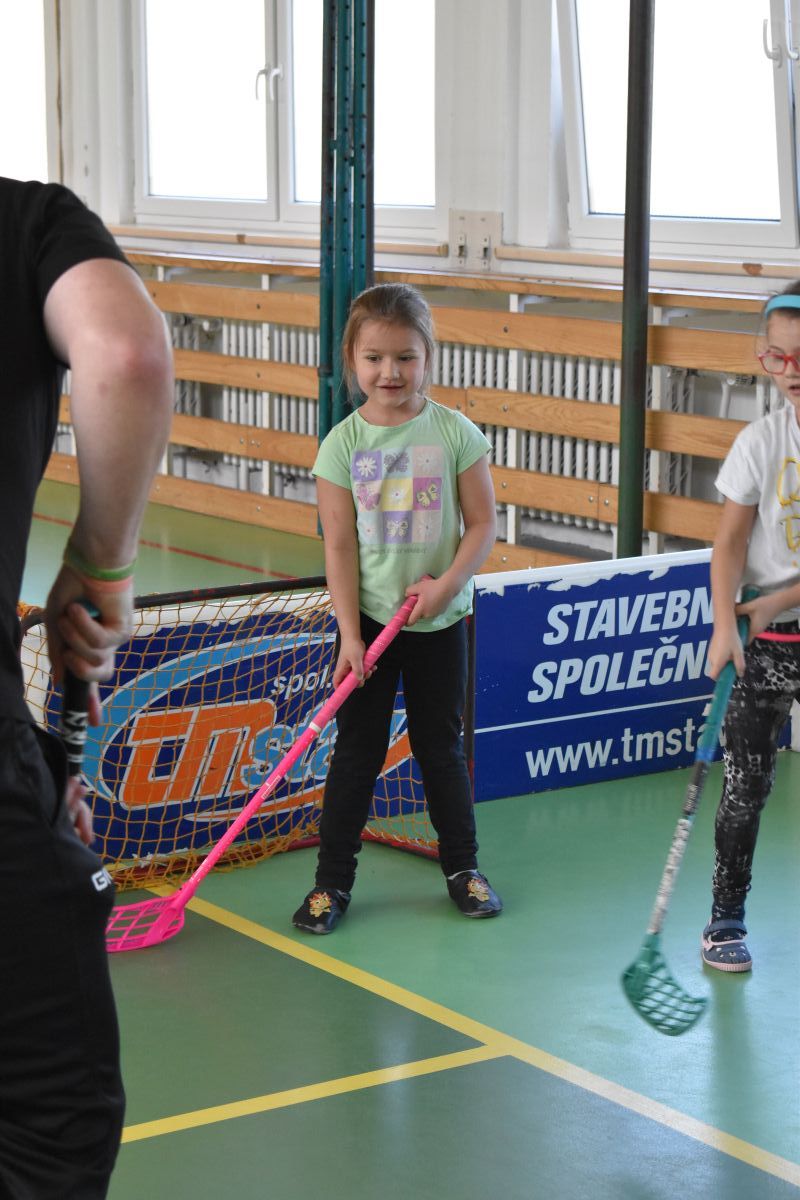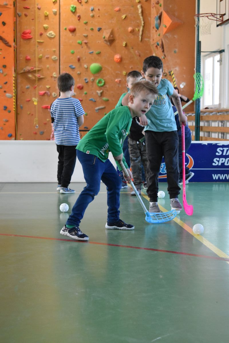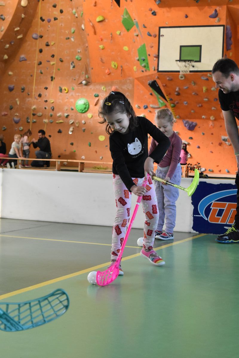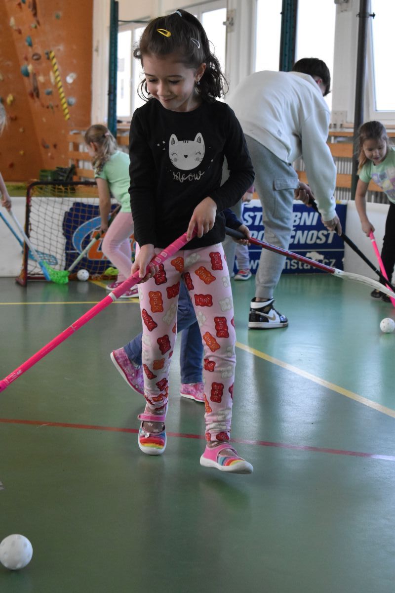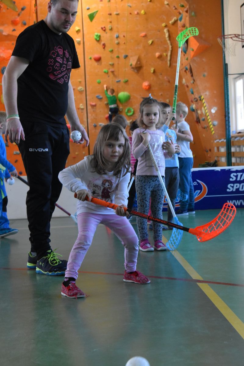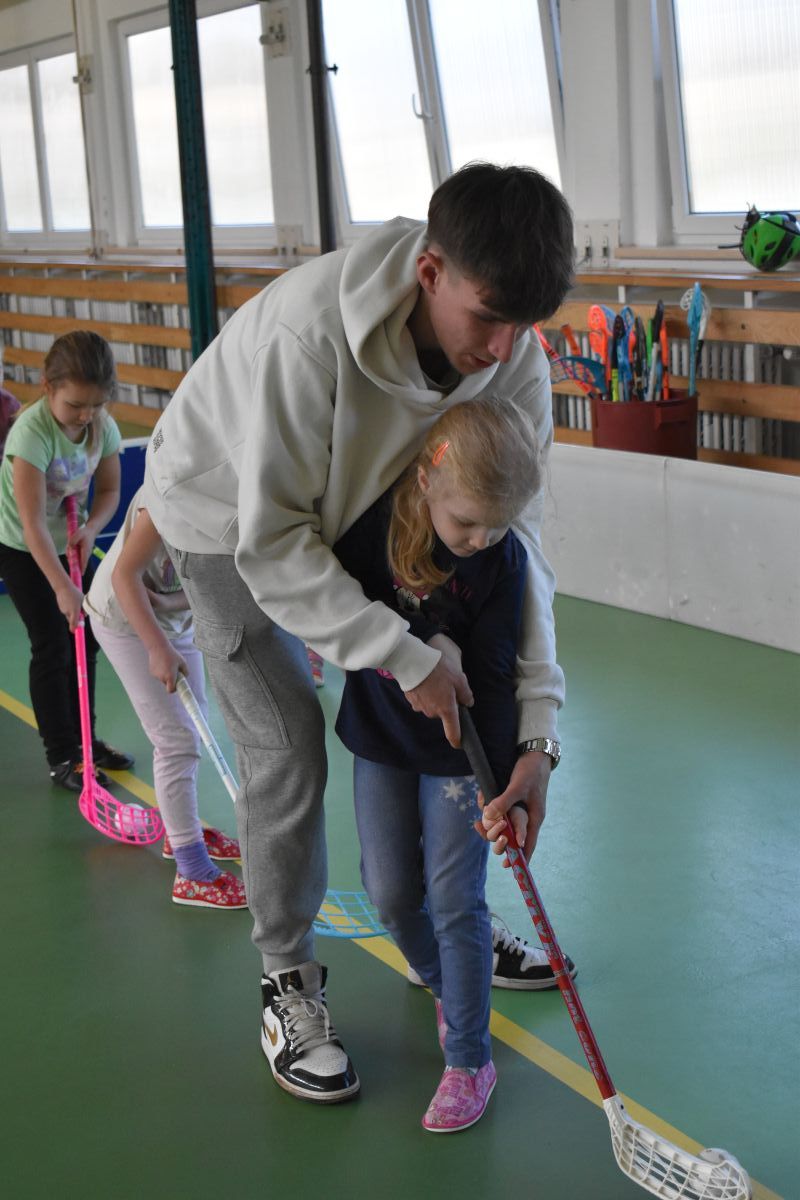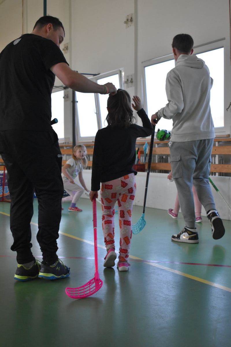 Ve středu 3.4. jsme s předškoláky ze sousední mateřské školy strávili bezva dopoledne plné sportu a legrace. Naši nejmenší si mohli vyzkoušet naši horolezeckou stěnu, florbal i pohybové soutěže s hokejovým trenérem. Nechyběl smích, potlesk ani sladká odměna na závěr.