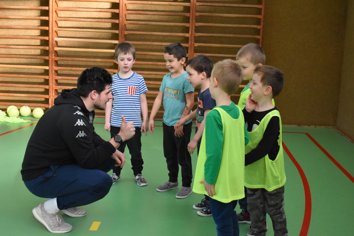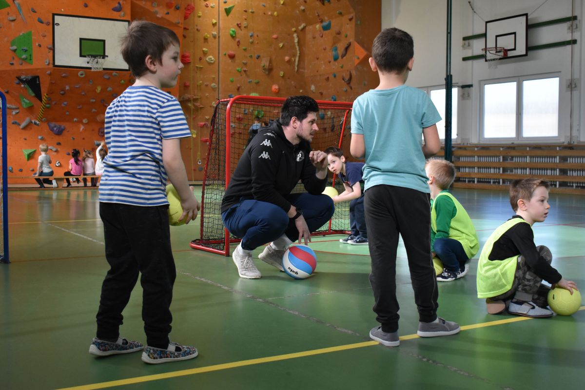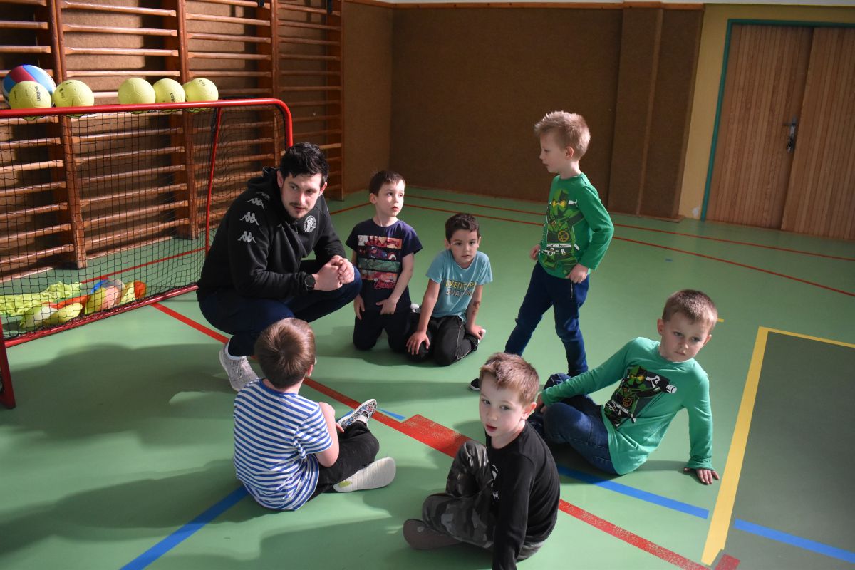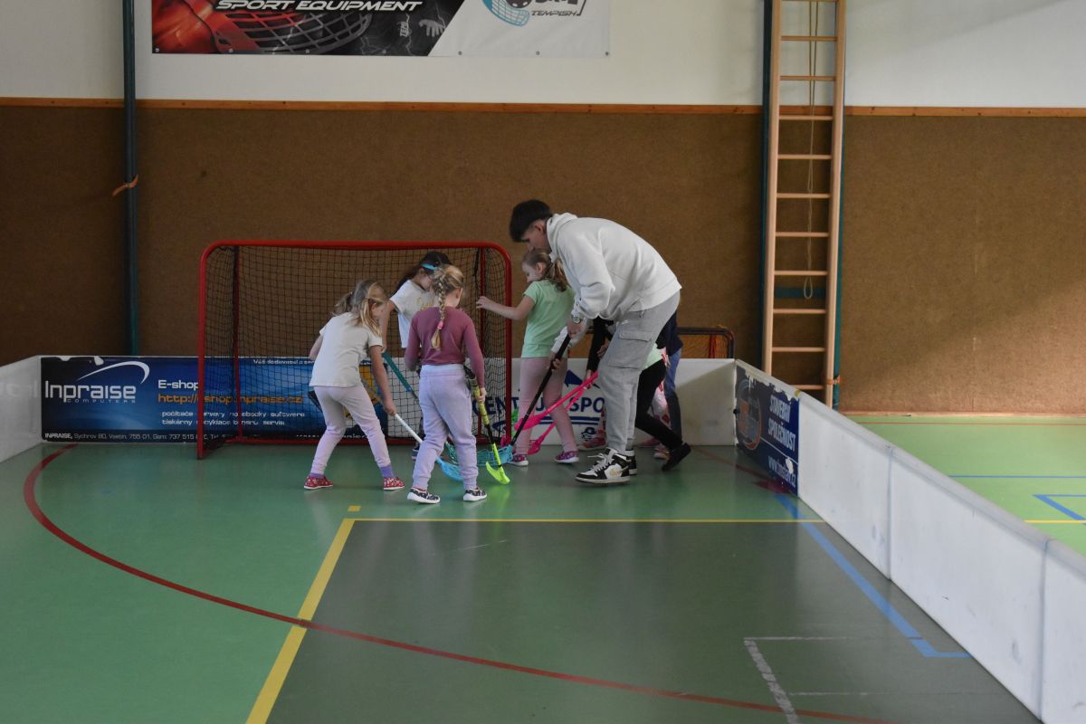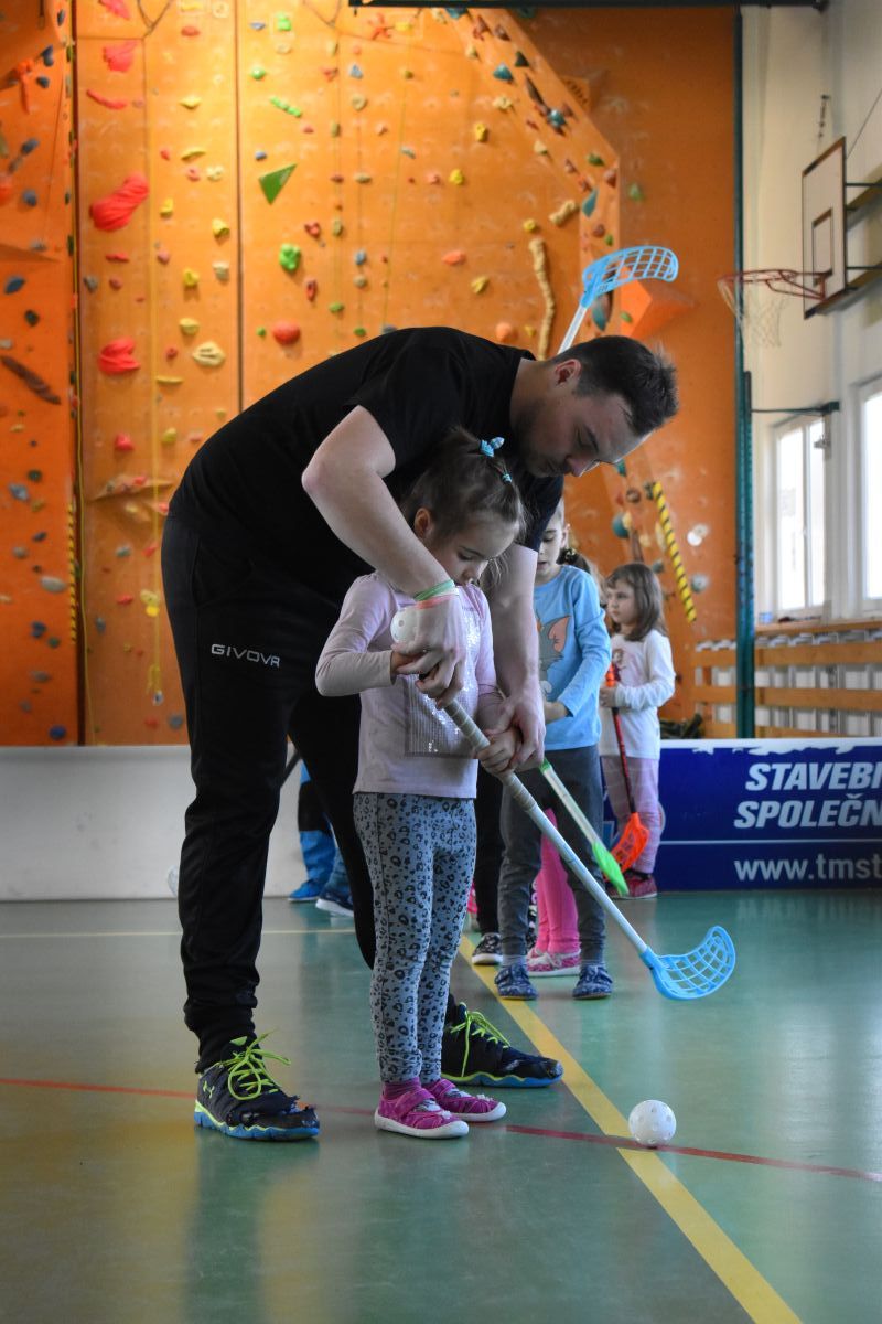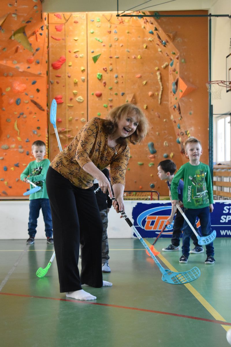 Ve středu 3.4. jsme s předškoláky ze sousední mateřské školy strávili bezva dopoledne plné sportu a legrace. Naši nejmenší si mohli vyzkoušet naši horolezeckou stěnu, florbal i pohybové soutěže s hokejovým trenérem. Nechyběl smích, potlesk ani sladká odměna na závěr.