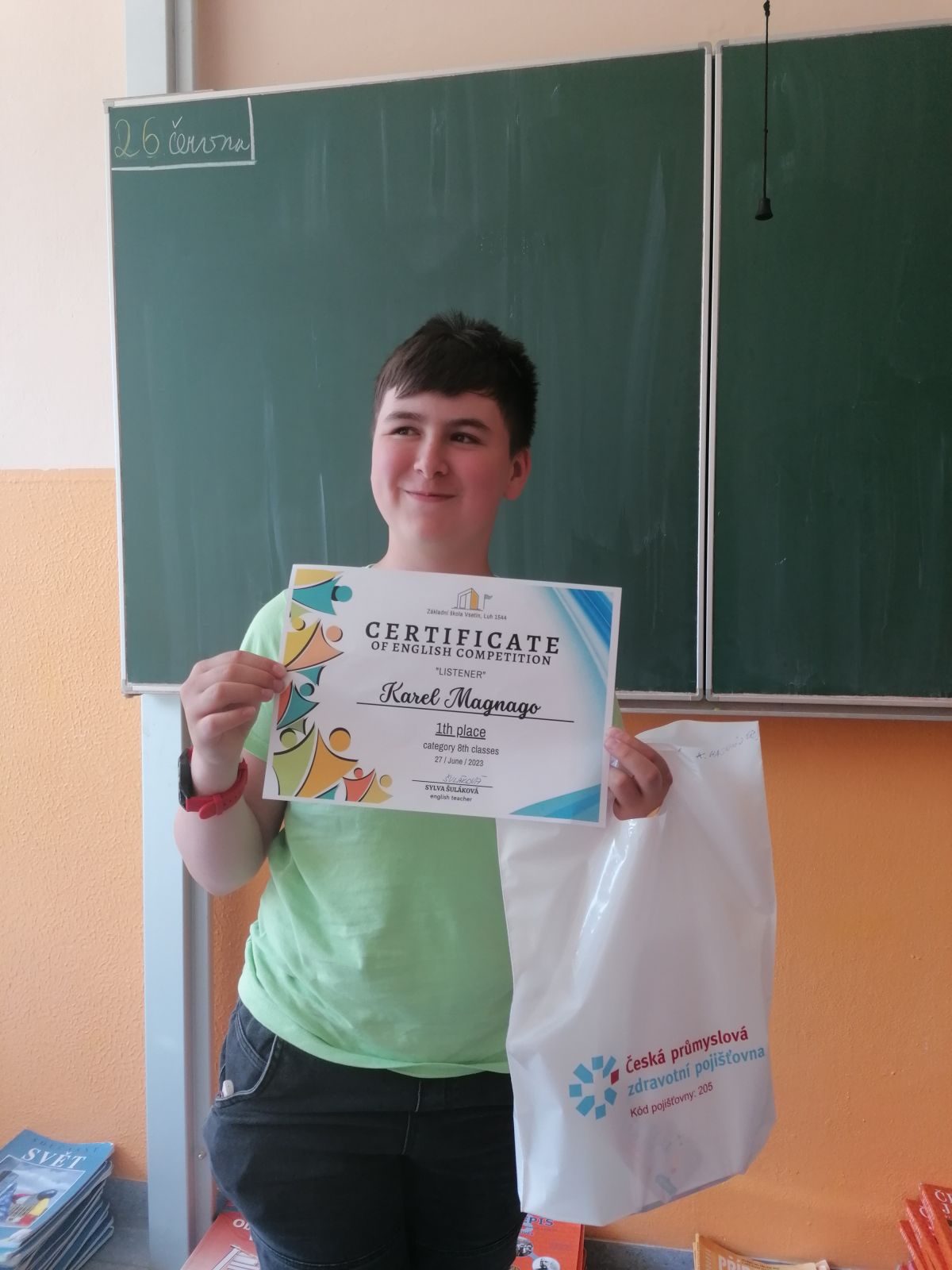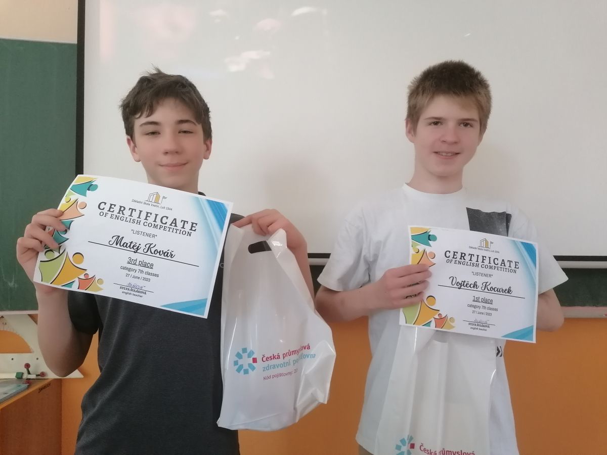 Na naší škole proběhla ve středu 21. 6. 2023 soutěž v anglickém jazyce „Listener“. Zúčastnili se jí žáci 5. až 9. ročníků naší školy, kteří měli zájem a chuť změřit si své síly se svými vrstevníky. Poslechli si videa z oblasti sportu, zpravodajství, umění a ekologie v USA a Velké Británii. Deváťáci si mohli vyzkoušet přímo maturitní poslechy.