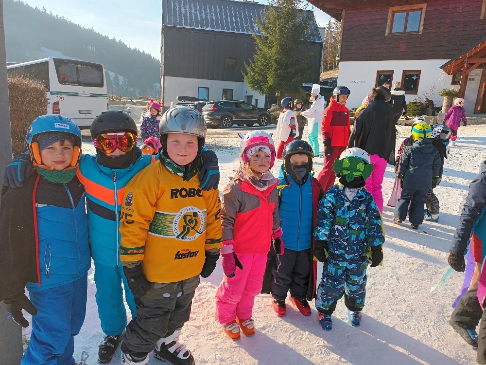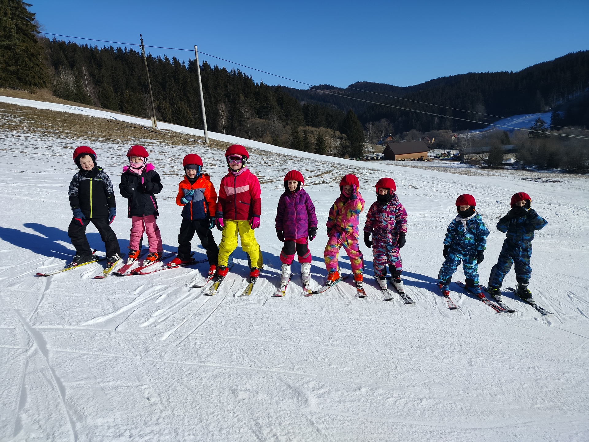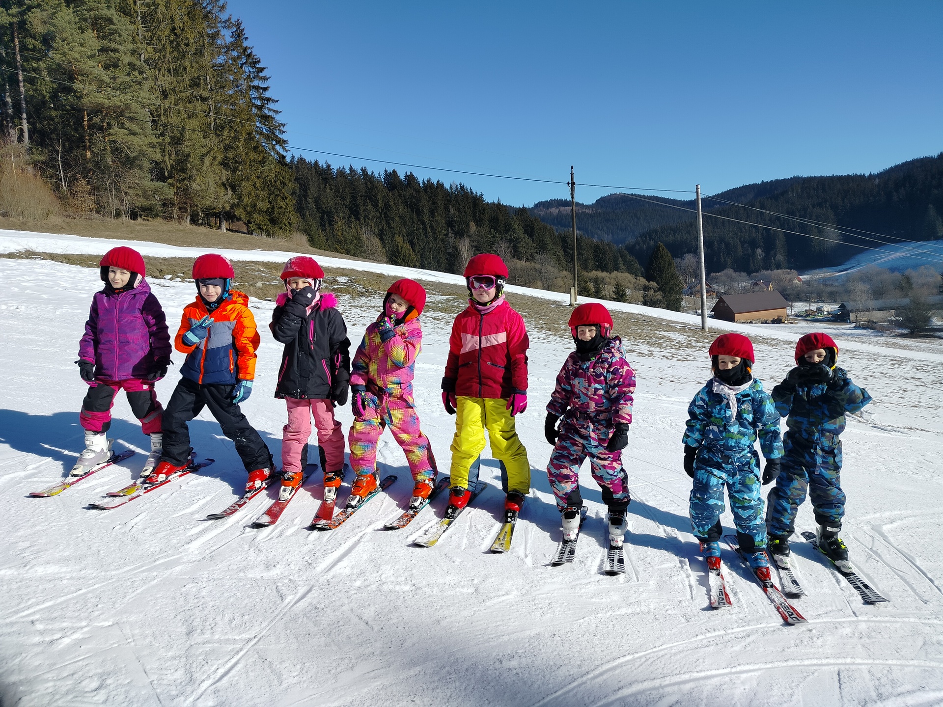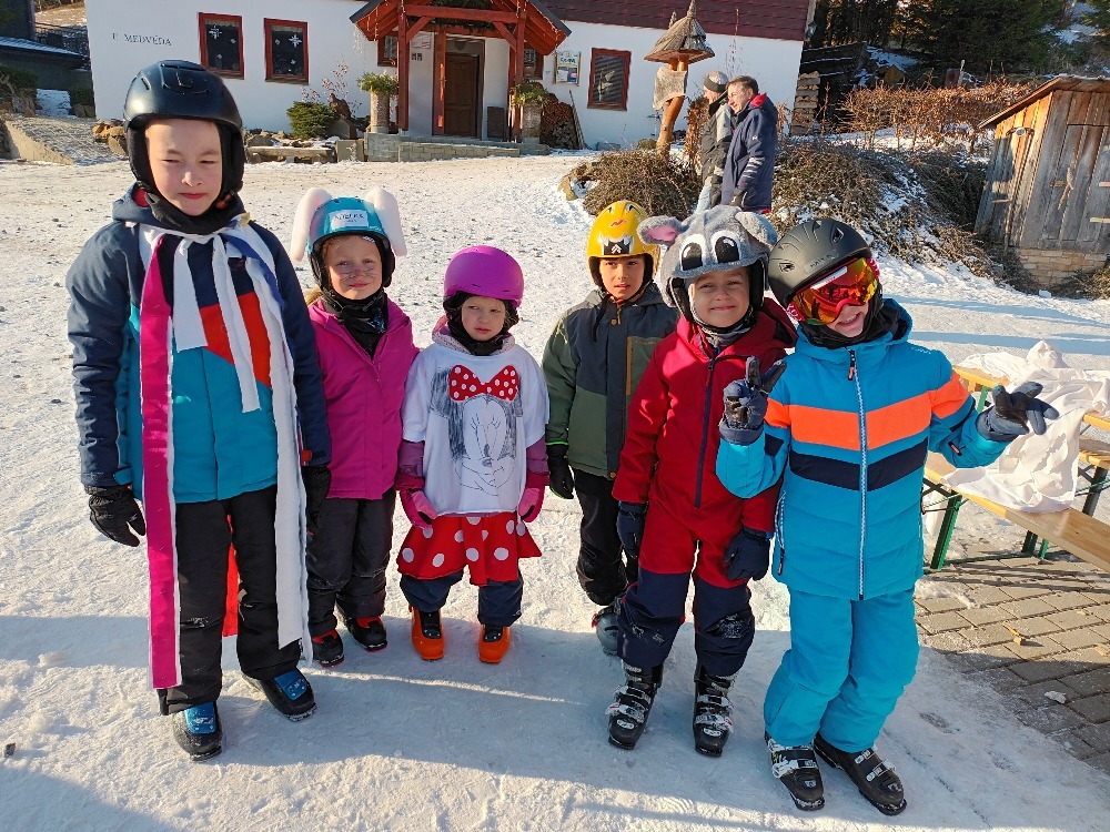 Krásný slunečný únorový týden prožili naši prvňáci a druháci na lyžáčku ve Velkých Karlovicích. Do skiareálu v Jezerném vyrazilo 39 malých lyžařů a lyžařek, aby se zdokonalilo ve svém lyžařském umění. Na konci týdne již suverénně brázdili sjezdovku i ti, co stáli na lyžích poprvé. Závěrečný karneval na lyžích a výborné borůvkové knedlíky v penzionu U medvěda byly již jen třešničkou na dortu vydařeného lyžařského kurzu. Jsme rádi, že si všichni užili spoustu legrace se svými kamarády, něco nového se naučili a domů se vraceli spokojeni a s úsměvem na tváři. Instruktoři ZŠ Vsetín Luh