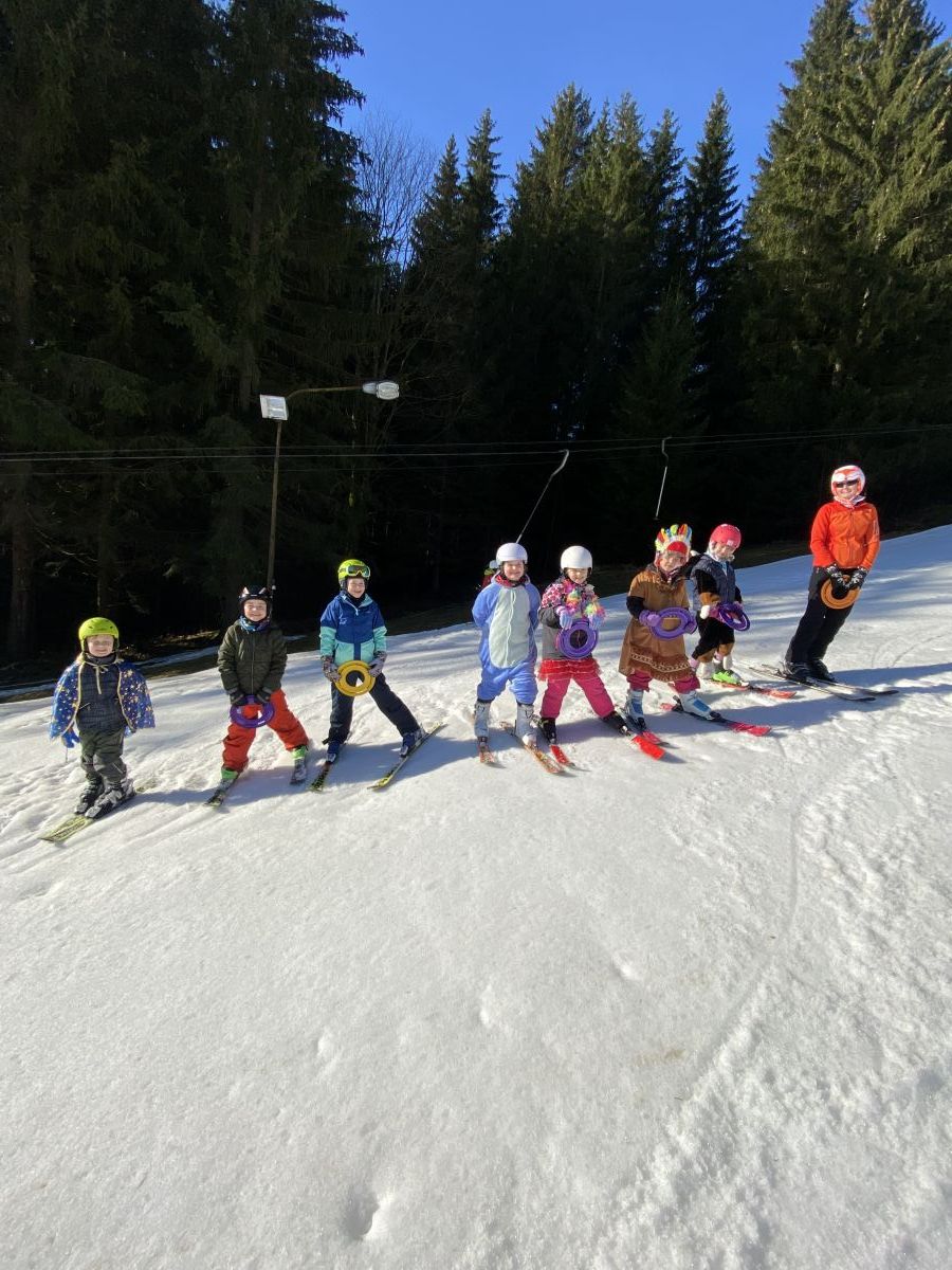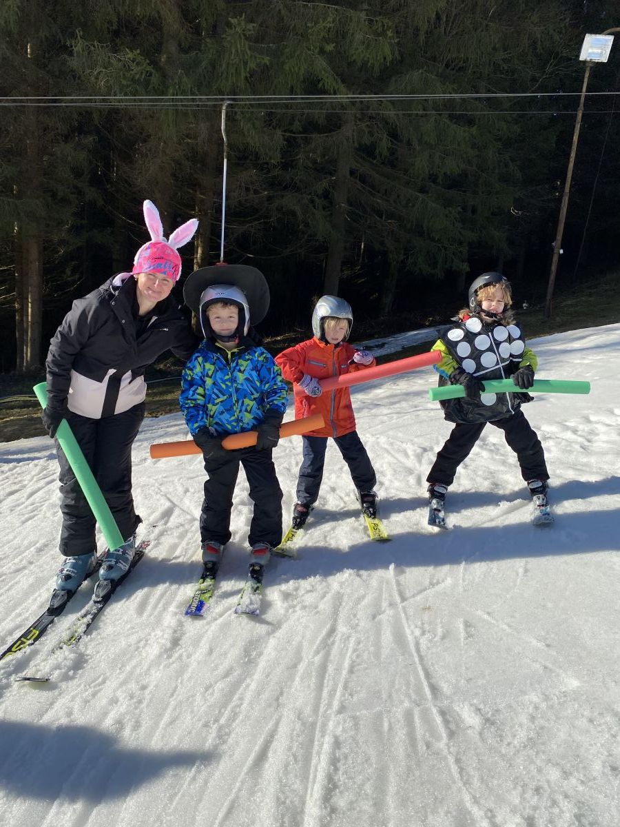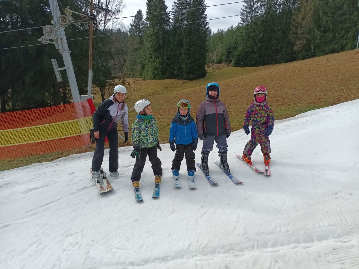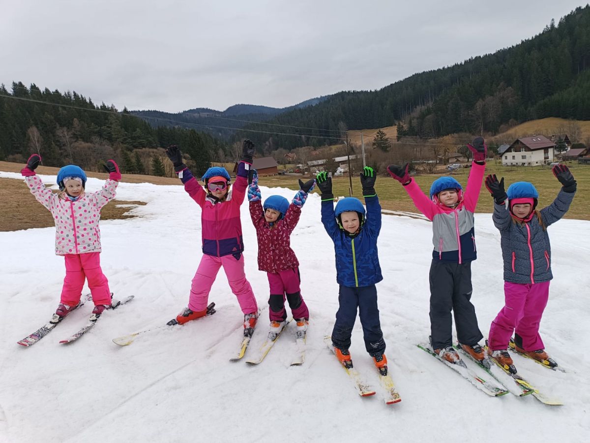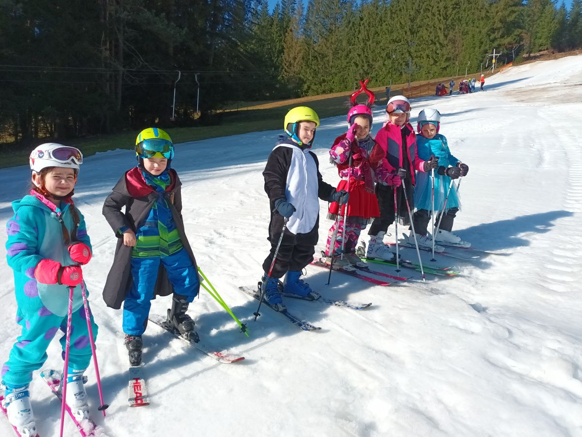 Do Karlovic jsme přijeli s dobrou náladou a ta nás provázela celou dobu kurzu. Děti lyžovaly s radostí a nadšením. Dělaly pokroky. Každý den nás čekala v penzionu výborná svačinka, na kterou se všichni lyžaři moc těšili. Počasí přálo a sníh na svahu vydržel! A poslední den? Karneval!