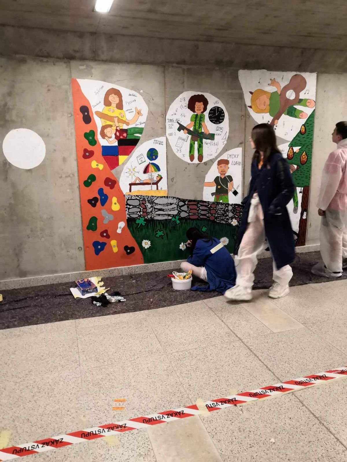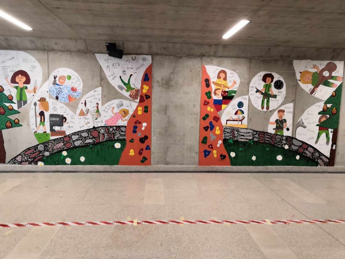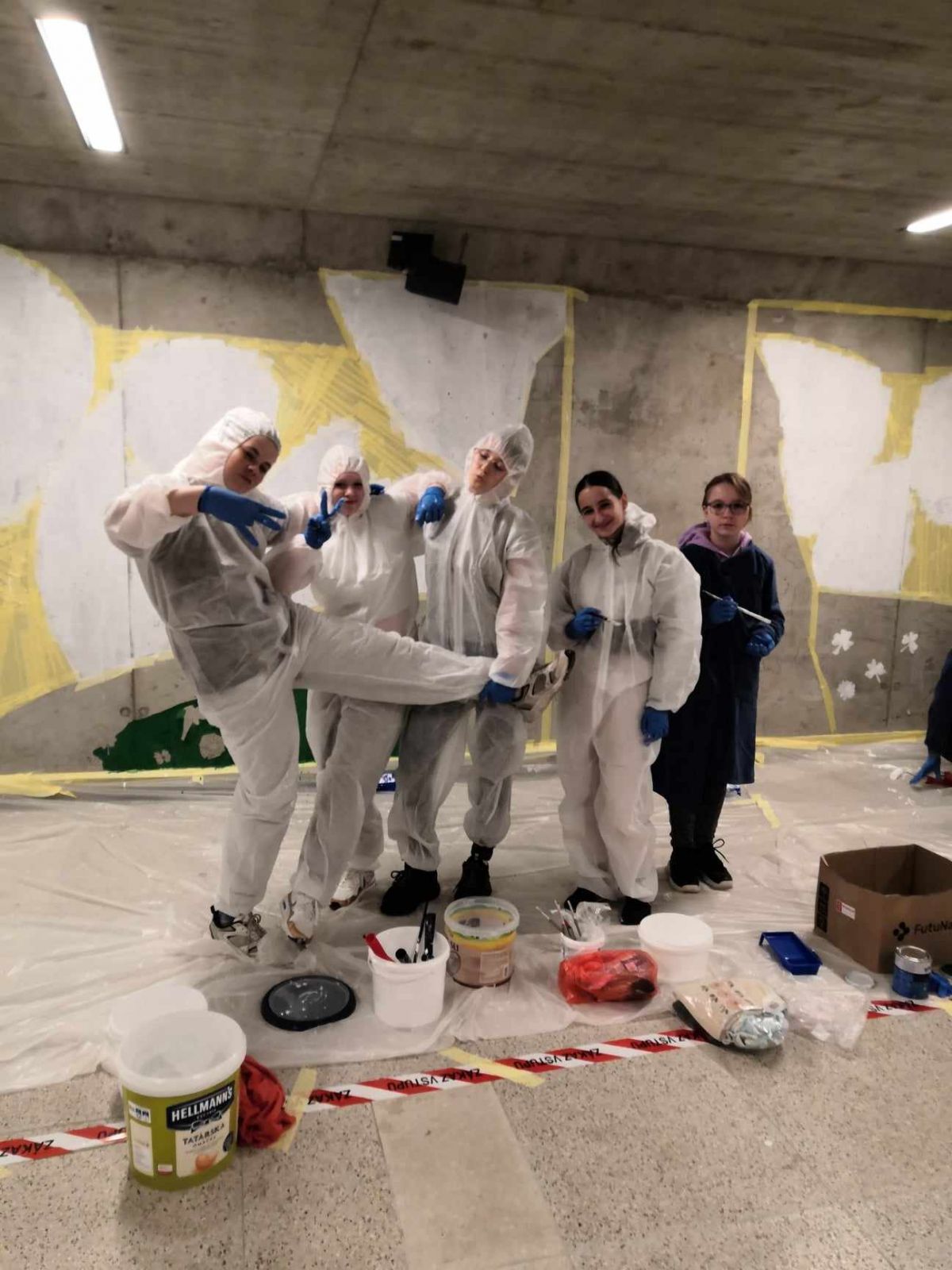 Protože nás tlačil čas, vyřešily se nezbytné technické záležitosti, nakoupily se barvy, štětce a vzhůru (vlastně dolů) do podchodu!