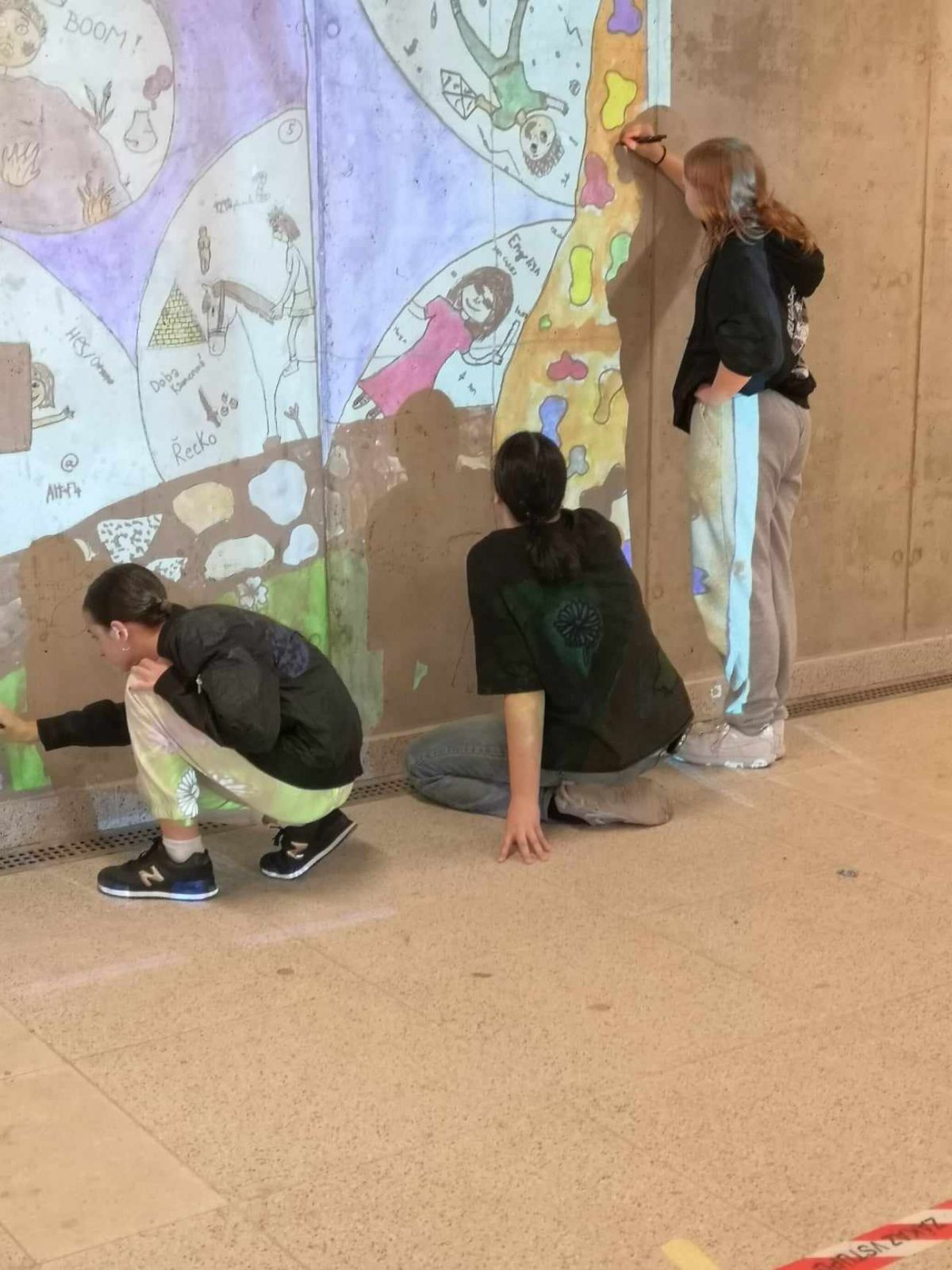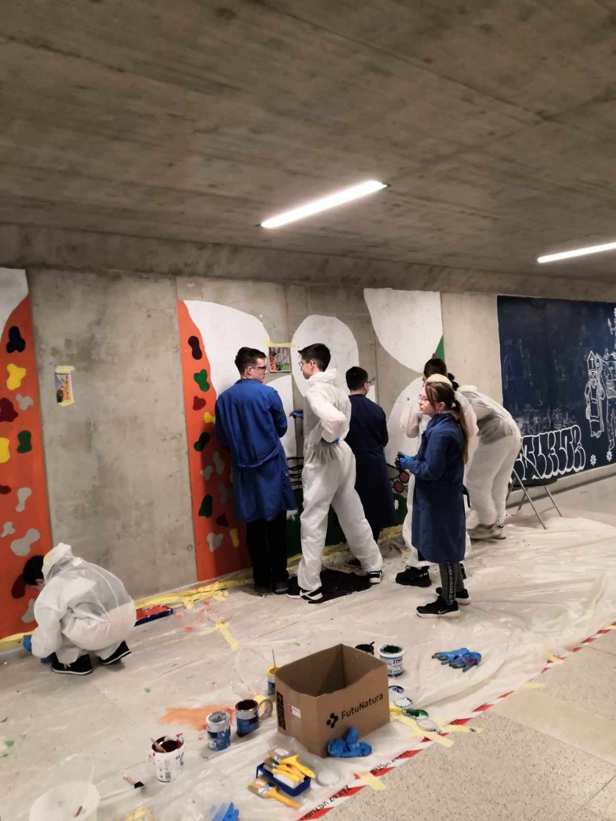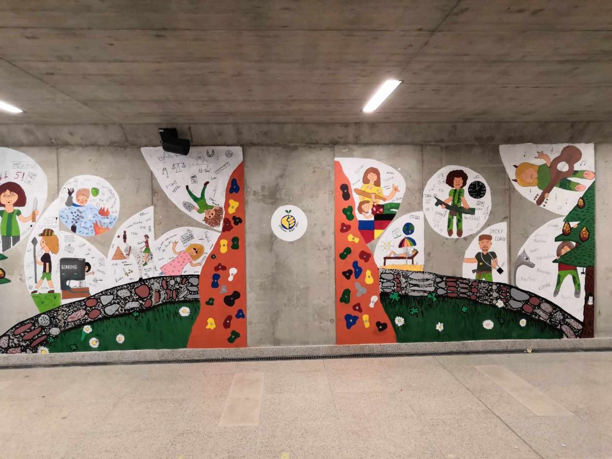 Protože nás tlačil čas, vyřešily se nezbytné technické záležitosti, nakoupily se barvy, štětce a vzhůru (vlastně dolů) do podchodu!
