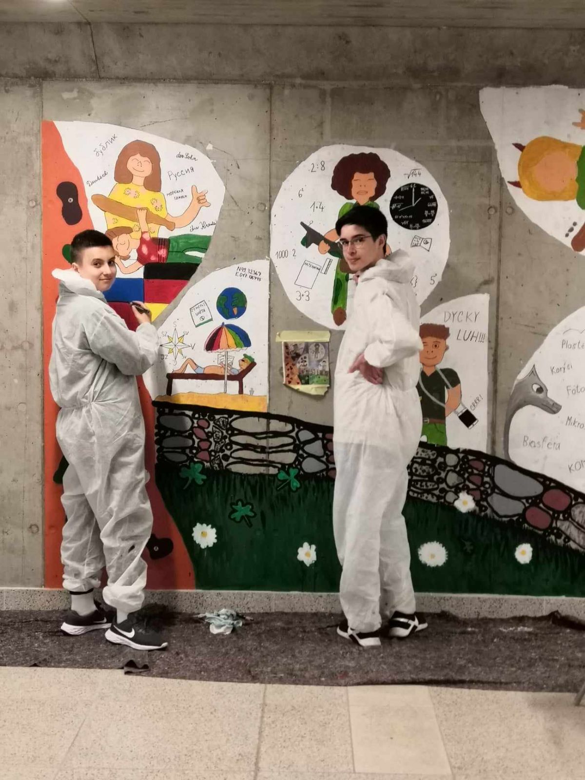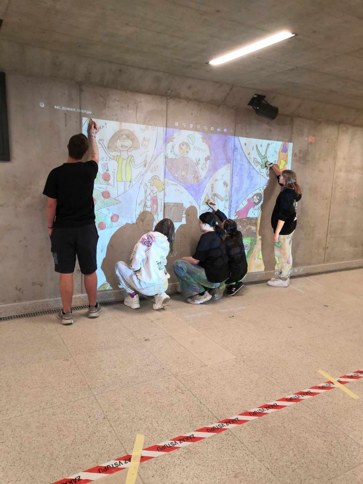 Jak se nám při realizaci námětu dařilo, můžete si prohlédnout ve fotografické reportáži v galerii. Ale určitě se do podchodu zajděte podívat. Prohlédněte si celou galerii na betonovém podkladu. Naše ojedinělé originální dílo jistě nepřehlédnete, možná se u něj zasmějete, pobavíte, třeba i něco přiučíte. ![]()
