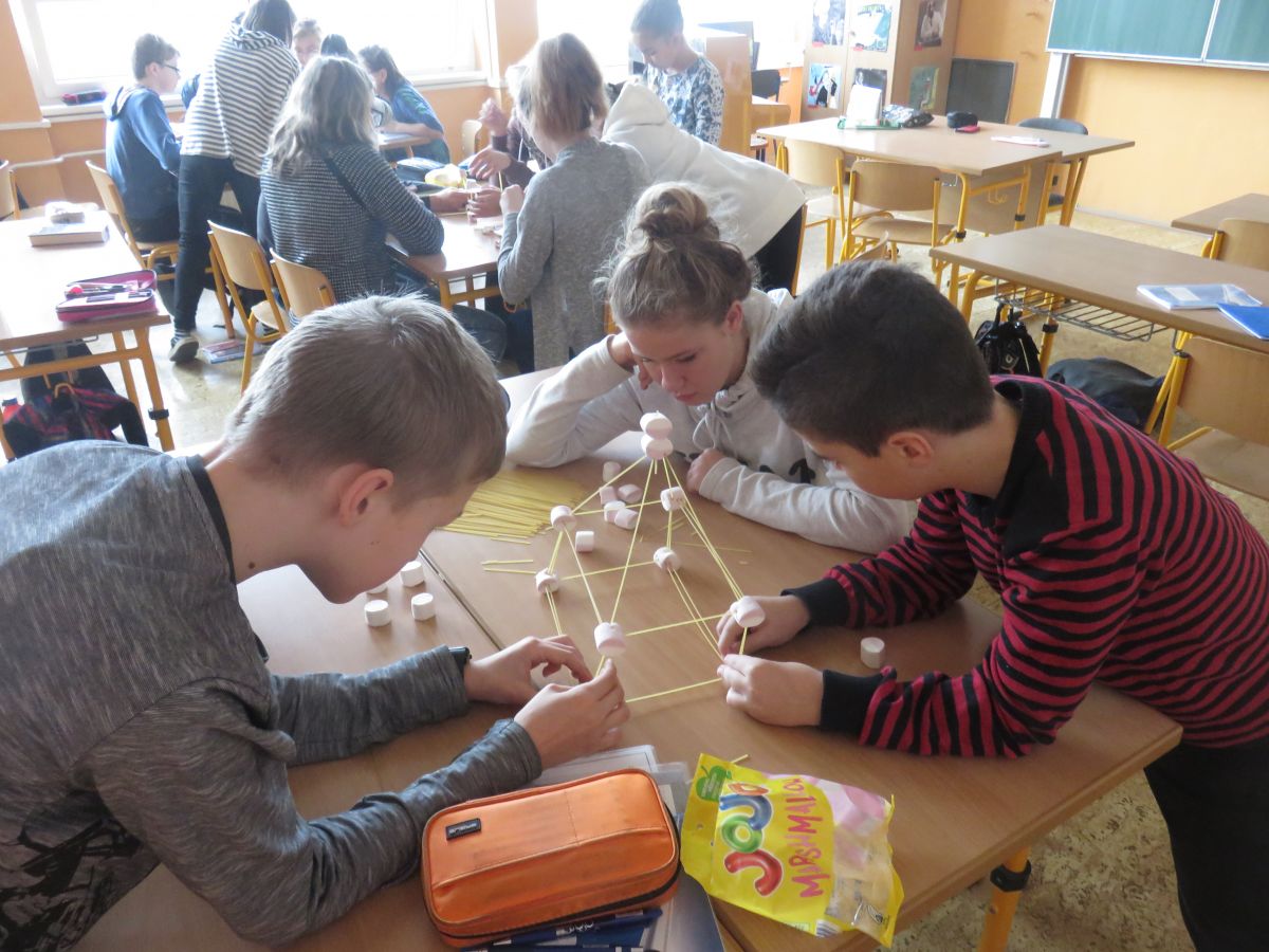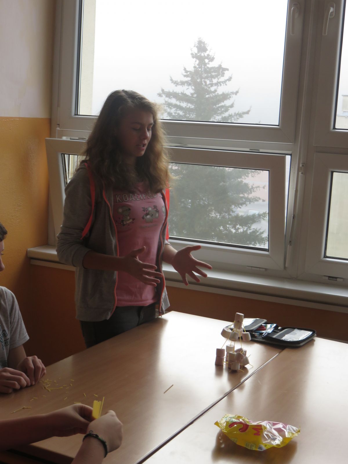 Na celou stavbu měli žáci 20 min, poté následovala 1–2minutová prezentace každého domečku a závěrečné zhodnocení. Všem se hodina velmi líbila a žáci si odnesli „maršmelounové“ jedničky.