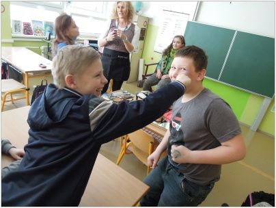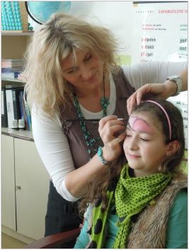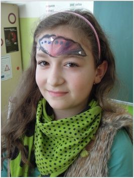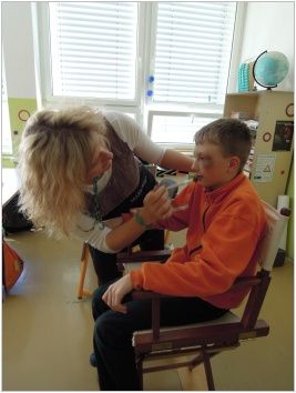 Jako takovou třešinku na dortu jsme měli možnost vyzkoušet si na vlastní kůži, jak se takový herec cítí, jak dlouho trvá líčení a některým dokonce paní maskérka vykouzlila na tváři nádherné ornamenty, motýly, ale klukům i modřiny, podlitiny a jiné kreace. To se maminky divily, když přišli domů.:-)