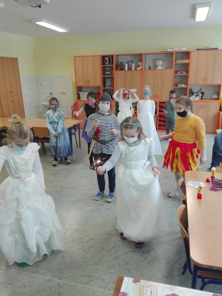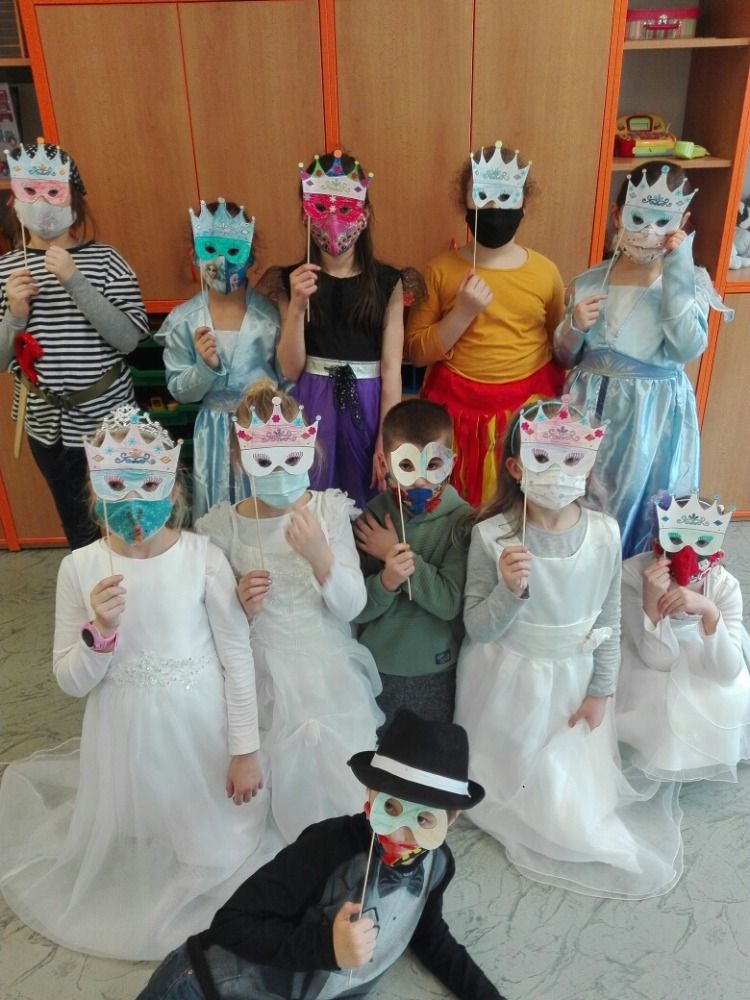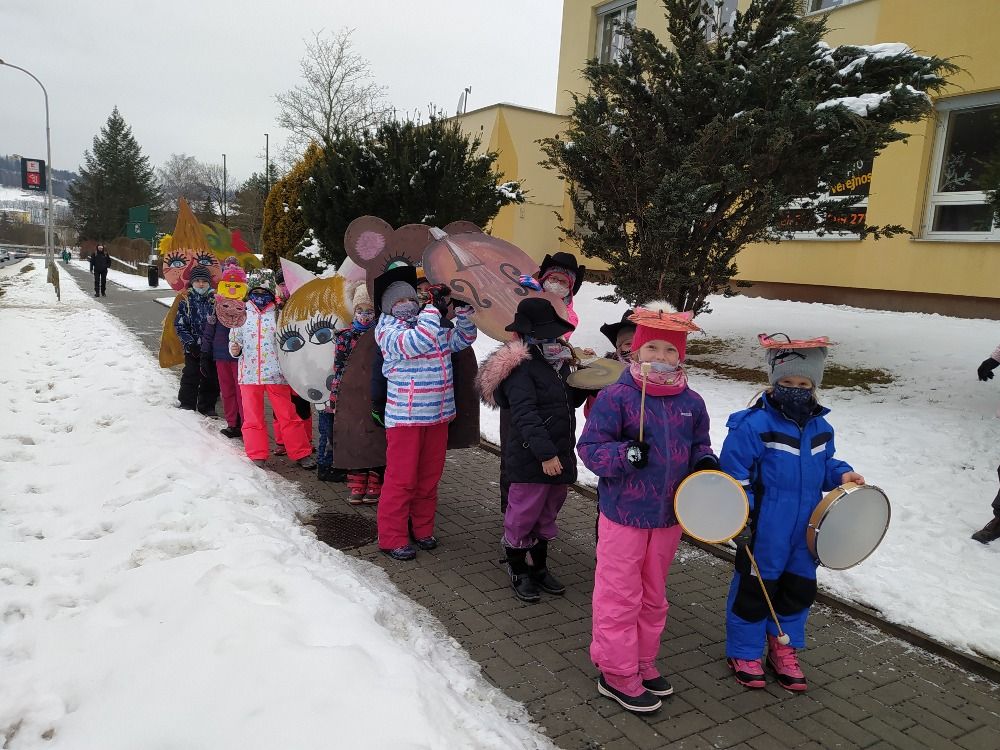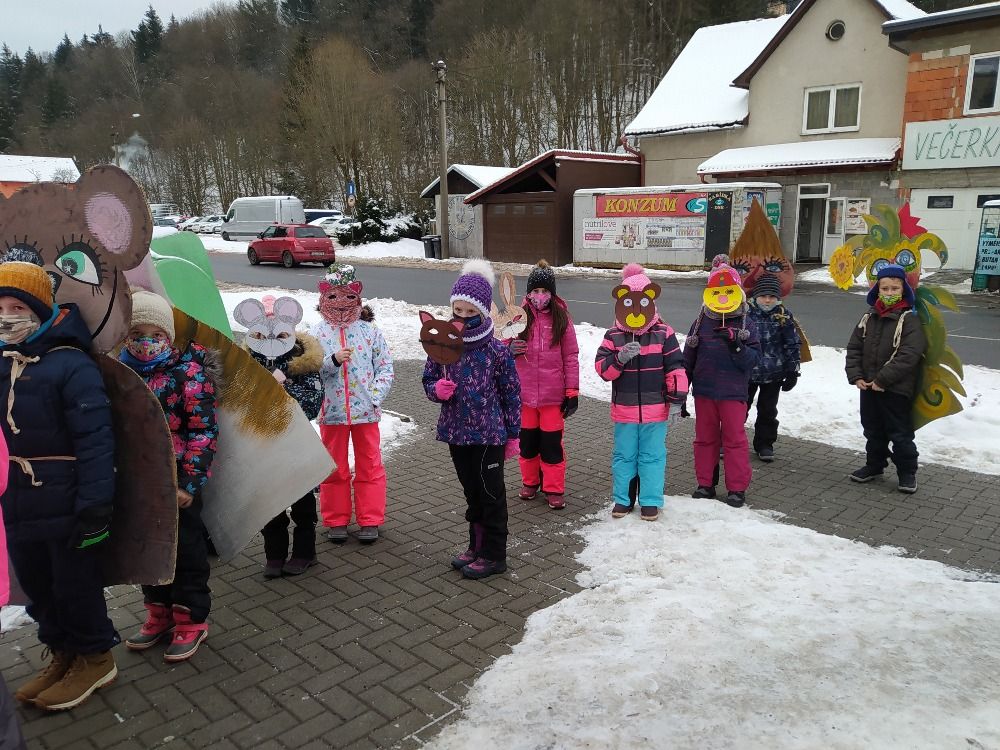V masopustním týdnu školní družiny si užívaly děti tvoření a masopustního průvodu.