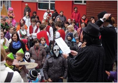 Celá slavnost byla přístupná veřejnosti a začala kolem 14. hodiny. Pro rodiče a děti byl připravený bohatý program ve formě občerstvení a her. Na hřišti bylo 8 stanovišť s masopustní tematikou. Děti si například mohly vyzkoušet hod jitrnicí na cíl, rozkládání a skládání mlýnku na maso nebo hod míčkem do medvědí tlamy. Po ukončení soutěží jsme se vydali na masopustní průvod, který začal kolem 16. hodiny. Šli jsme od naší školy k místní knihovně, kde došlo k pohřbení basy a tím k ukončení celé této slavnosti.