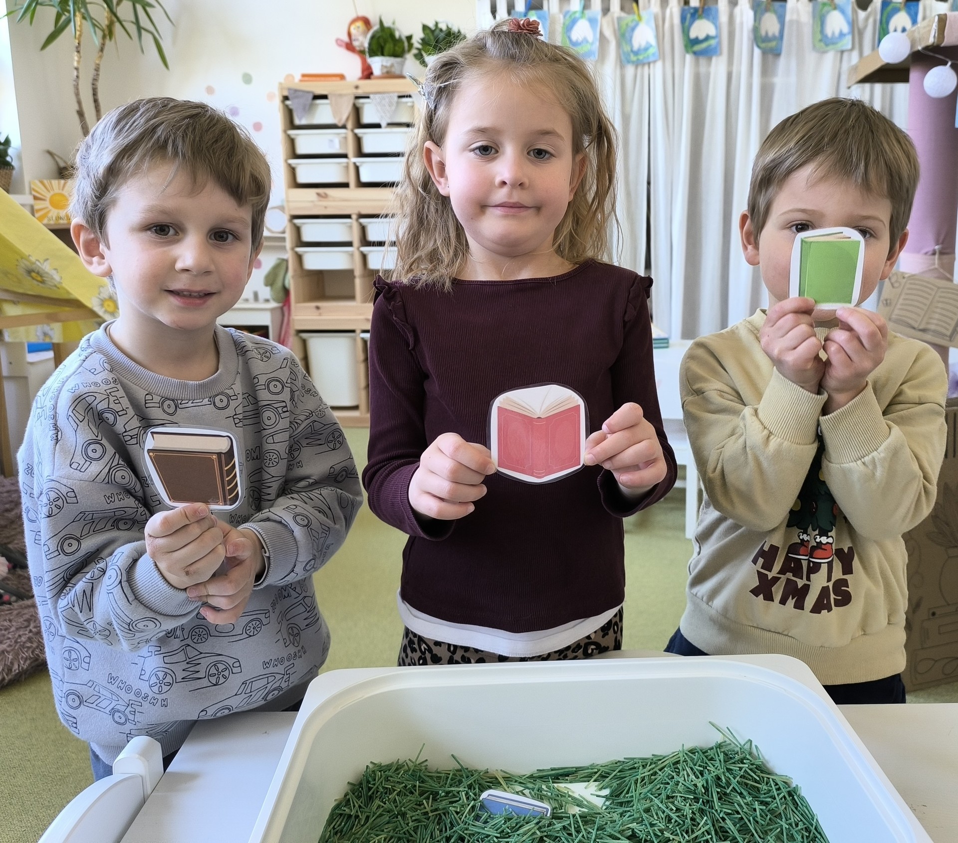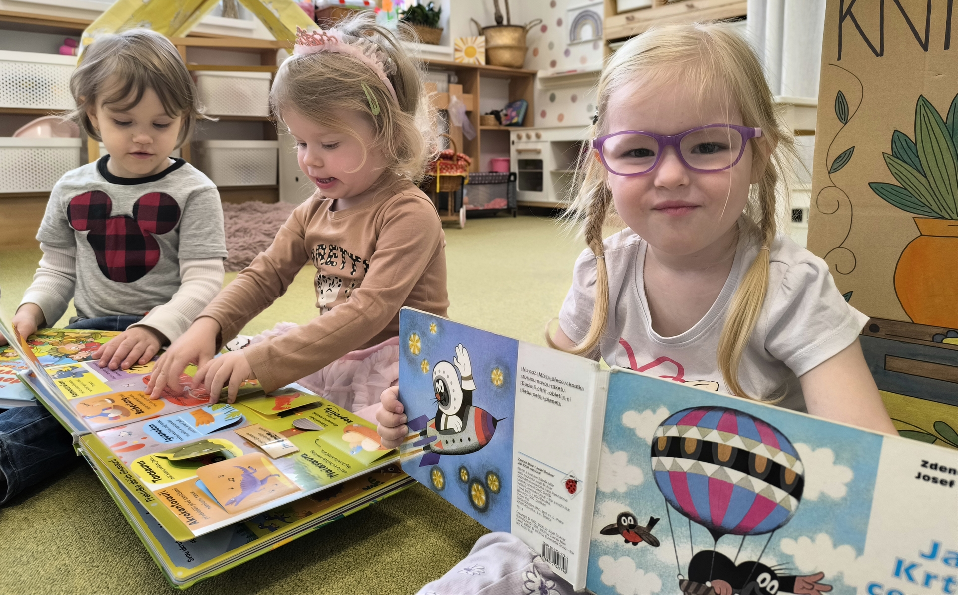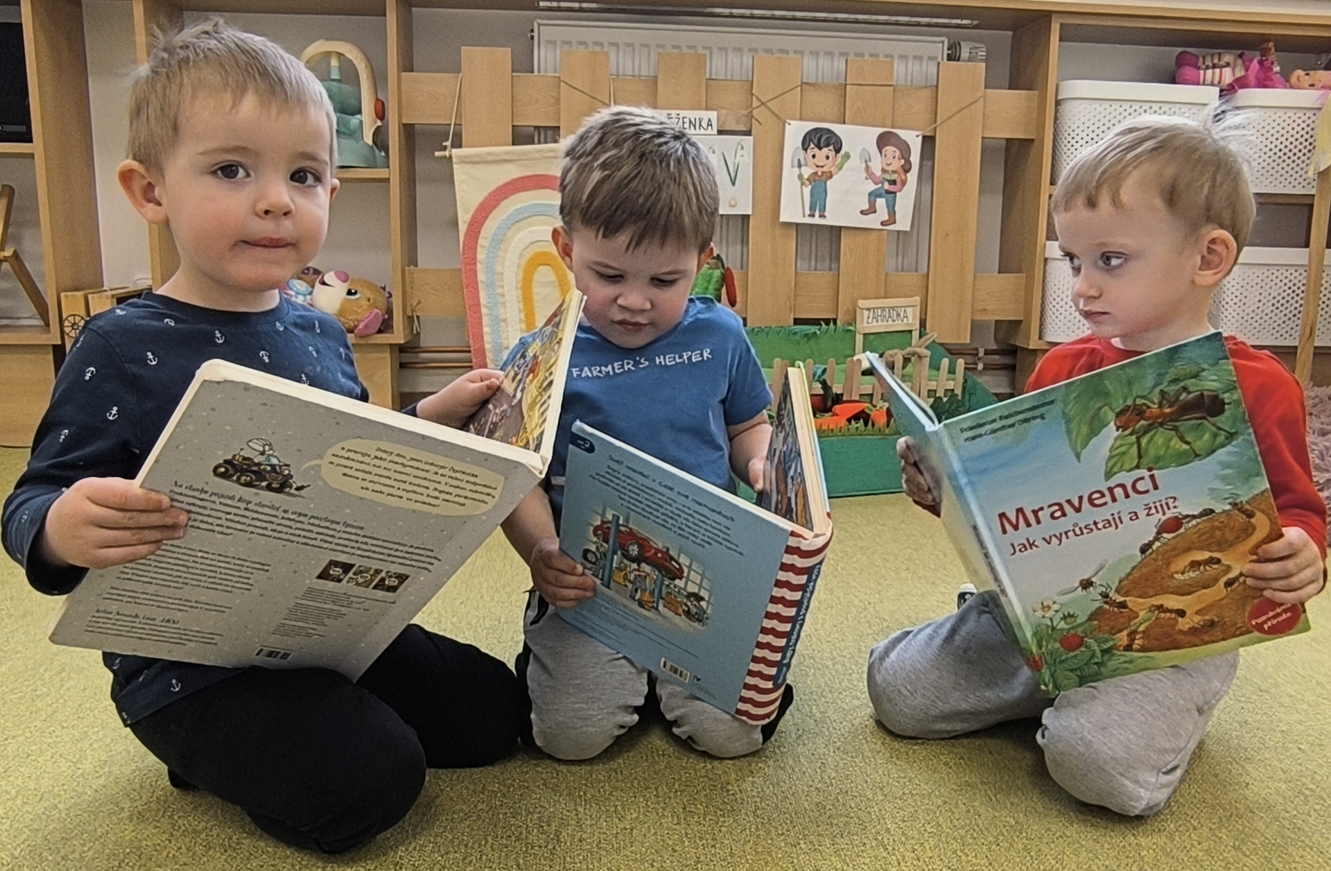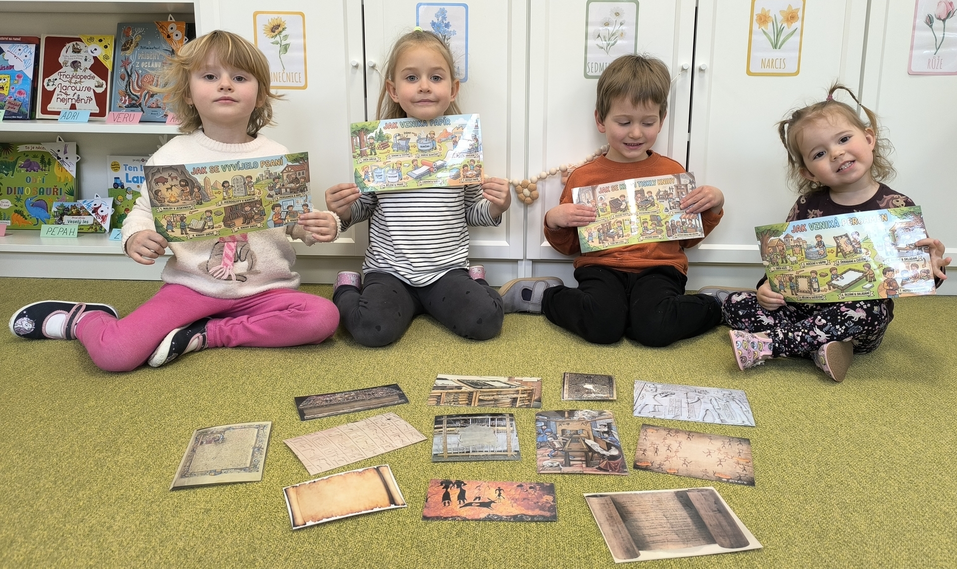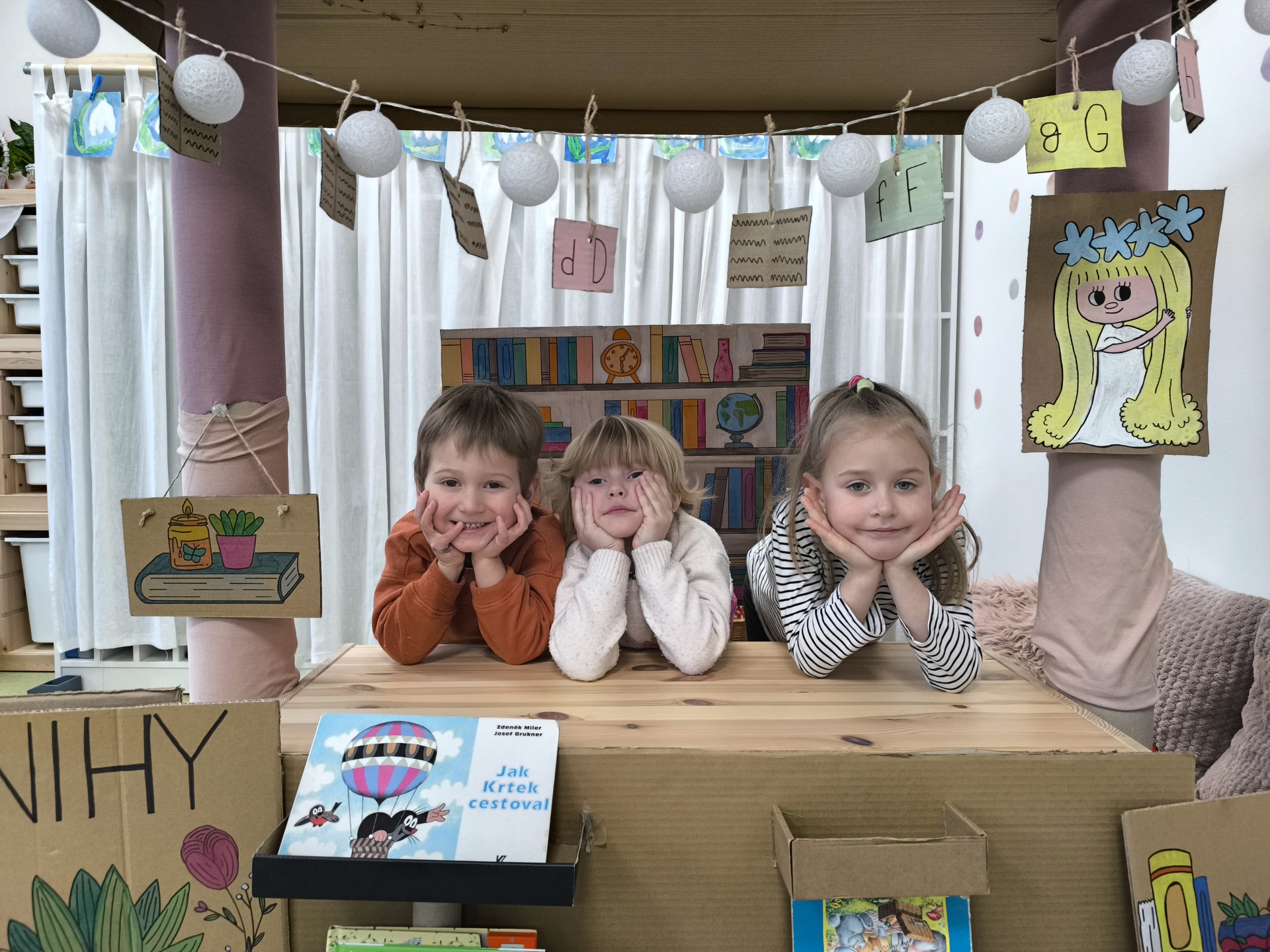 Během měsíce března jsme se věnovali tématu knih a čtení. Děti si přinesly své oblíbené knížky, sdílely zážitky z příběhů a společně jsme si četli pohádky. Nechyběly ani tvořivé aktivity, jako byla výroba papíru nebo vlastních záložek. Děti si tak hravou formou rozvíjely fantazii, slovní zásobu i vztah ke knihám.