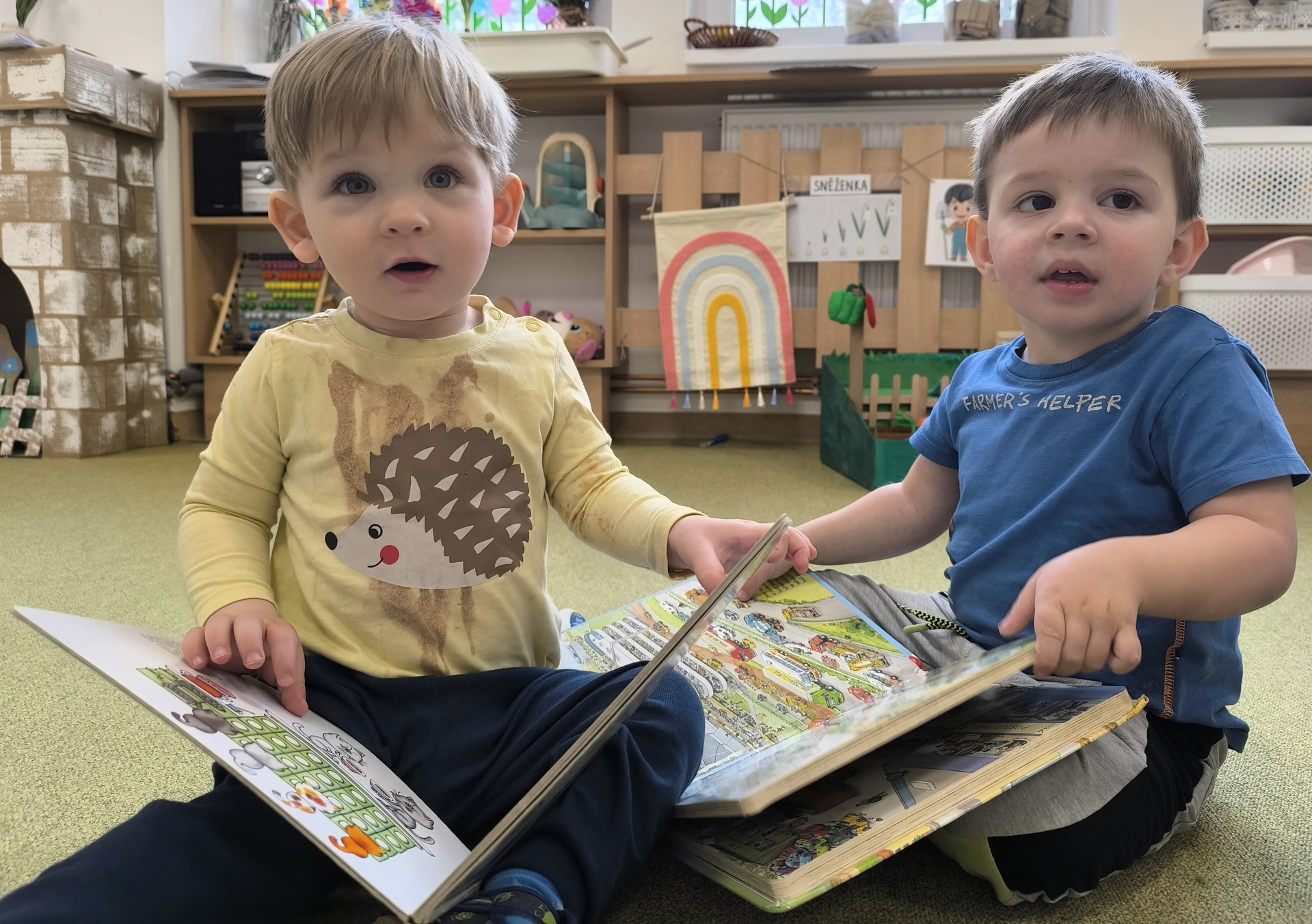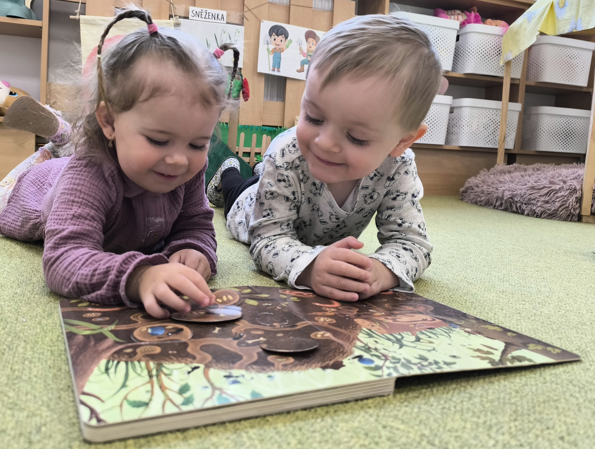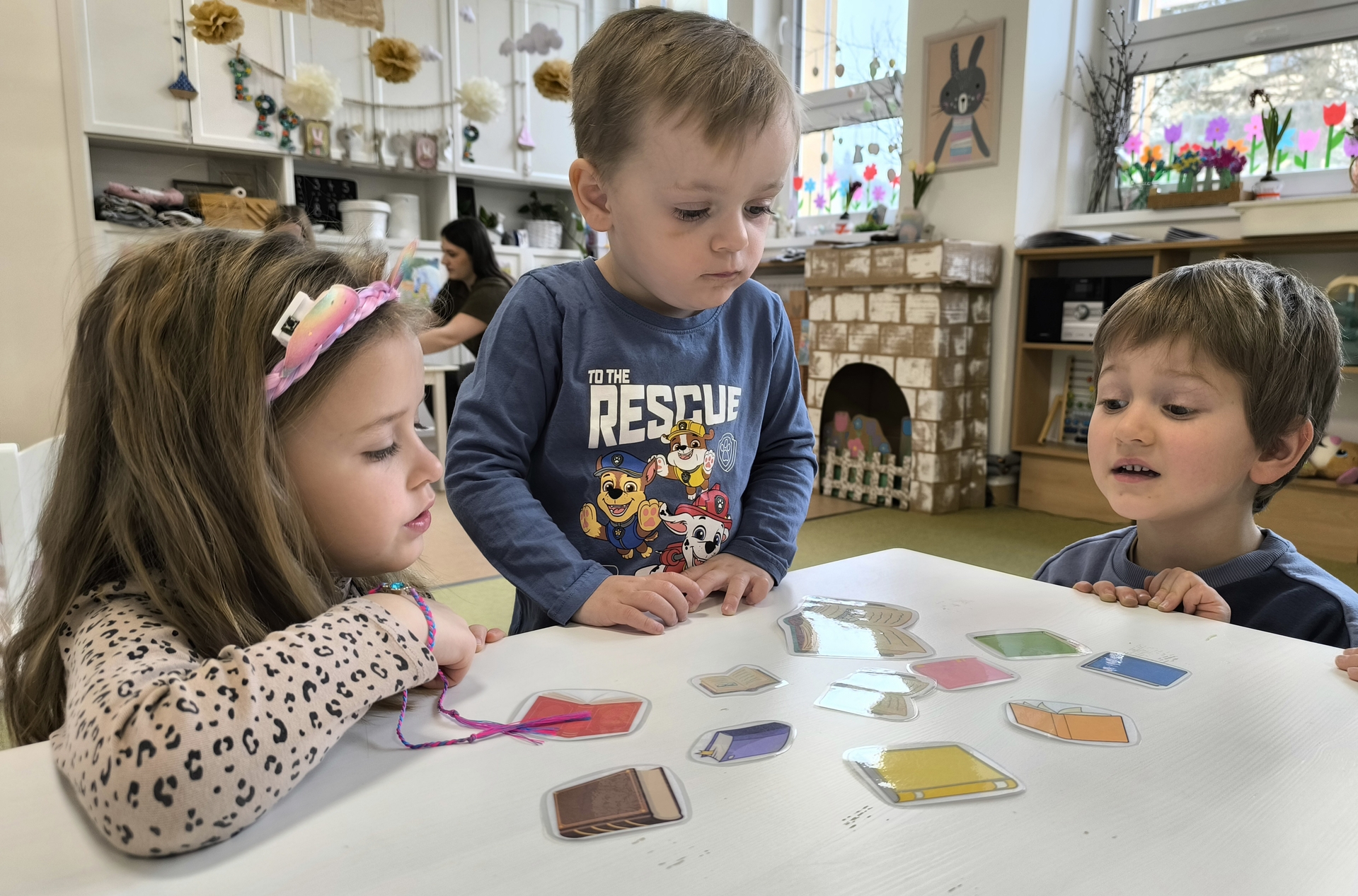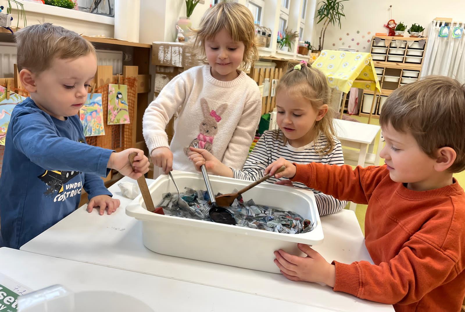 Během měsíce března jsme se věnovali tématu knih a čtení. Děti si přinesly své oblíbené knížky, sdílely zážitky z příběhů a společně jsme si četli pohádky. Nechyběly ani tvořivé aktivity, jako byla výroba papíru nebo vlastních záložek. Děti si tak hravou formou rozvíjely fantazii, slovní zásobu i vztah ke knihám.