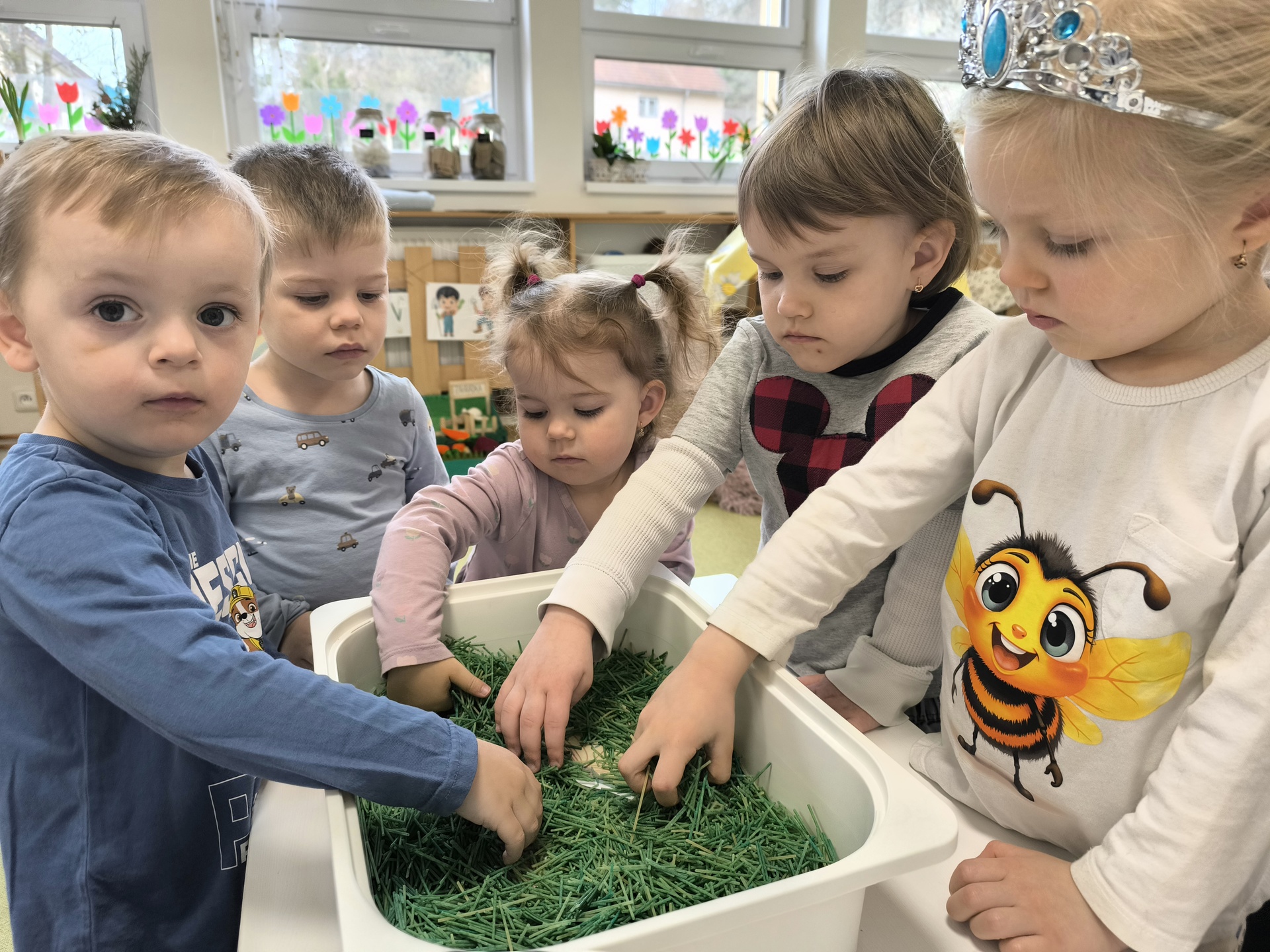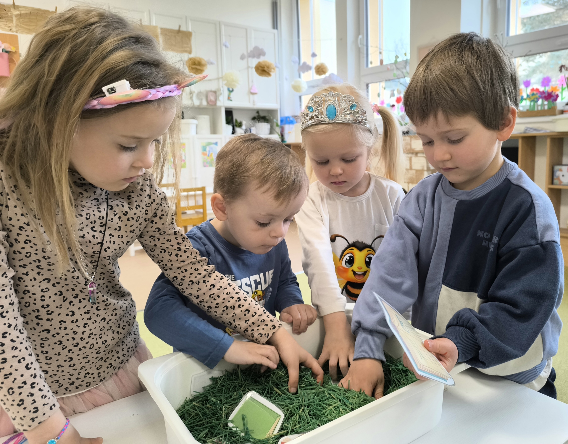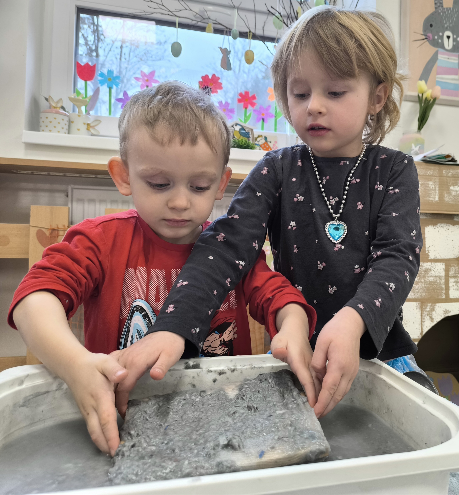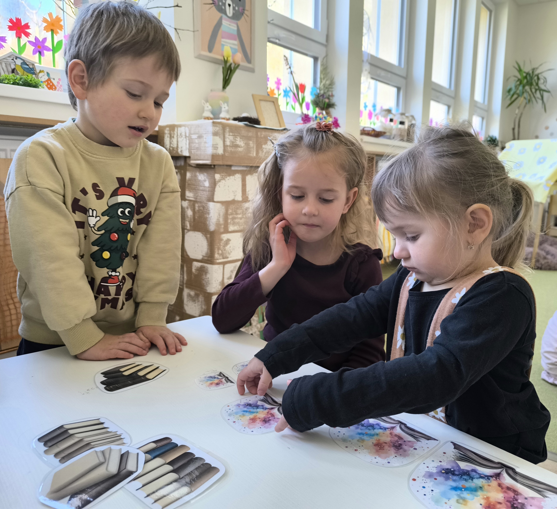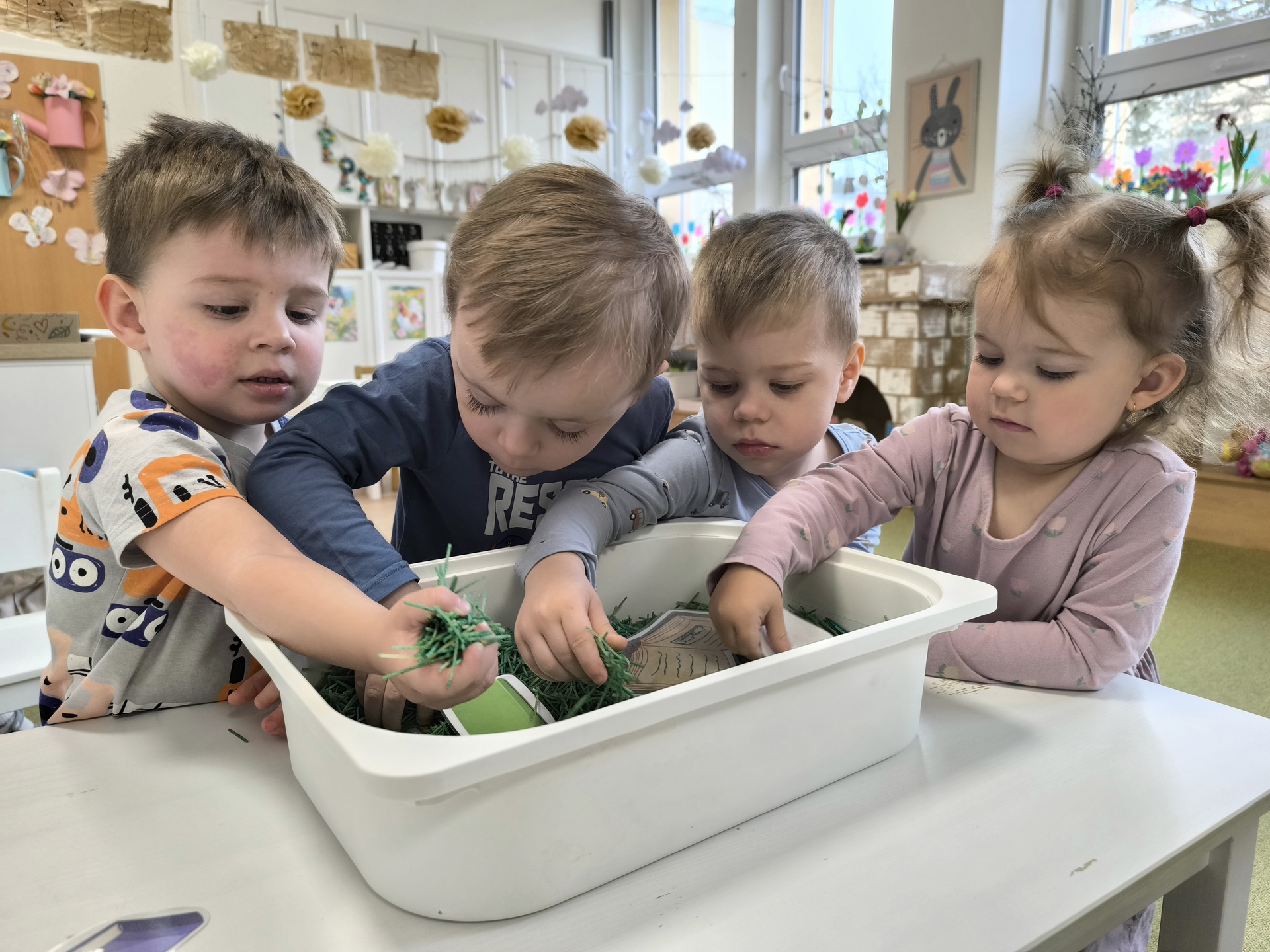 Během měsíce března jsme se věnovali tématu knih a čtení. Děti si přinesly své oblíbené knížky, sdílely zážitky z příběhů a společně jsme si četli pohádky. Nechyběly ani tvořivé aktivity, jako byla výroba papíru nebo vlastních záložek. Děti si tak hravou formou rozvíjely fantazii, slovní zásobu i vztah ke knihám.
