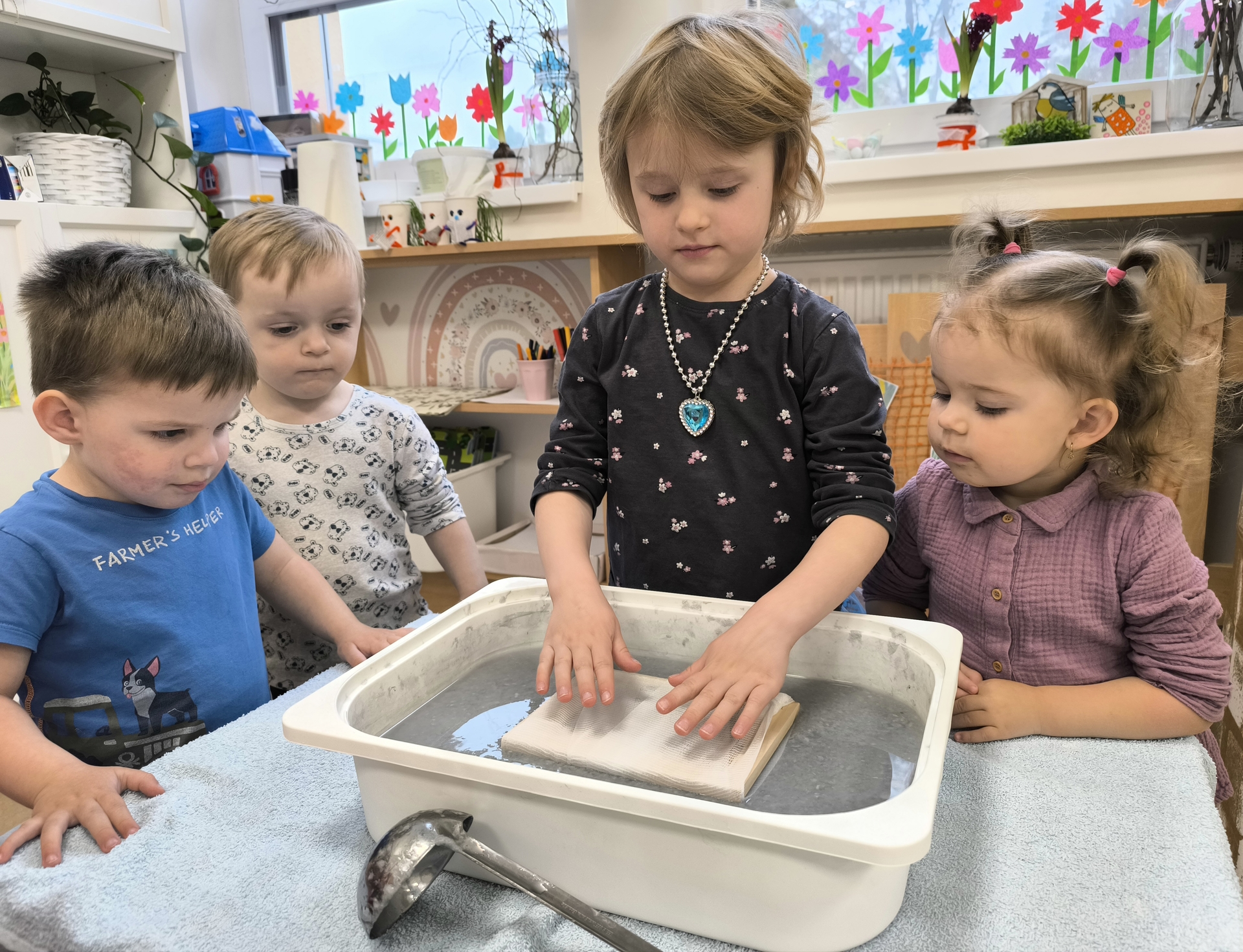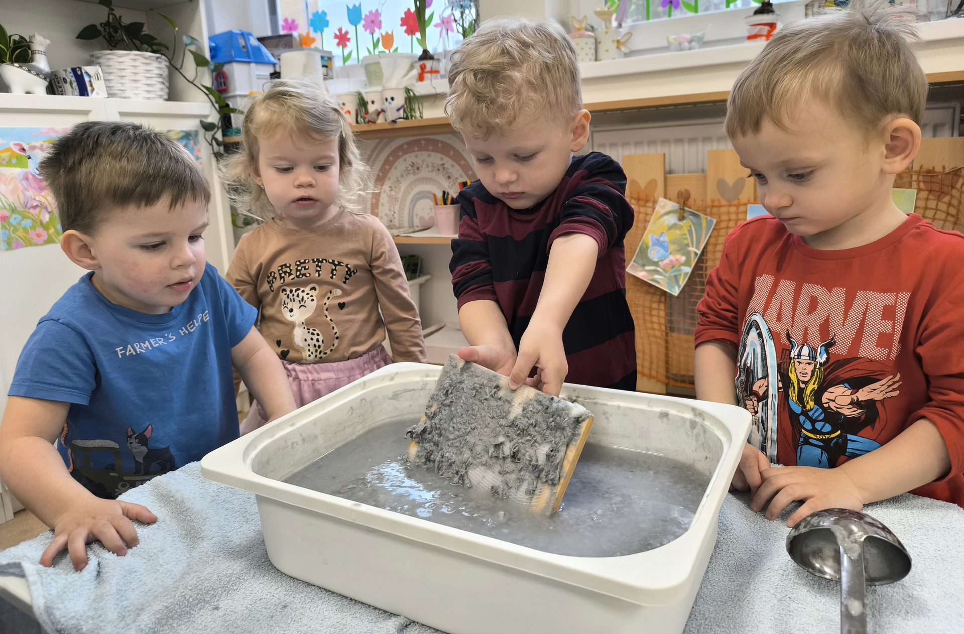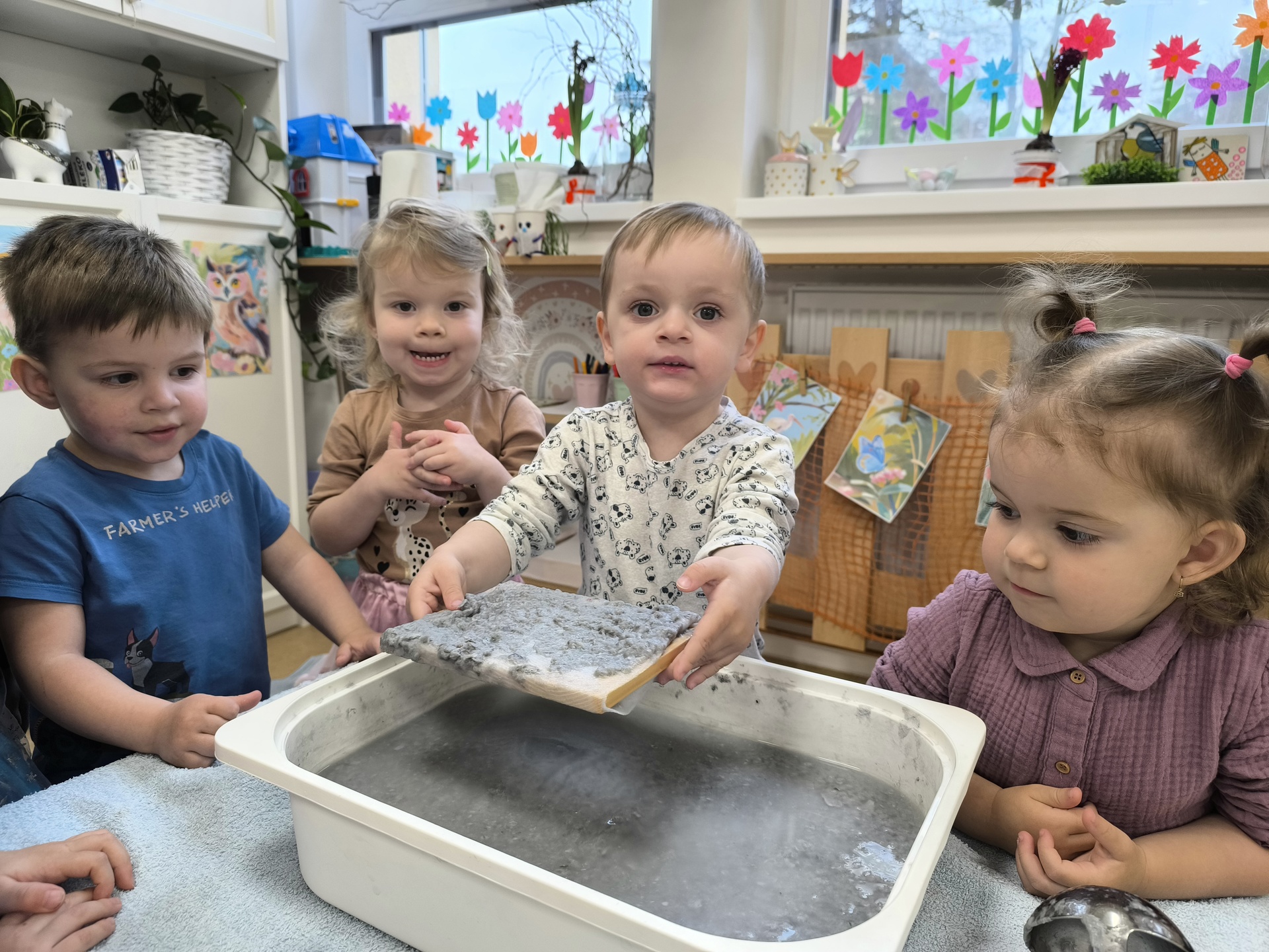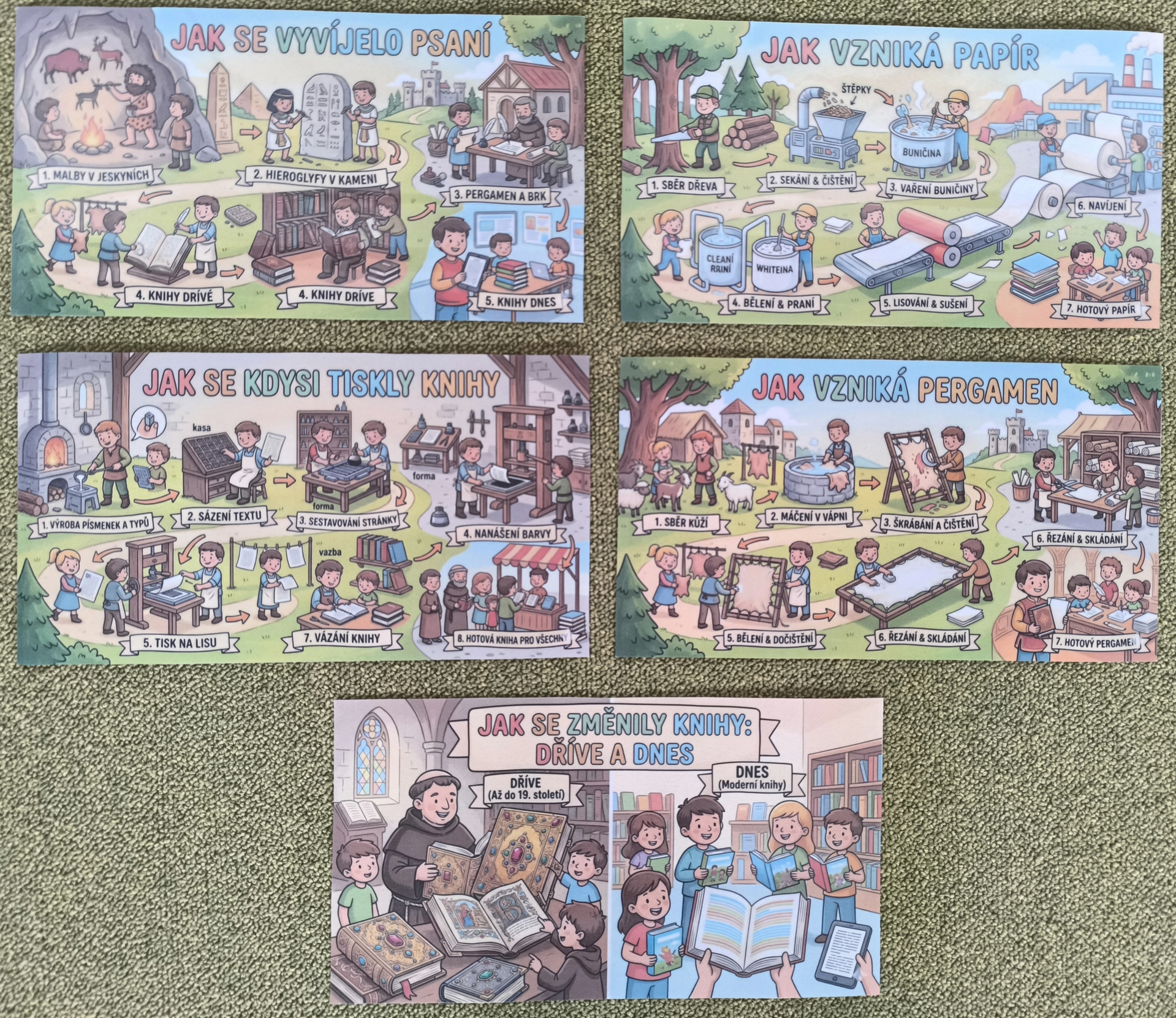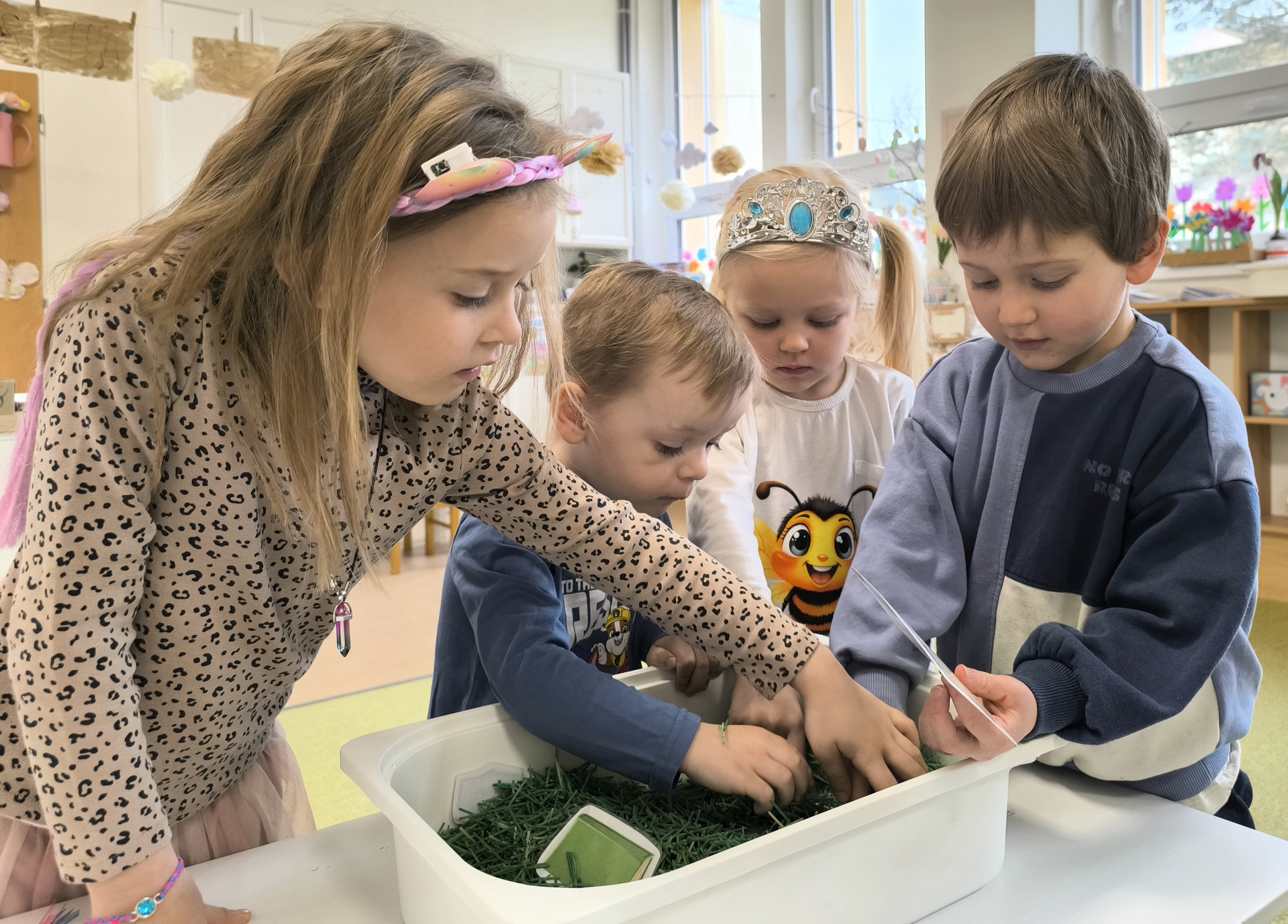 Během měsíce března jsme se věnovali tématu knih a čtení. Děti si přinesly své oblíbené knížky, sdílely zážitky z příběhů a společně jsme si četli pohádky. Nechyběly ani tvořivé aktivity, jako byla výroba papíru nebo vlastních záložek. Děti si tak hravou formou rozvíjely fantazii, slovní zásobu i vztah ke knihám.