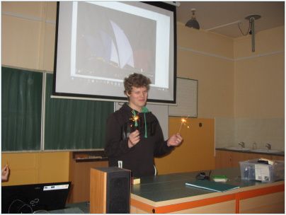 V předvánočních hodinách fyziky je potom prezentovali kamarádům a vyučujícím. Mezi nejlepší projekty patřil referát na téma " Světelné efekty", kdy přednášející předvedli vlastnoručně vyrobenou discokouli. Velmi zdařilý byl i model zatmění Měsíce či práce, kdy žáci nafotili město Vsetín různými druhy a typy fotoaparátů. Některé skupiny dokonce natočily vlastní film o vynálezu žárovky. Nic neexplodovalo, všichni přežili a tak můžeme konstatovat, že tato akce byla velice přínosná, nebot´se žáci a kolikrát i učitelé dozvěděli spoustu nových zajímavostí o všem, co se světlem souvisí .