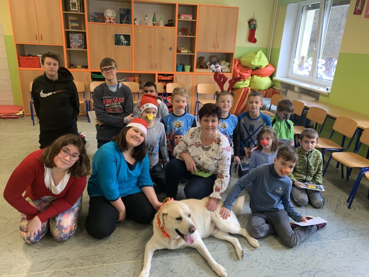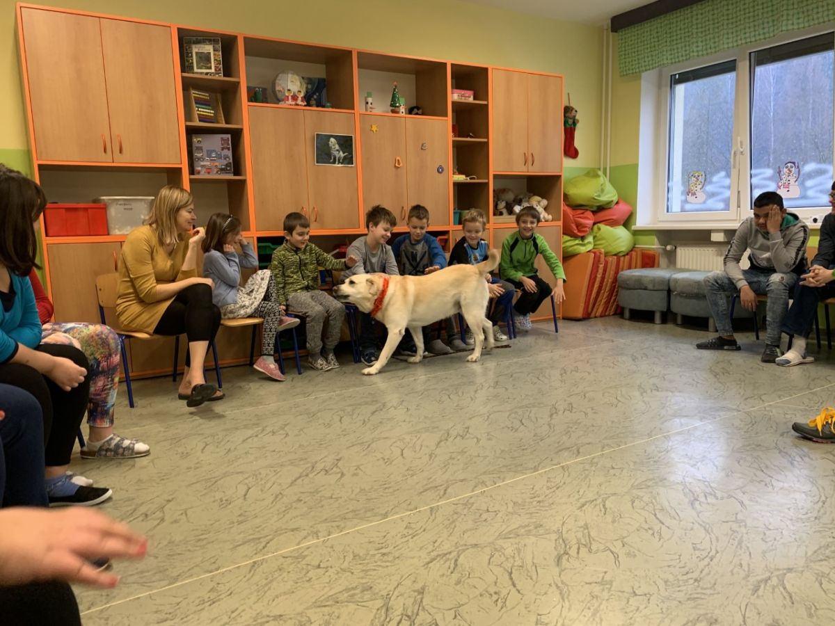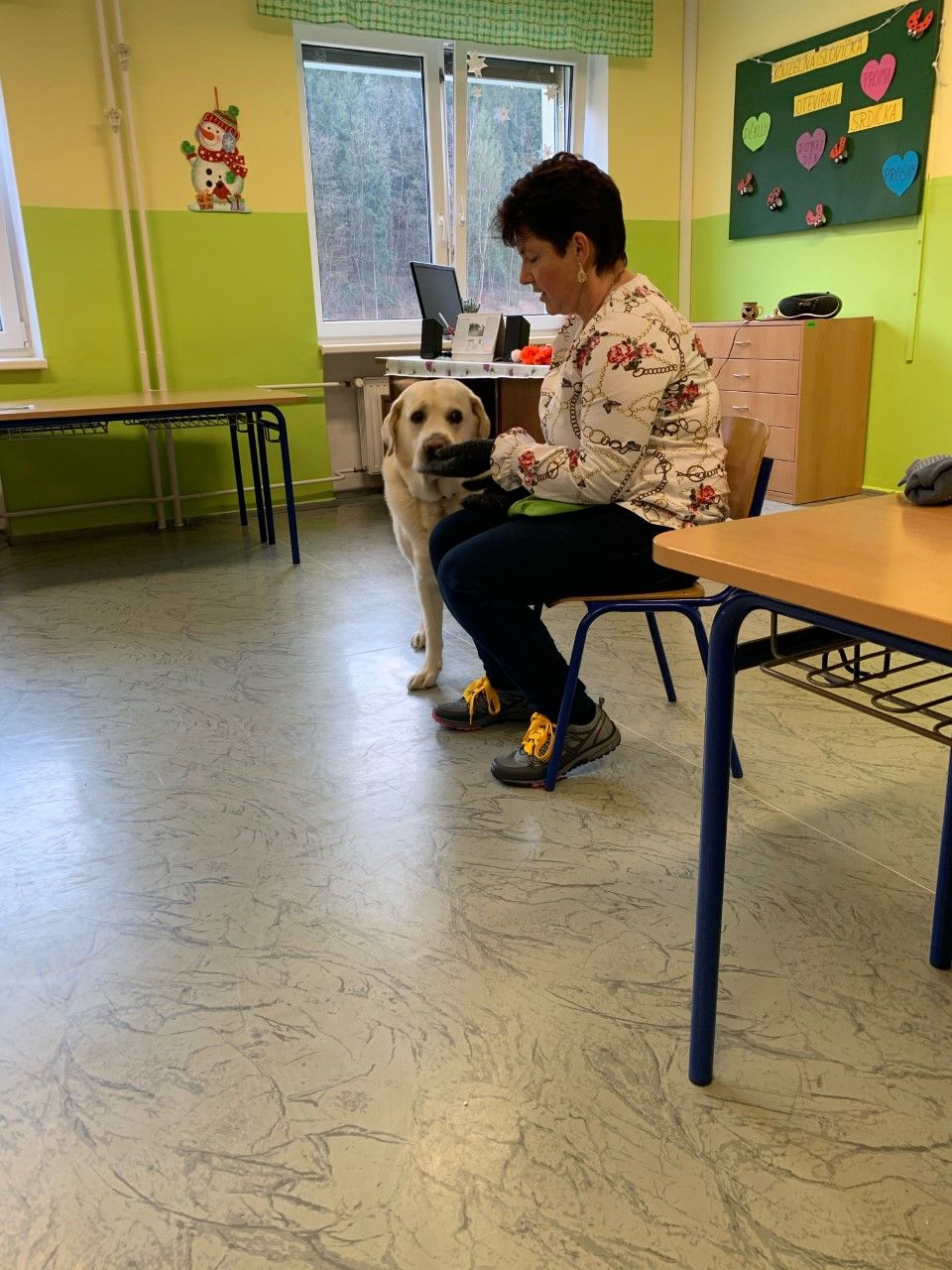 Navštívil nás pejsek Benži a ukázal nám, jak dokáže být nápomocný. Umí donést léky, sundat rukavice ( palčáky, ale i prstové), najít klíče.