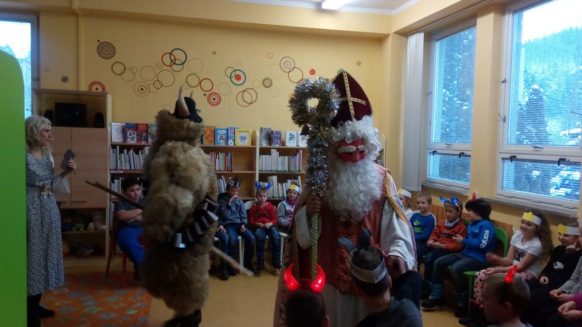 Do knihovny v Luhu zavítala Mikulášská družina z Francovy Lhoty. Naše děti byly u toho.